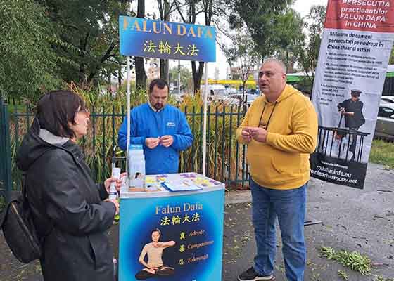 9月20日至10月4日,法轮功学员在罗马尼亚的布拉索夫、蒂尔古穆列什和布加勒斯特设立信息台,向人们介绍法轮功以并揭露中共的迫害。