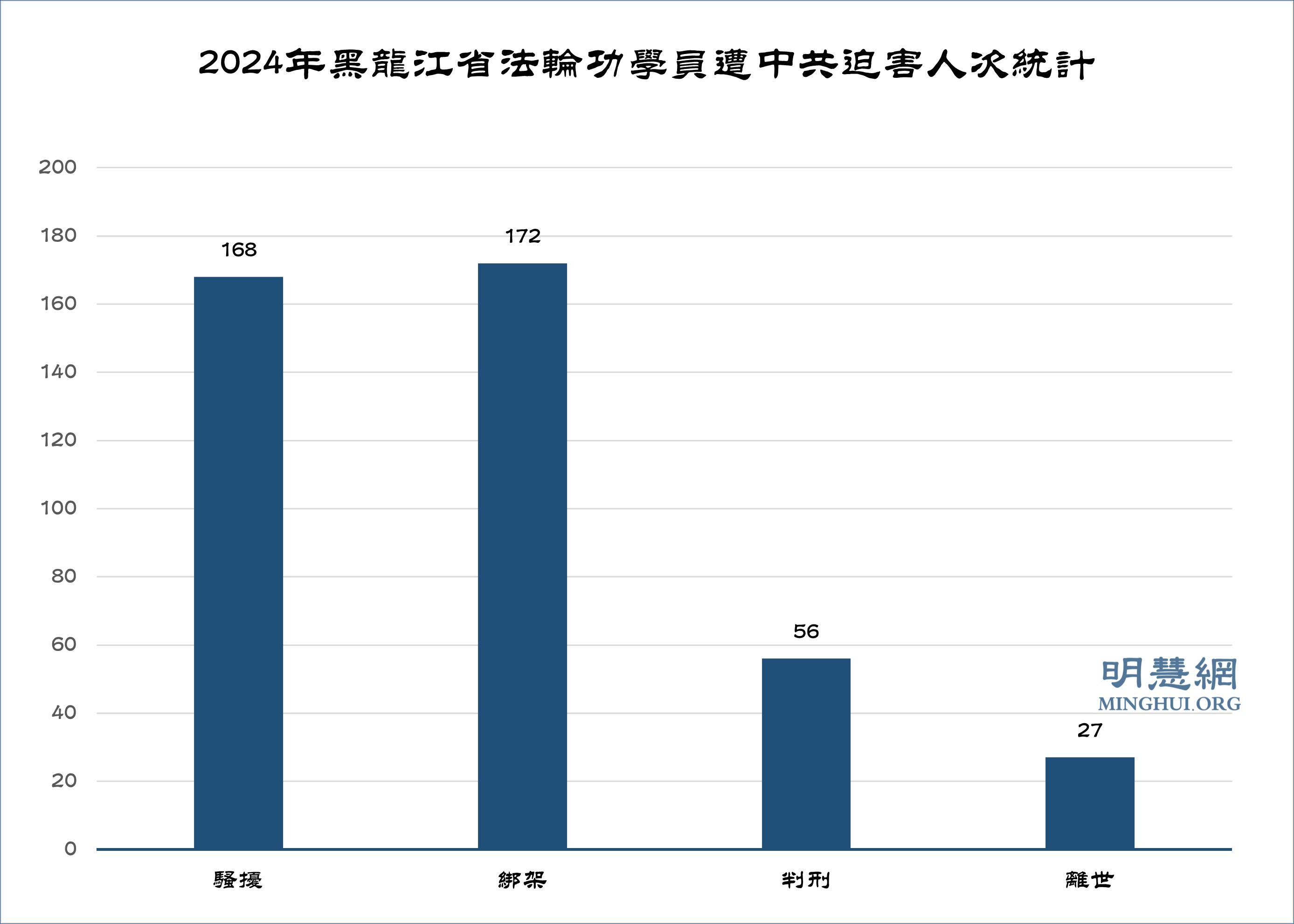 ![]() 图1:2024年黑龙江省法轮功学员遭中共迫害人次统计  |