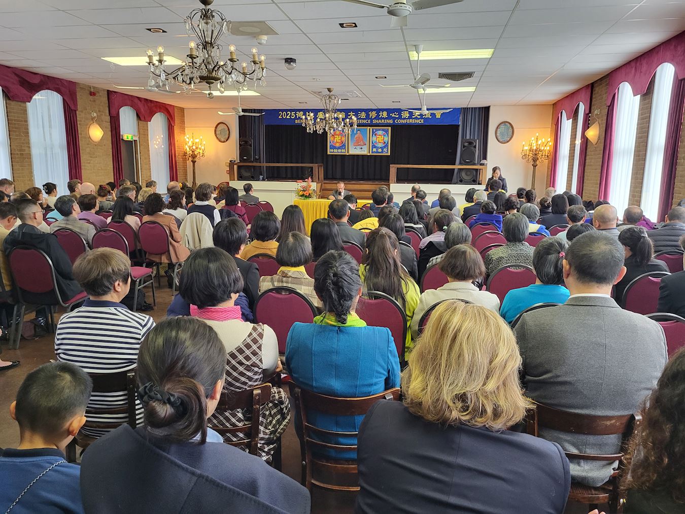 法会有十一位中西方学员通过大法修炼,交流了他们如何面对魔难,在各自的修炼环境中提高心性;并在整体配合中做好三件事(学好法,发正念,讲清真相)救度众生的心得体会。法会上发言的学员,有的交流了在遭遇重大车祸的“棒喝”后醒悟,取消过多油管频道,删除手机多个社媒应用软件,只保留和大法项目有关的;有的在弘法讲真相的活动中,面对跨国镇压的中共特务威胁破坏时,敢于正念揭露中共的。还有的为能够参与推广神韵克服路途遥远,配合整体协调圆满完成工作。
