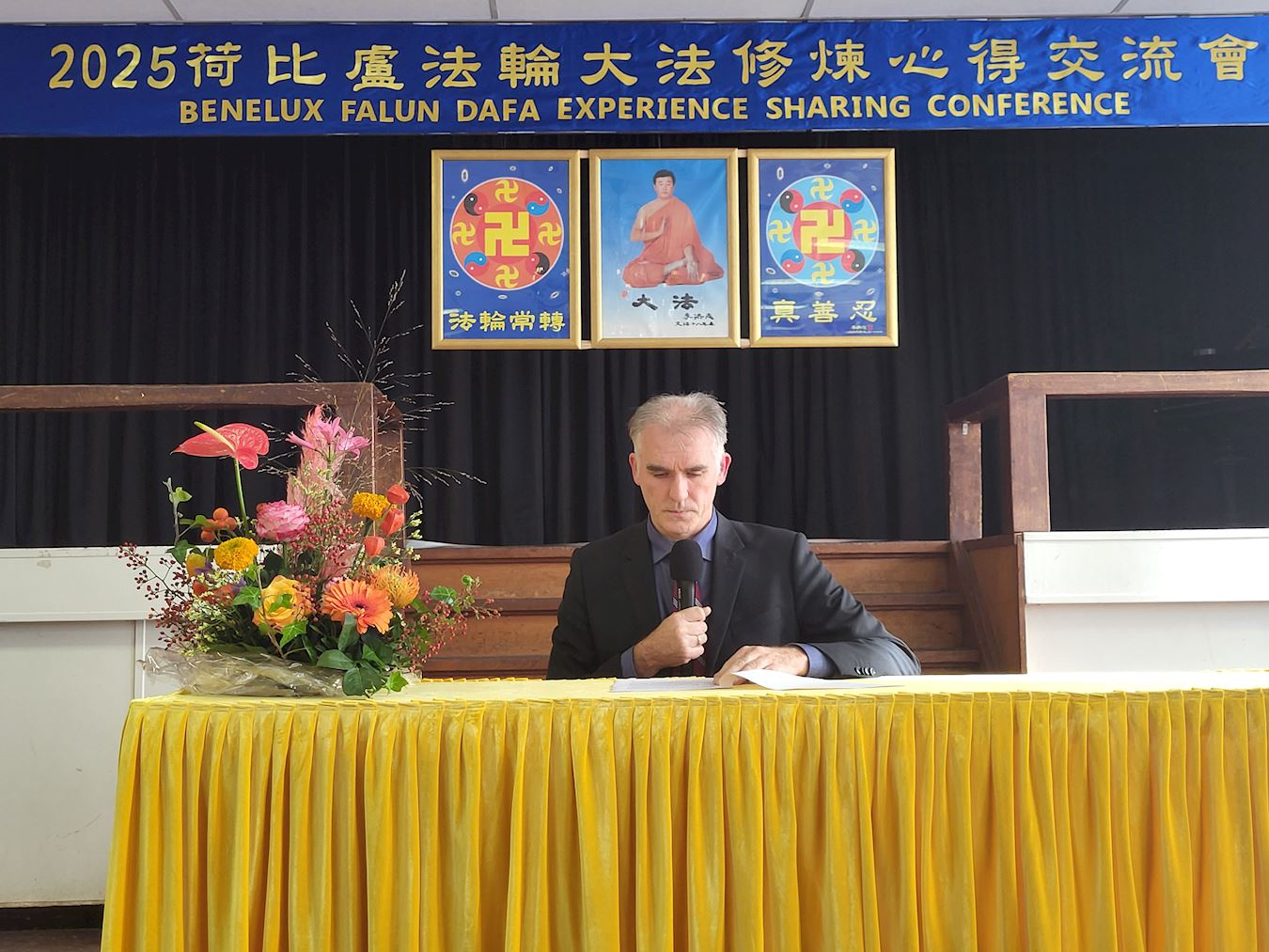 比利时学员尼克·比恩斯(Nico Bijnens)修炼大法近二十年。他交流中讲了一个在日常工作中用法理化解“冤枉”的故事。做为技术服务人员,经常开车外勤工作。一次人事主管误解他在工作时间外出一个半小时做私人事情,并且在同事中传的沸沸扬扬;经了解发现完全是误解。