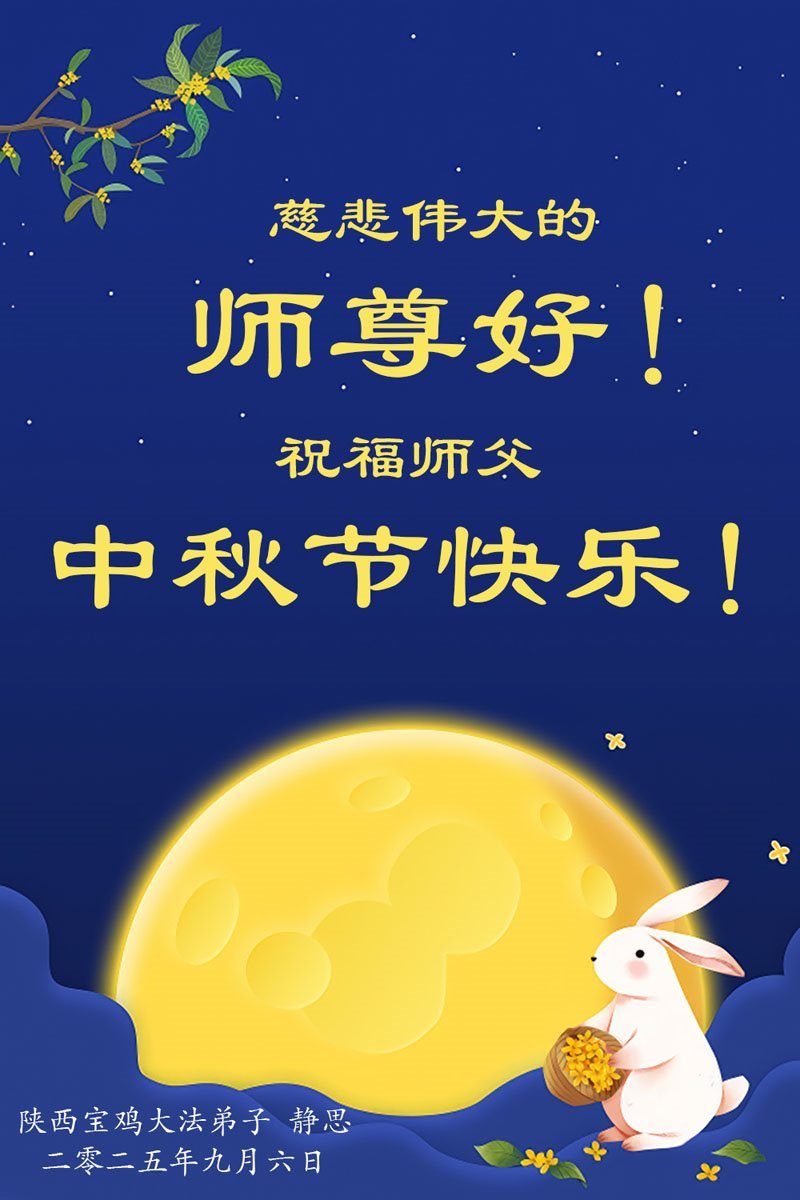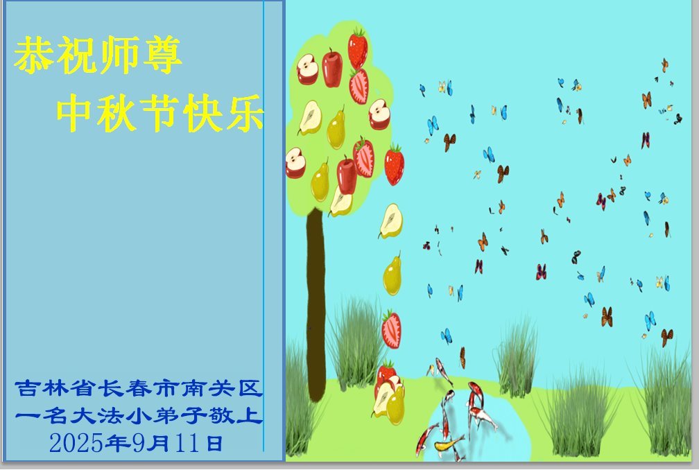 <英文版: https://en.minghui.org/html/articles/2025/10/5/230593.html>大洛杉矶法轮功学员恭祝师尊中秋快乐
