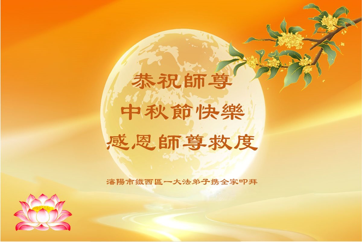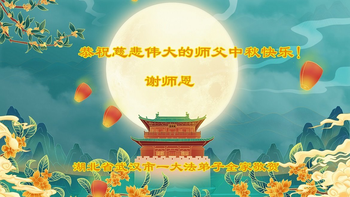 师父,您为众生承受的太多了!为了使大法弟子修炼成熟,为了使更多的众生得救,师父用巨大的付出一再延长时间。作为弟子没有语言表达对师父的感恩,唯有借此中秋佳节之际向伟大的师父问好:师父您辛苦了!我们一定遵照师父教诲,做好三件事,以报师恩!