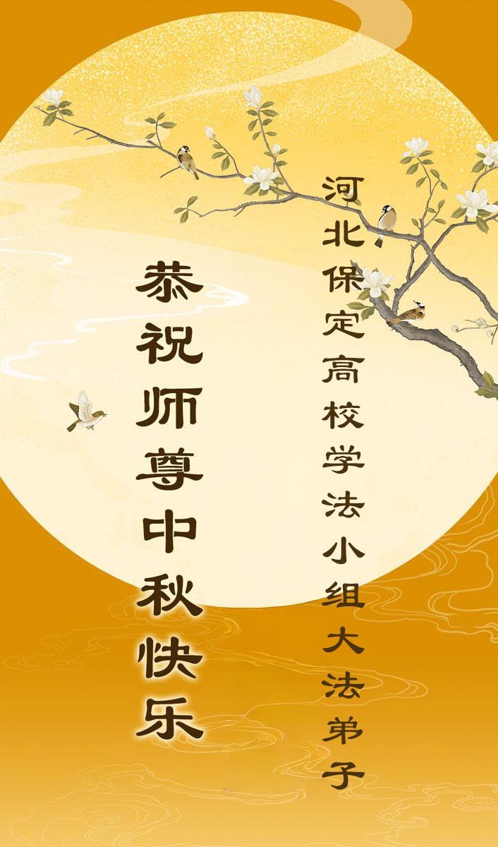 每逢佳节倍思亲!值此中秋佳节到来之际,我们宁波全体大法弟子将我们对师尊的思念与问候通过明慧转达,请师尊接受我们永恒的敬意与无尽的感恩!师恩浩荡!感恩师尊的慈悲救度!无论今后证实法与救度众生有多难多险,无论遇到多少意想不到的魔难与考验,弟子们都会坚修大法,同化真善忍,精進再精進,做好三件事,决不辜负师尊的慈悲苦度。