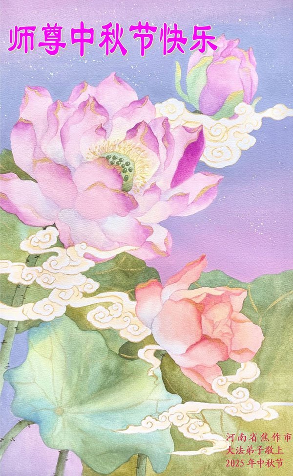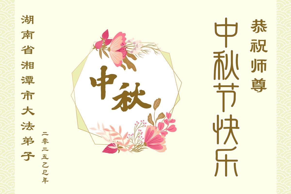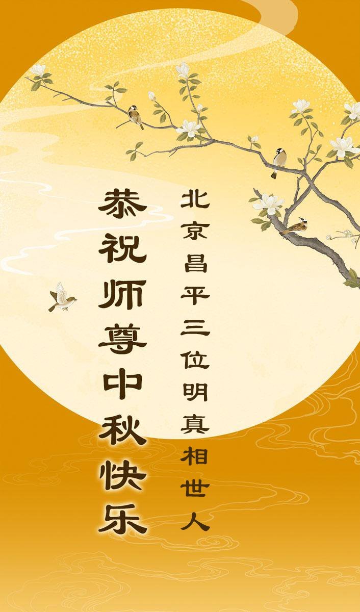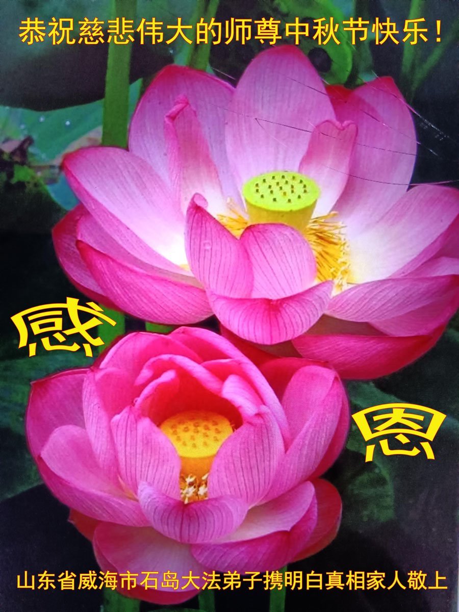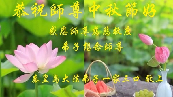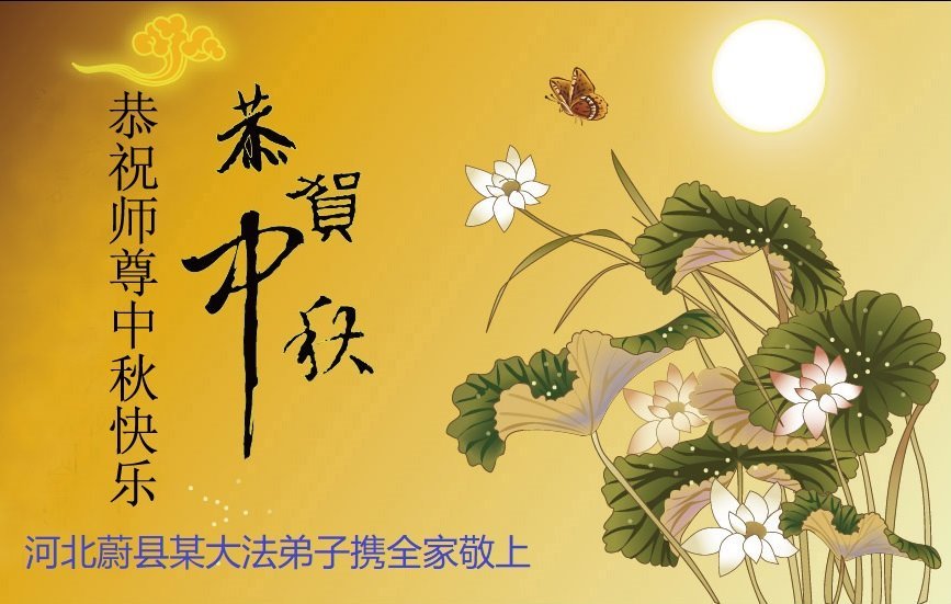 师父您好!我的家人们很早就明白了真相三退了,选择了美好的未来。在中秋佳节来临之际,全家衷心感恩大法师父,并祝愿大法师父中秋节快乐!