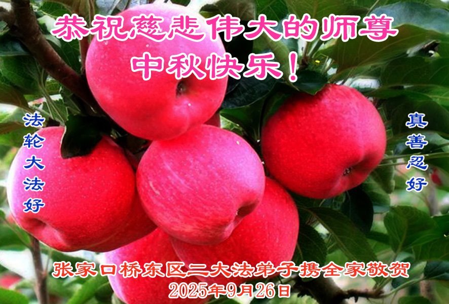 一年一度的中秋来临之际,弟子代全家感恩师尊的慈悲救度!是法轮大法改变了我,让我做一个更好的人。弟子用千言万语也表达不了对师尊的感恩,师父为弟子承受的太多太多,弟子无以回报,只有精進实修,多救人,以报师恩!