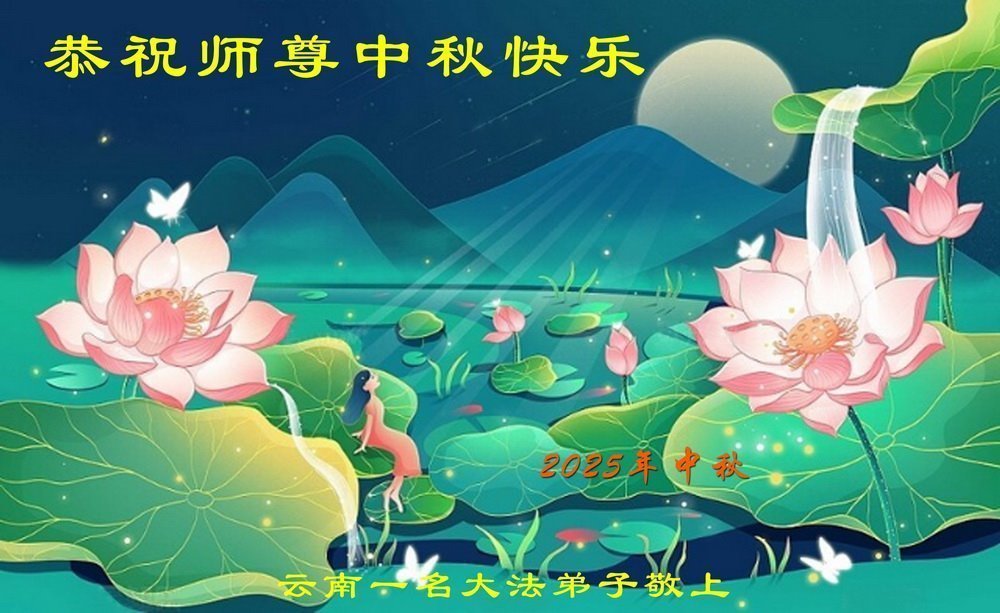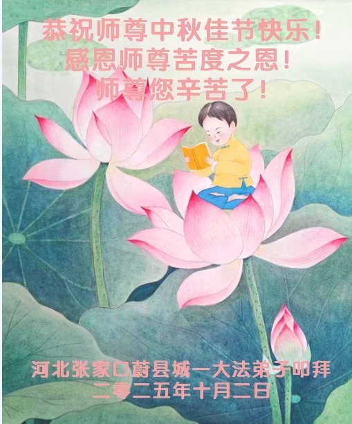 【明慧网二零二五年十月五日】(明慧网通讯员综合报道)海天一碧月儿圆,随师正法在人间。在这中秋佳节万家团圆的日子里,中国大陆各省市大法弟子们万分想念师父,感恩师父!感念师尊亲临世间传大法,赐予众生得救的万古机缘。不管未来的路是艰难还是平坦,弟子们都会义无反顾的紧随师尊,把阳光与希望洒向人间。