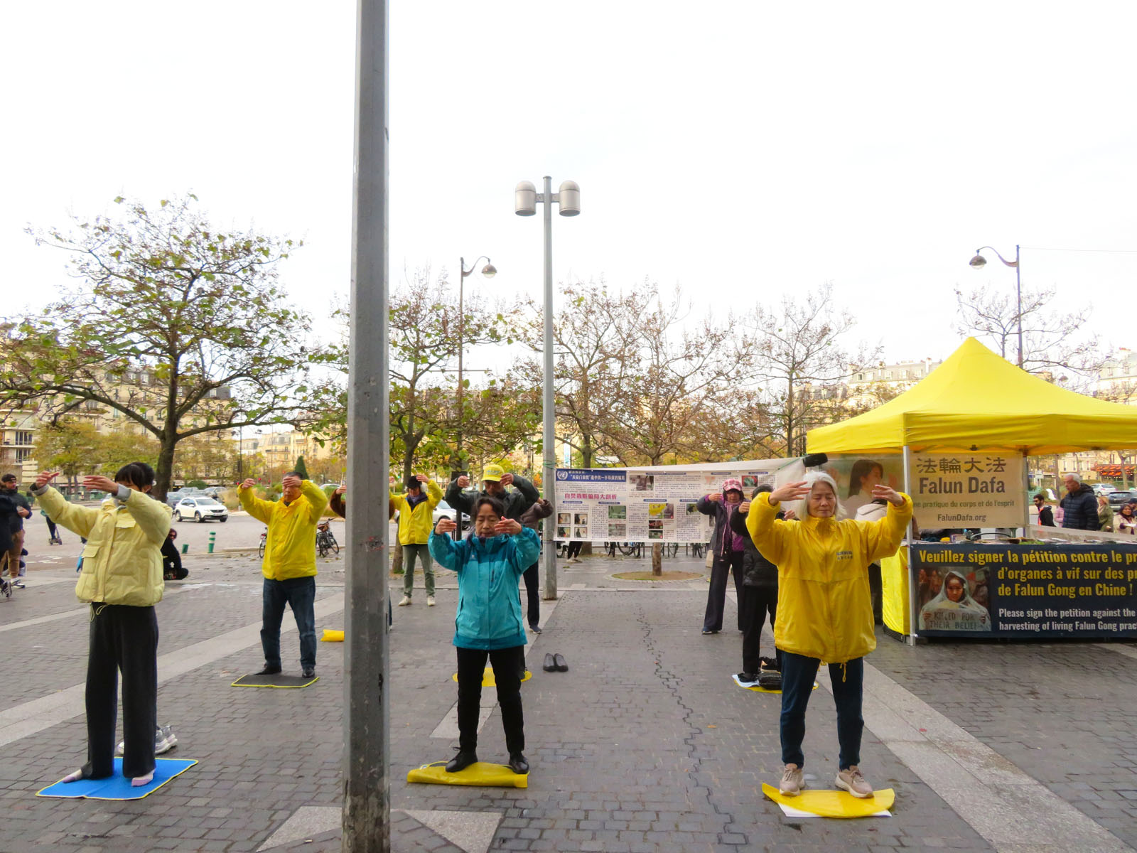 十一月十一日这天是公假日,法轮功学员再次来到巴黎美丽城,伴随着祥和的炼功音乐,他们展示法轮功五套功法,向过往民众讲述法轮功真相,仿佛给这个街区注入了新鲜的空气。人们主动在反迫害征签表上签字,多位华人在法轮功学员的帮助下退出了中共党、团、队组织。