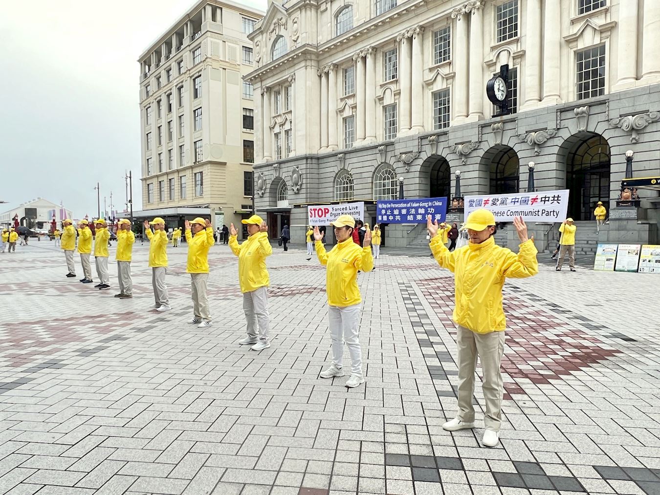 当天,活动现场法轮功学员祥和的炼功音乐与舒缓优美的炼功动作,吸引了大量路人驻足观看。人们纷纷前来了解真相,签名支持反对中共的迫害。