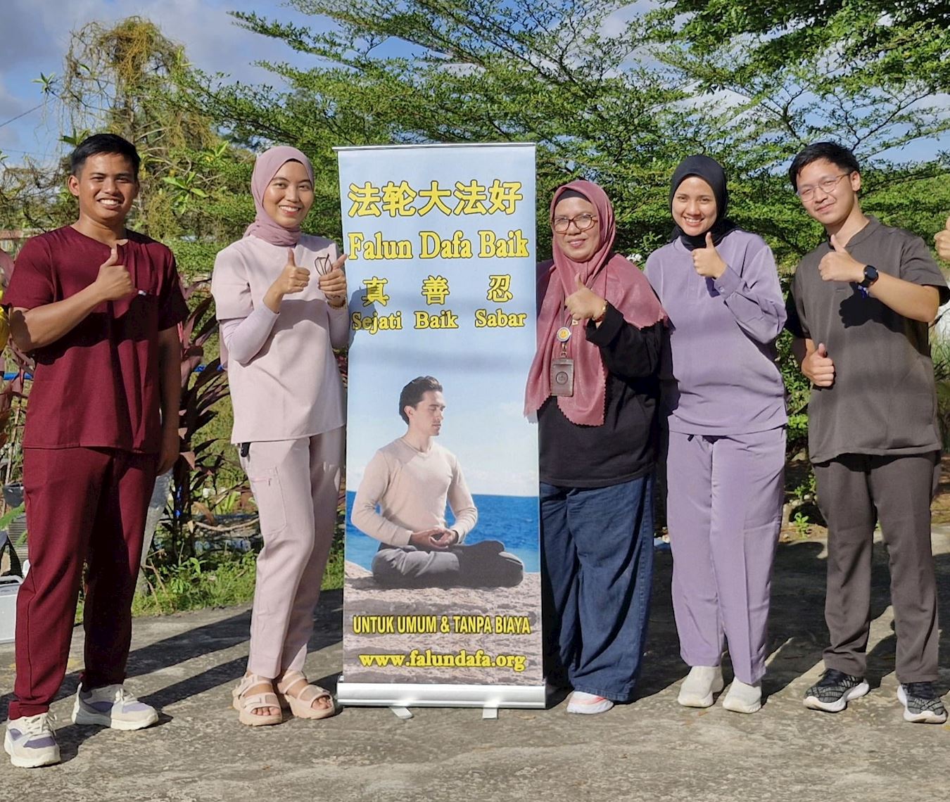 甘榜贾比社区健康中心下属社区健康机构的助理费拉·梅莉亚(Fera Melia)在参加集体炼功后也表示:“我作为甘榜贾比巴图贝萨尔村社区健康机构的助理,向法轮大法学员来到巴淡市甘榜贾比社区健康中心表示最诚挚的感谢。我们也期待法轮大法能够来到各个社区健康机构。目前,巴图贝萨尔村共有十八个社区健康机构。”