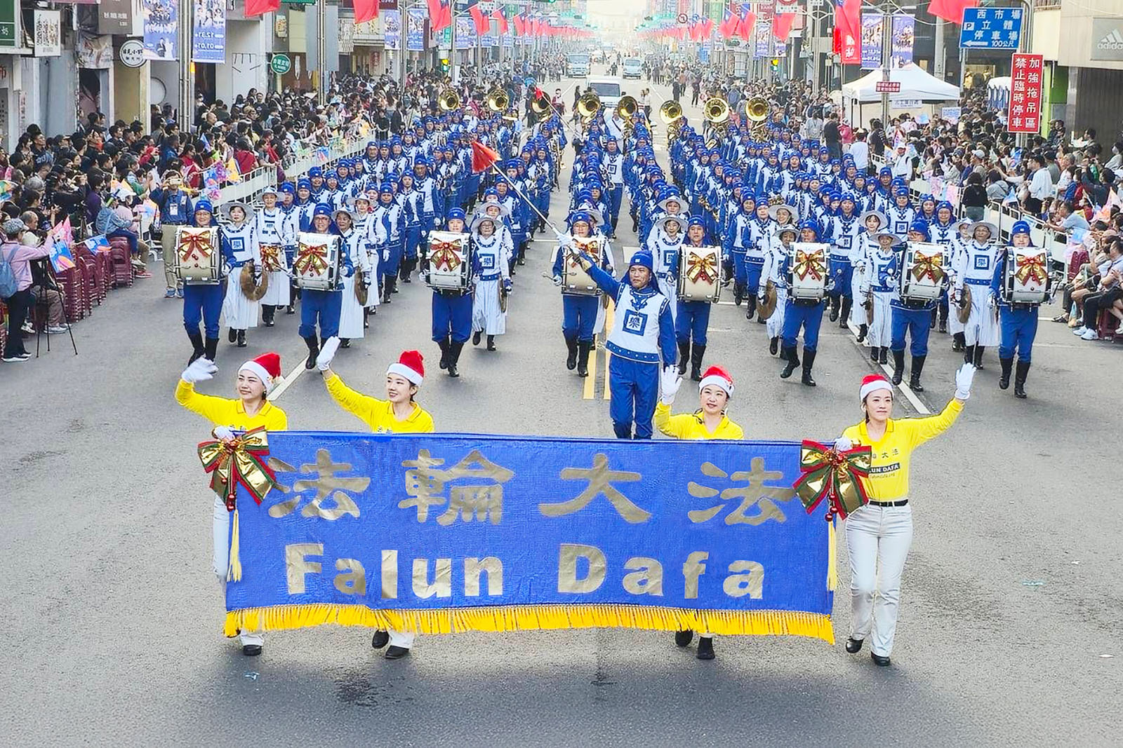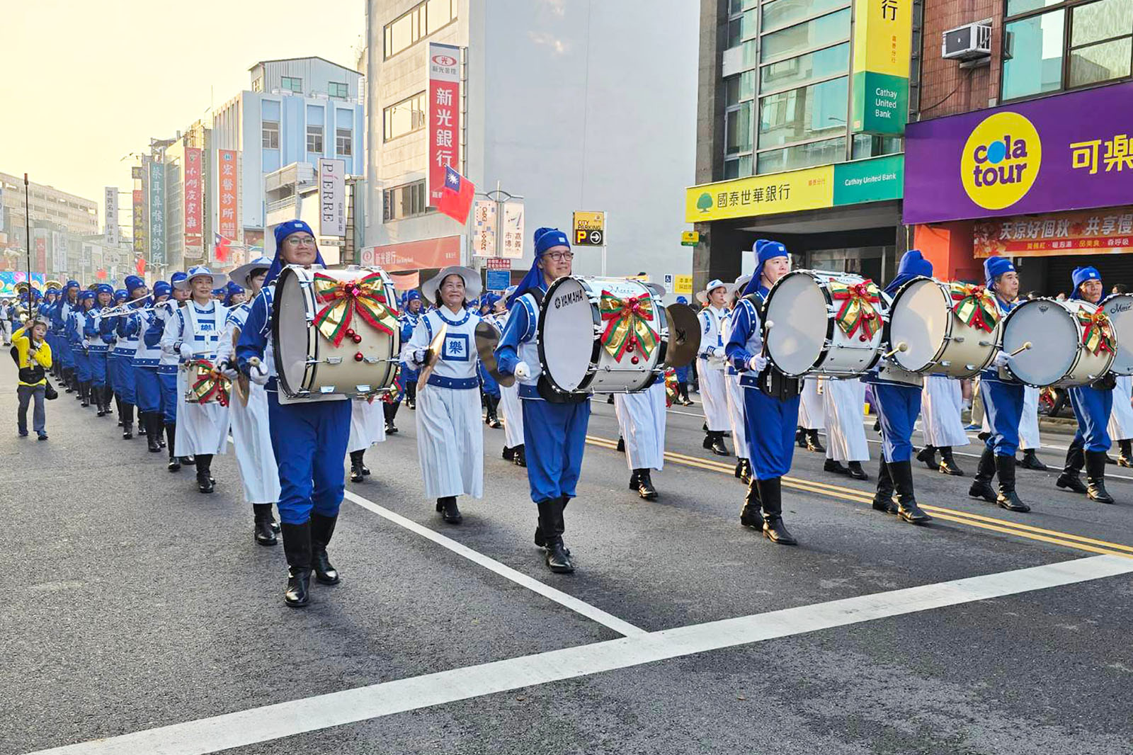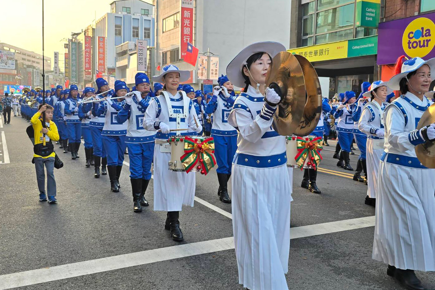 图1~5:于二零二五年十二月十六日,台湾法轮大法天国乐团受邀参加今年的台湾嘉义市“国际管乐节”嘉年华踩街,受到沿途观众的欢迎。