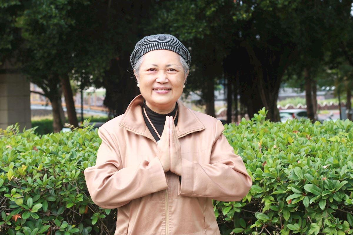 六十四岁的丽玲和先生经营餐饮业,生长在有拜佛的家庭。得法前,每次经过新竹的竹林桥或北埔的路上都会看到大看板上面写着“法轮大法好”,每看到一次就在心里念一遍。一次偶然的机会,去竹东大同国小散步,看到常来餐厅的一对夫妇在炼第五套功法,一聊之下,开启了她修炼大法的机缘。