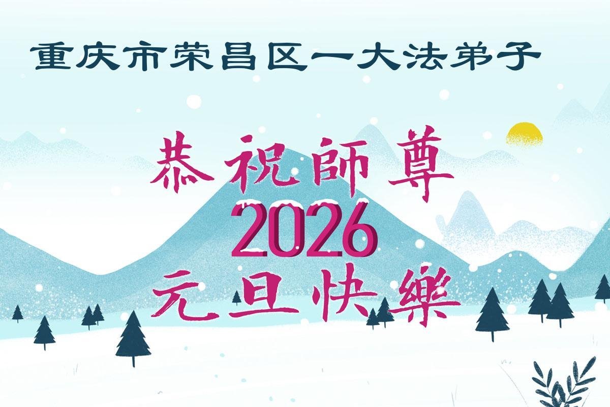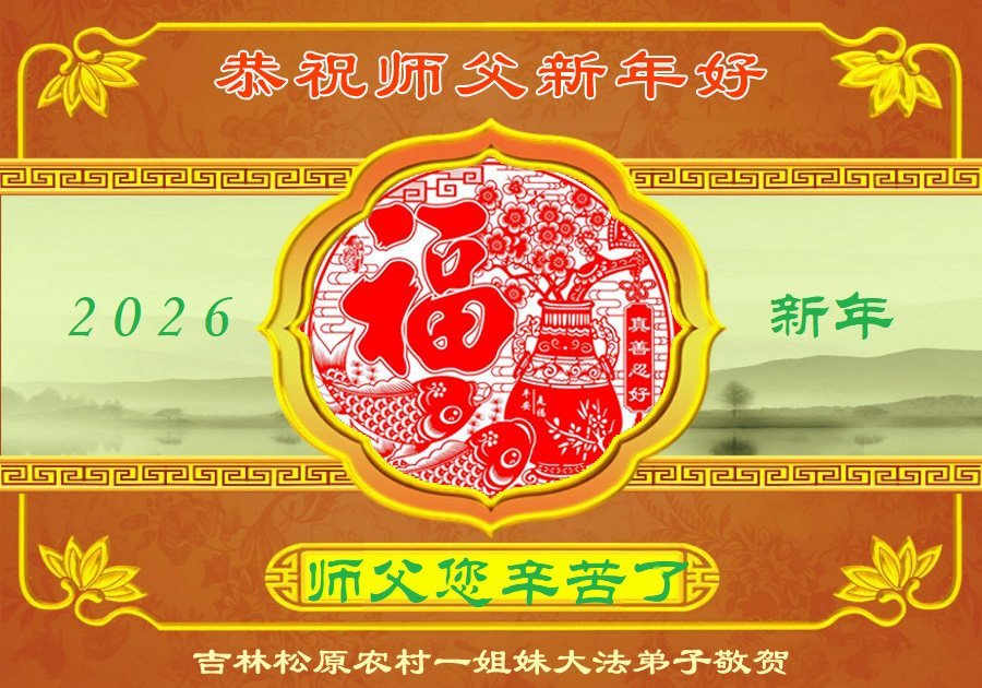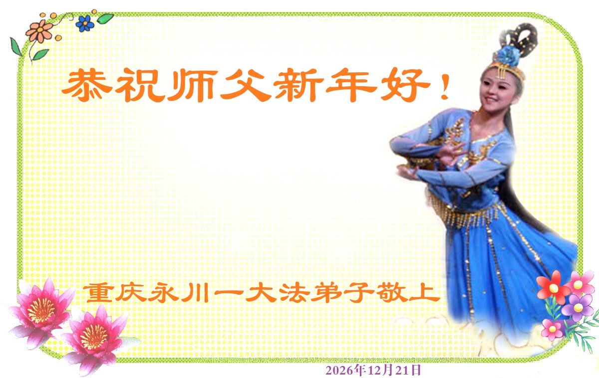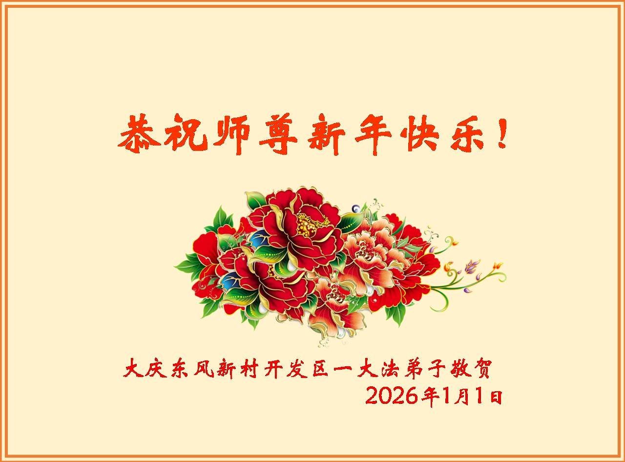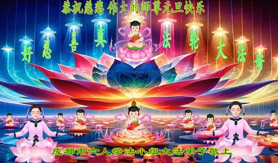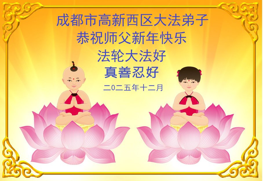 尊敬的师父好,师父您辛苦了!成都工商界大法弟子向师父问好,恭祝师父2026年元旦快乐!每学法深入一点,就更加能体会到师父为救众生的巨大付出。世间一切皆为法而来,一切幻相皆为人心而设。愿我们不为人心所动,走好最后的路,不负师父期望。弟子叩谢师父!