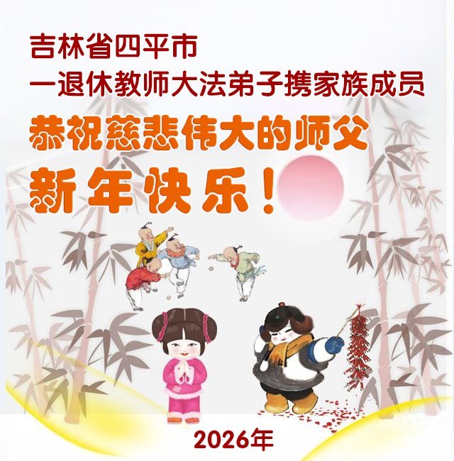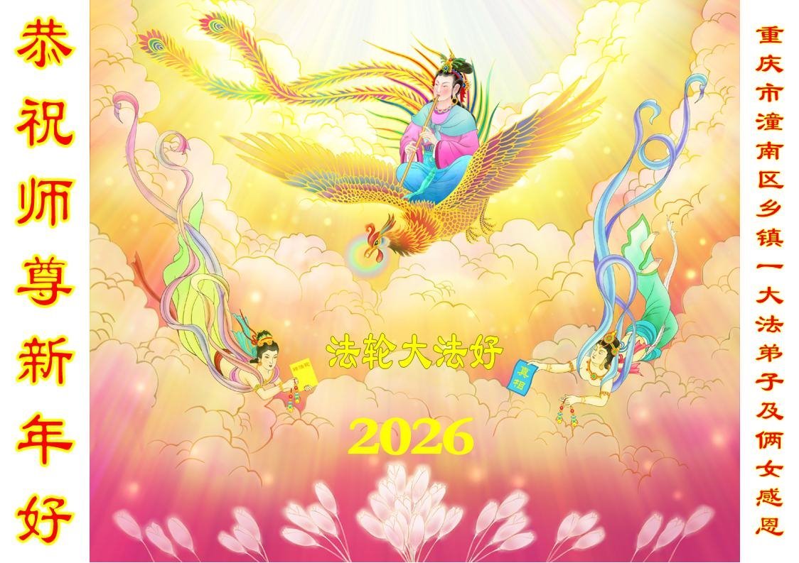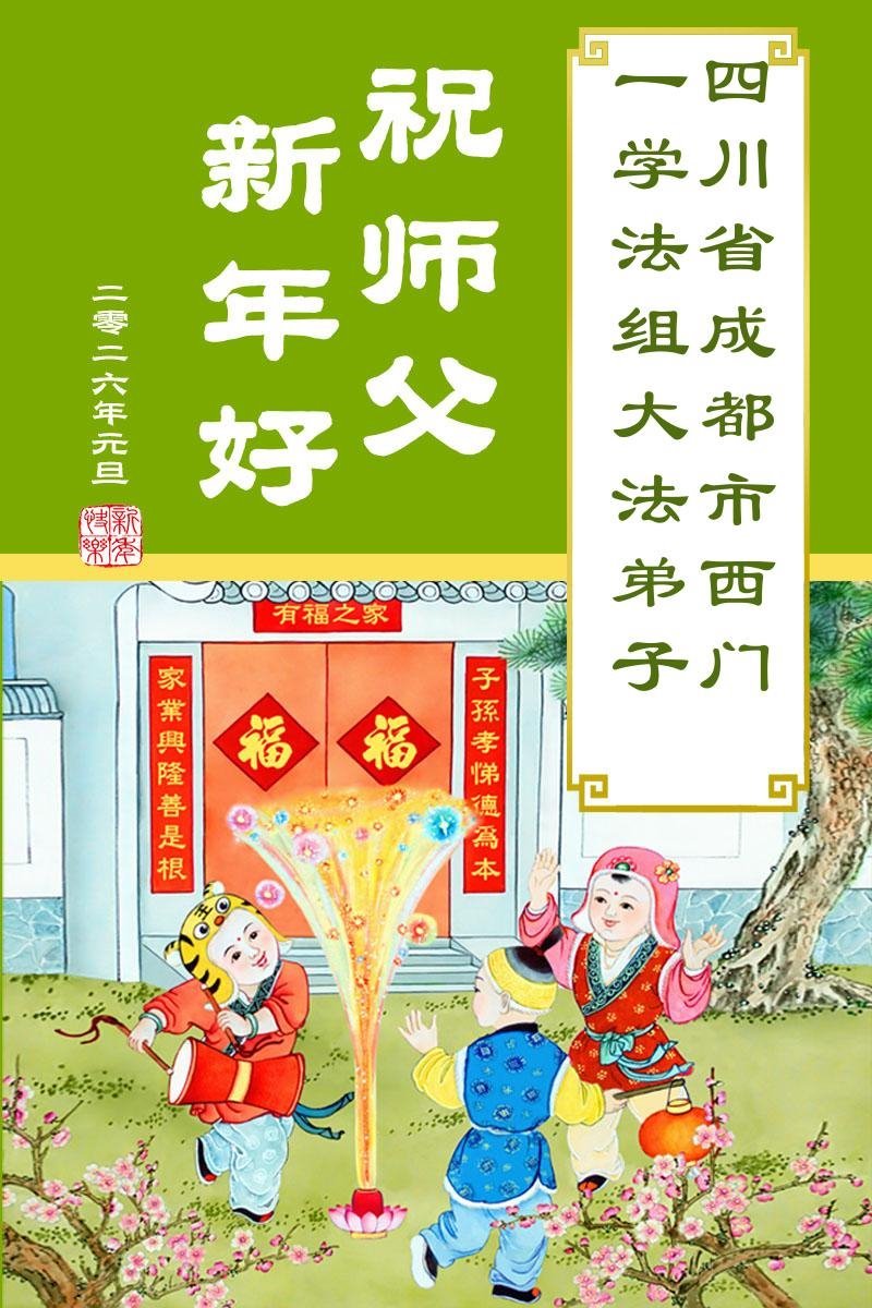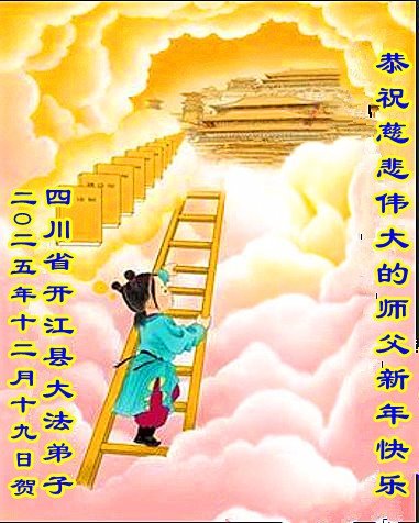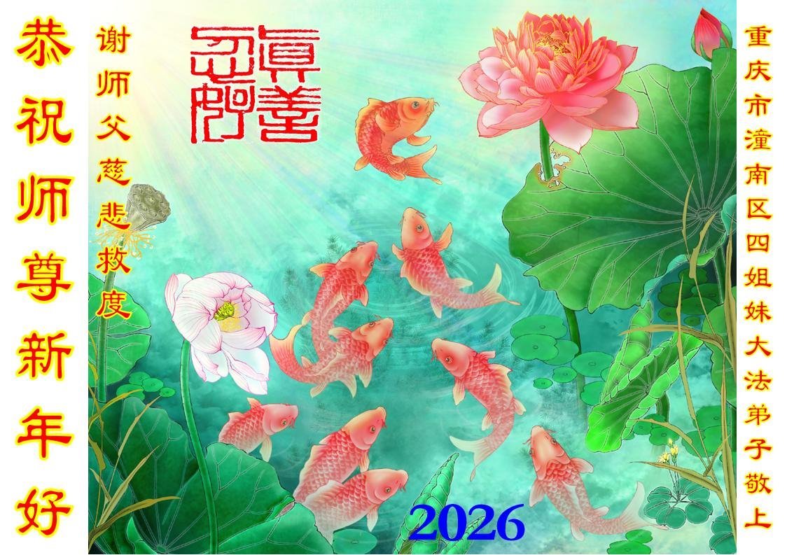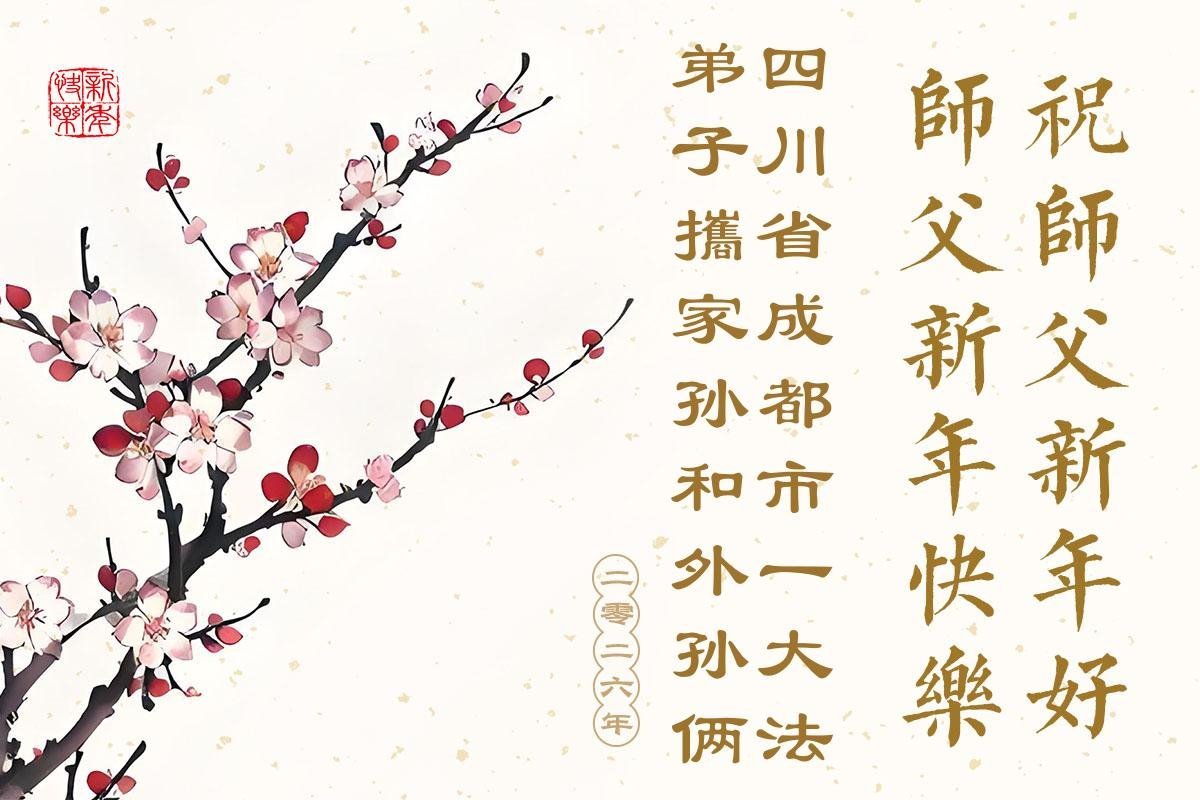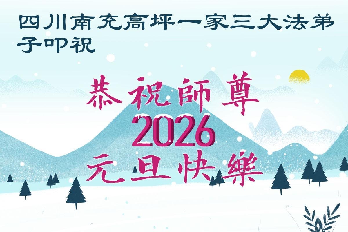 尊敬的师父好,师父您辛苦了!成都工商界大法弟子向师父问好,恭祝师父2026年元旦快乐!每学法深入一点,就更加能体会到师父为救众生的巨大付出。世间一切皆为法而来,一切幻相皆为人心而设。愿我们不为人心所动,走好最后的路,不负师父期望。弟子叩谢师父!