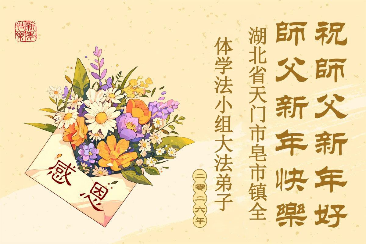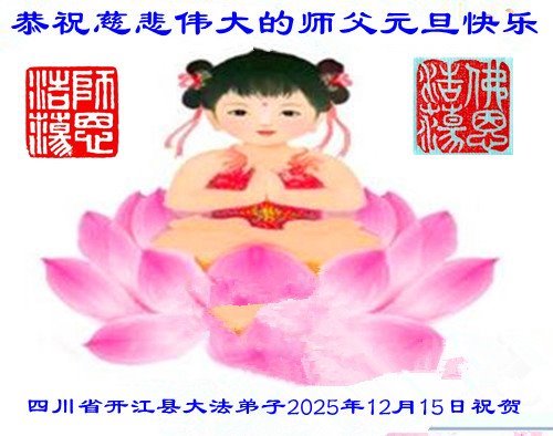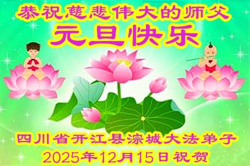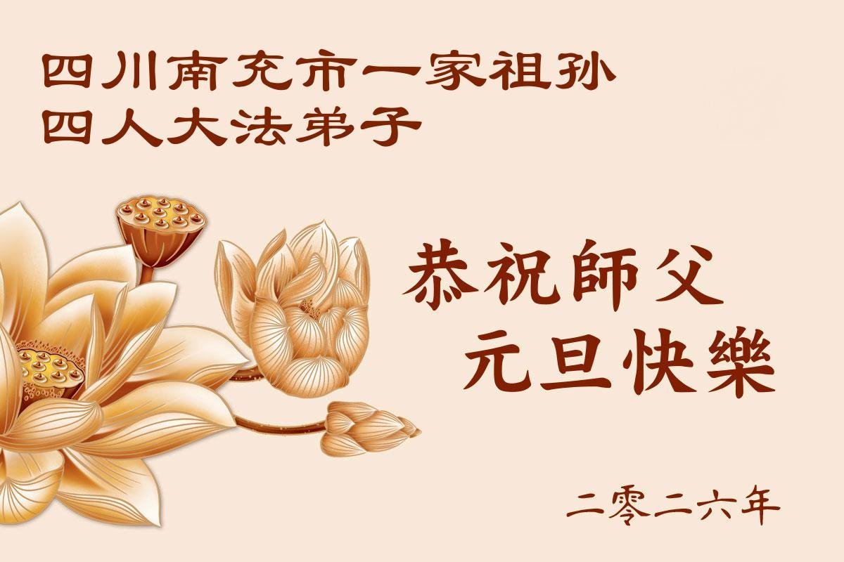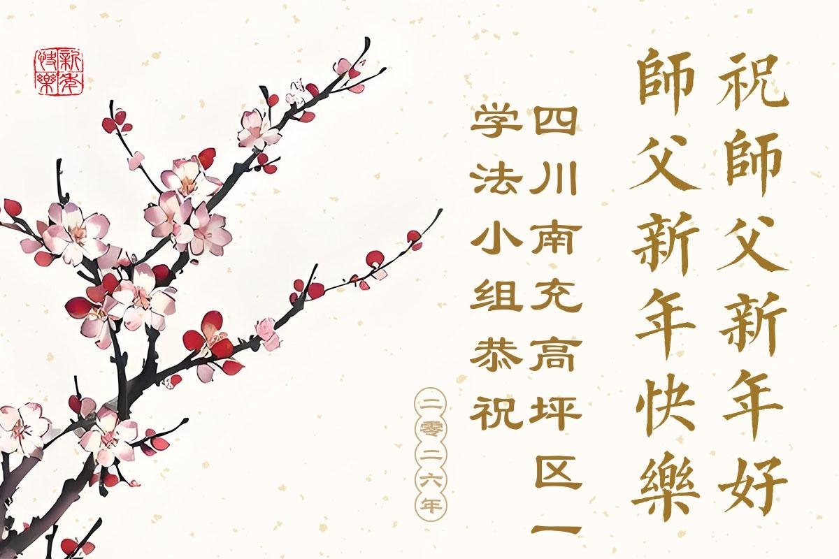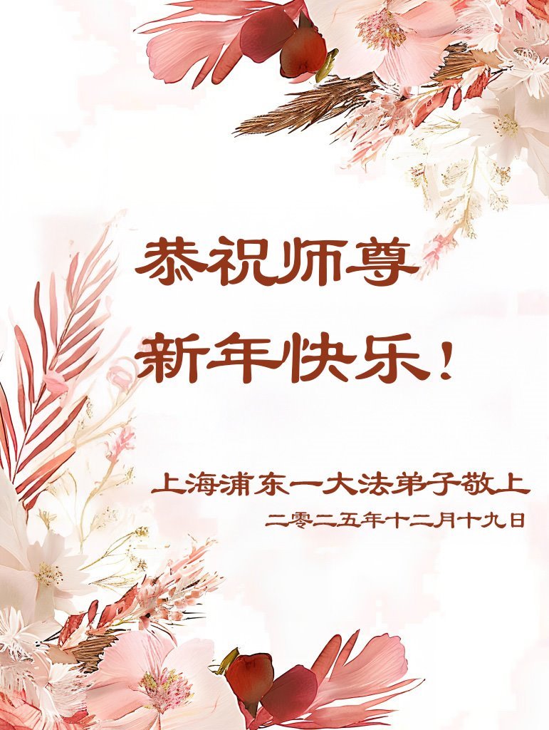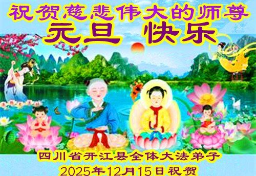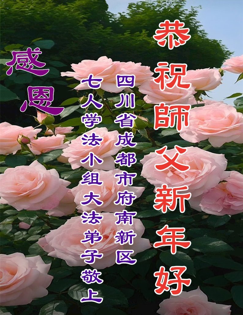 尊敬的师父好,师父您辛苦了!成都工商界大法弟子向师父问好,恭祝师父2026年元旦快乐!每学法深入一点,就更加能体会到师父为救众生的巨大付出。世间一切皆为法而来,一切幻相皆为人心而设。愿我们不为人心所动,走好最后的路,不负师父期望。弟子叩谢师父!