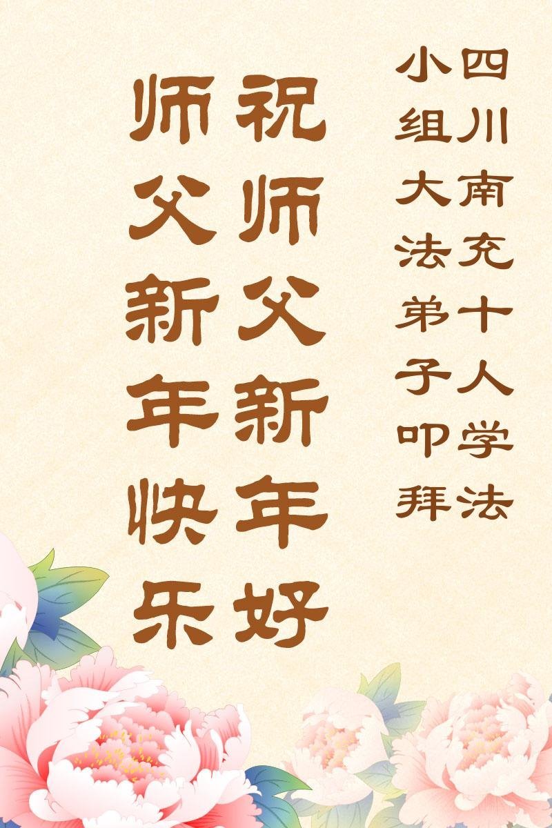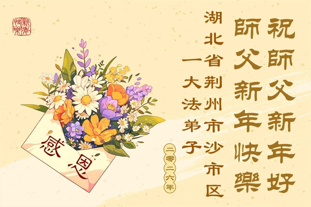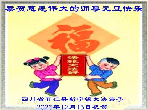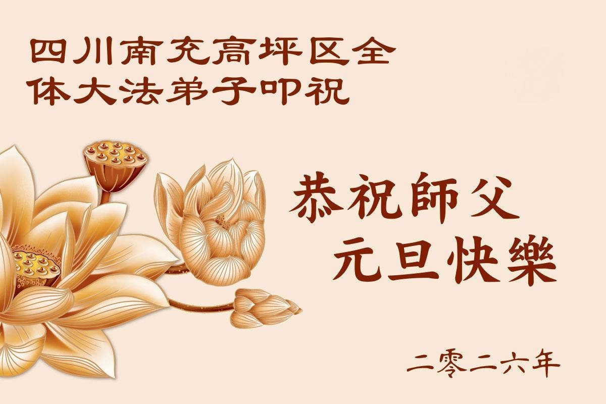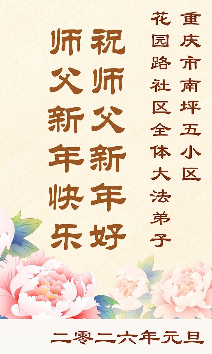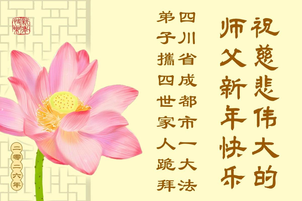 尊敬的师父好,师父您辛苦了!成都工商界大法弟子向师父问好,恭祝师父2026年元旦快乐!每学法深入一点,就更加能体会到师父为救众生的巨大付出。世间一切皆为法而来,一切幻相皆为人心而设。愿我们不为人心所动,走好最后的路,不负师父期望。弟子叩谢师父!
