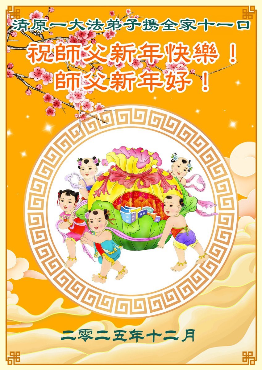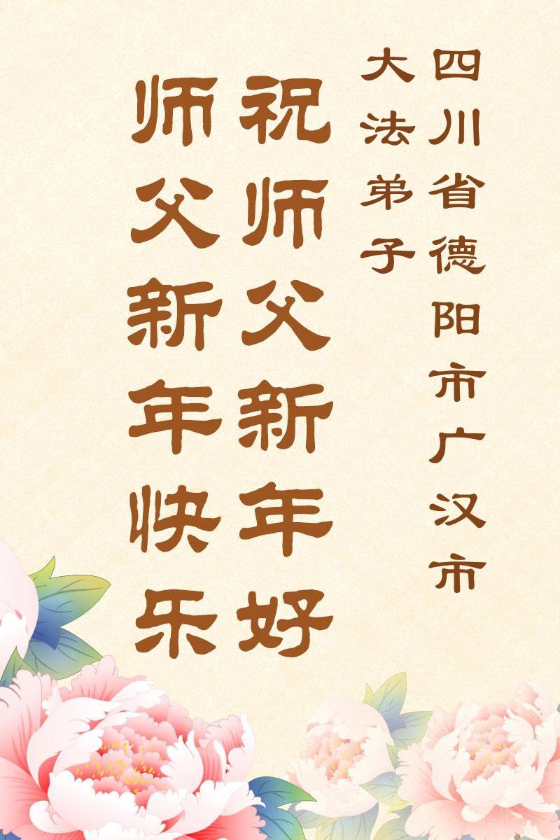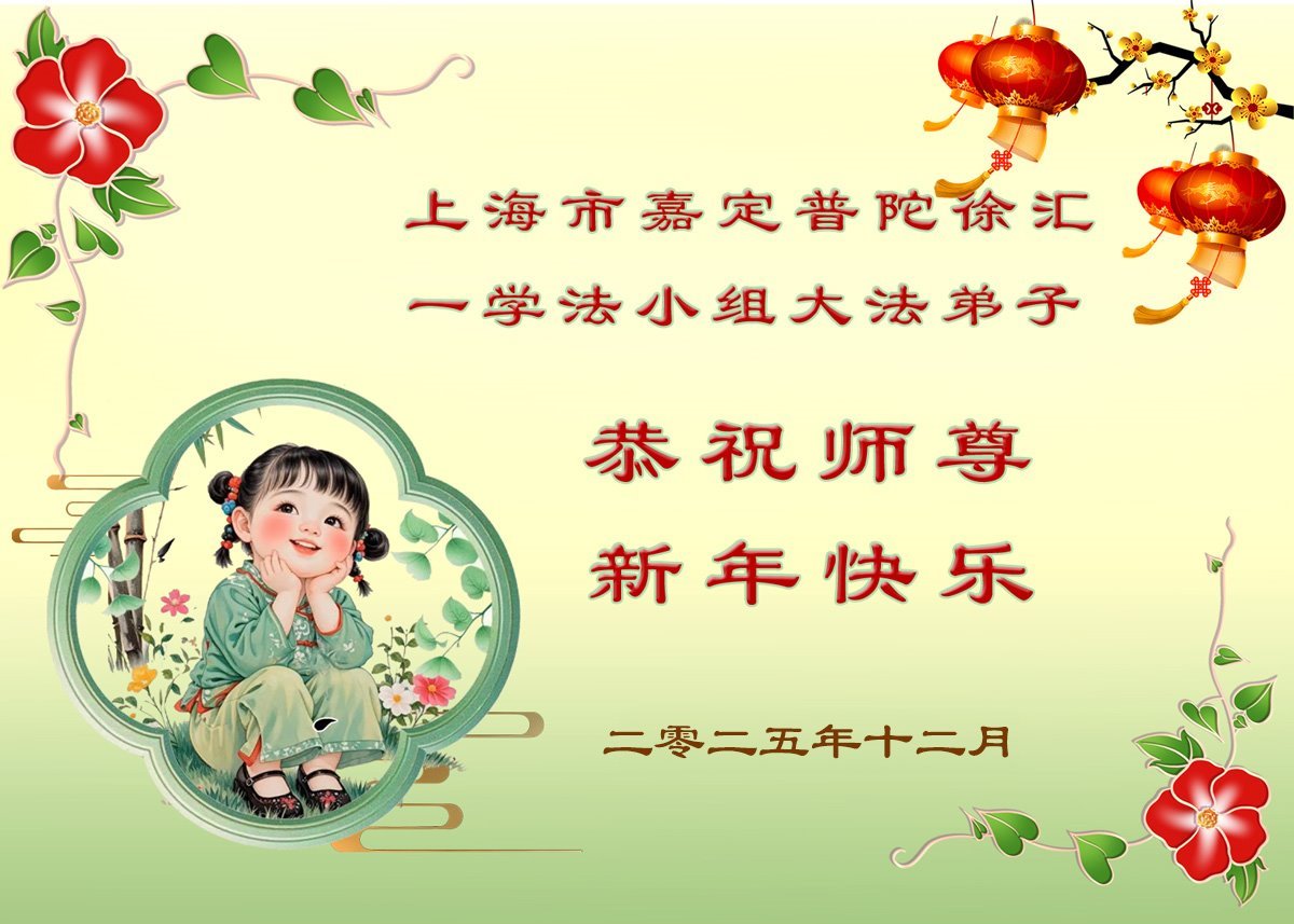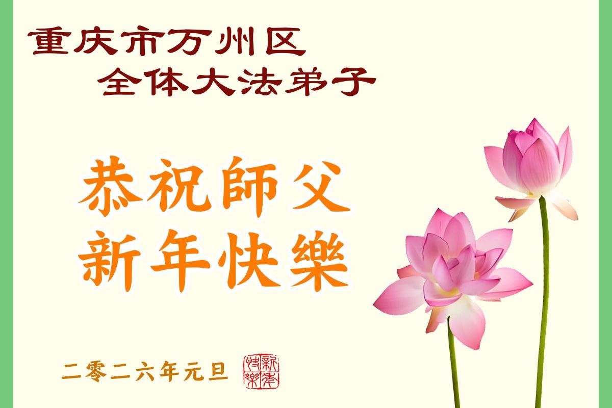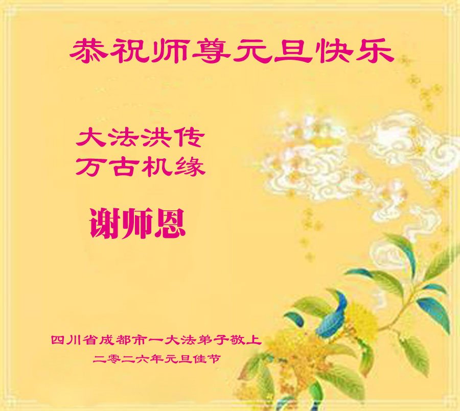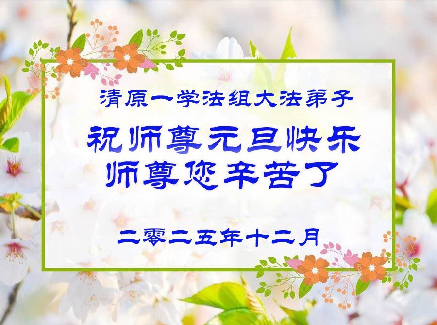 尊敬的师父好,师父您辛苦了!成都工商界大法弟子向师父问好,恭祝师父2026年元旦快乐!每学法深入一点,就更加能体会到师父为救众生的巨大付出。世间一切皆为法而来,一切幻相皆为人心而设。愿我们不为人心所动,走好最后的路,不负师父期望。弟子叩谢师父!