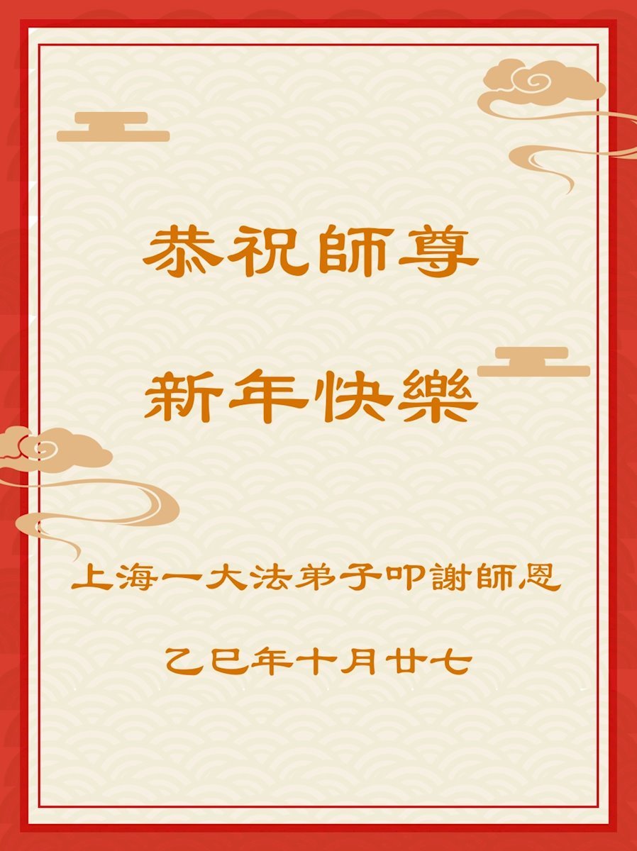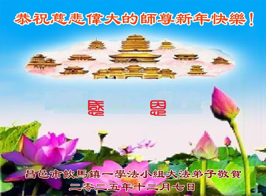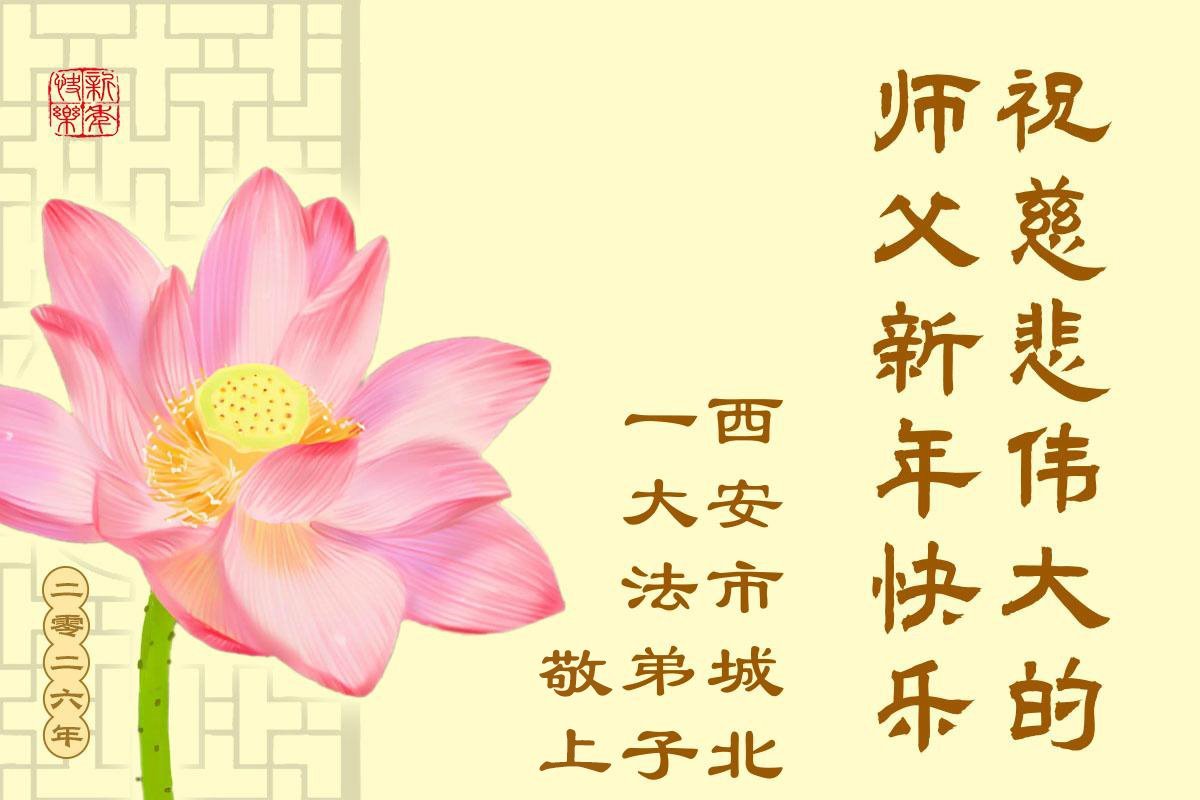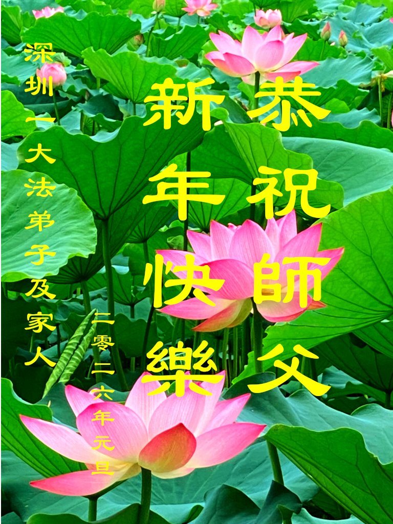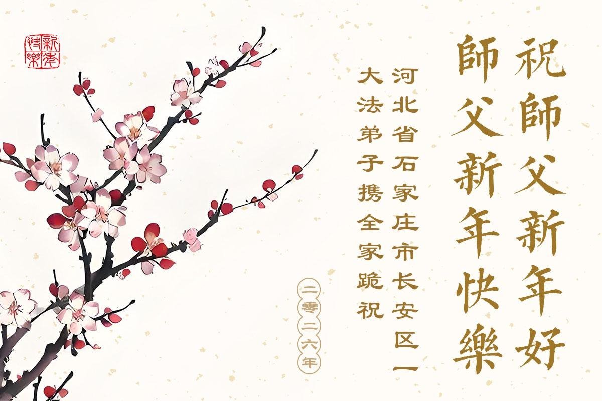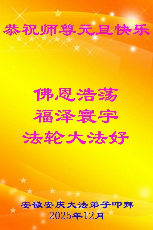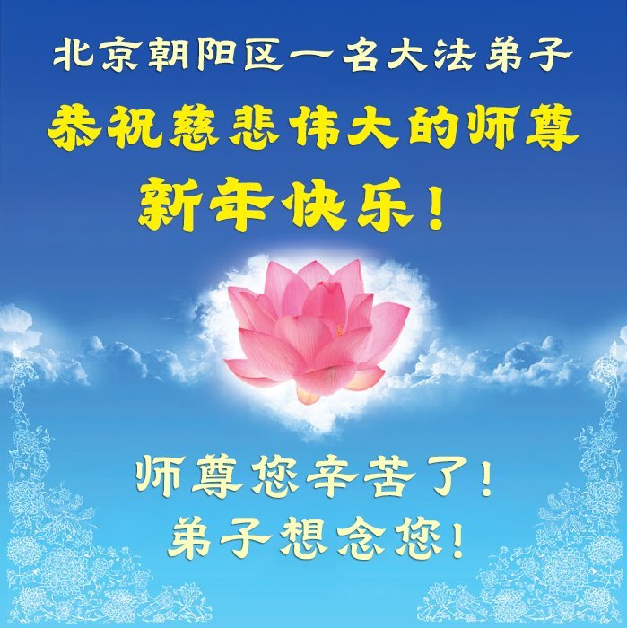 师尊您几十年传法至今,始终肩负着宇宙正法的艰难,承载着各界众生的困苦、压力和巨大的业力,在这末后救人的重大时刻,您为人类操尽了心!我们想念着您!我们就做好自己应该做的三件事,请师尊放心!在此恭祝师尊新年快乐!
