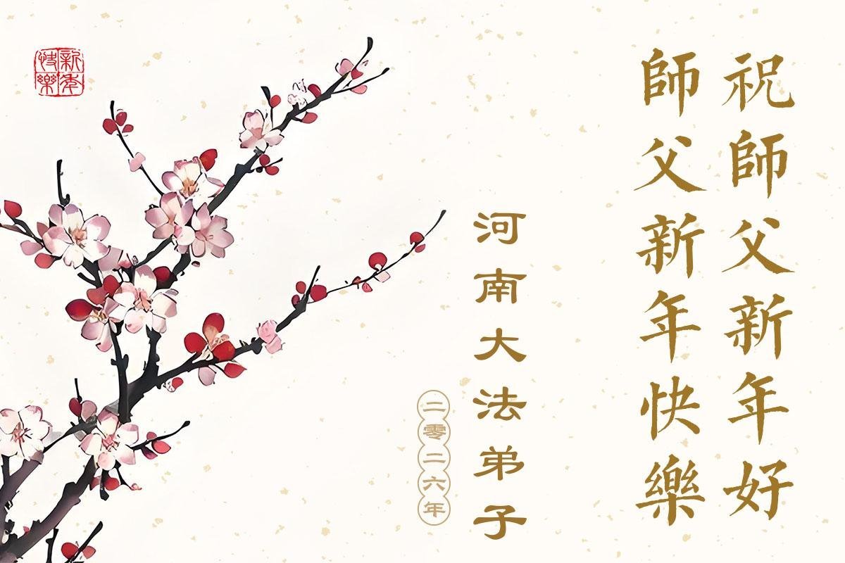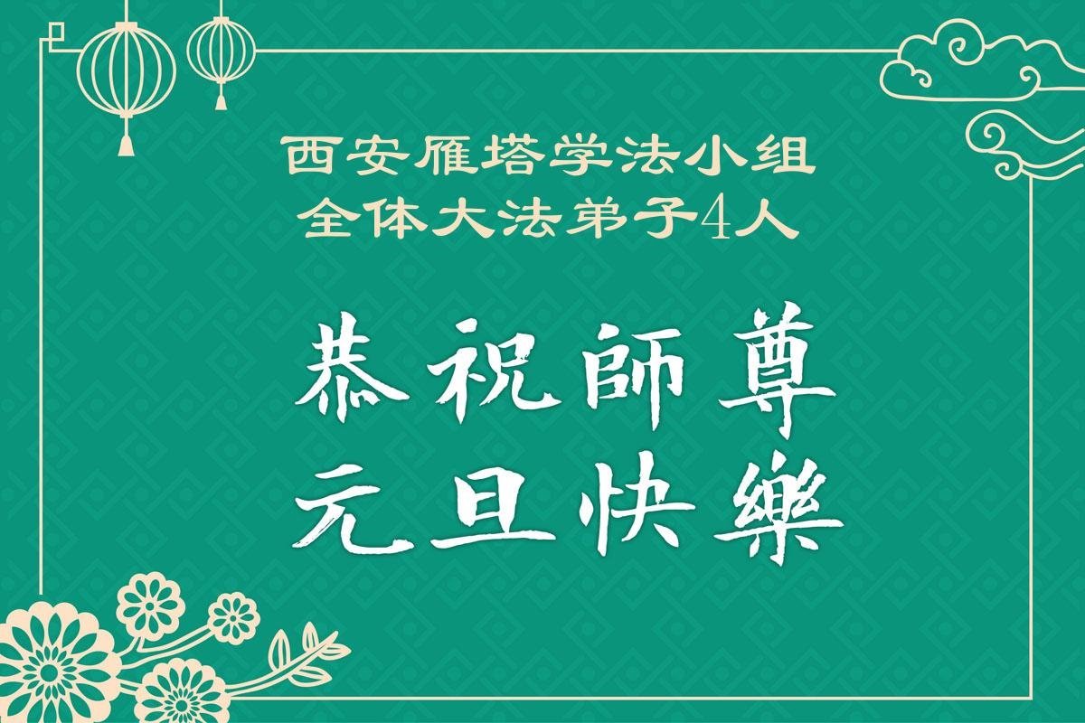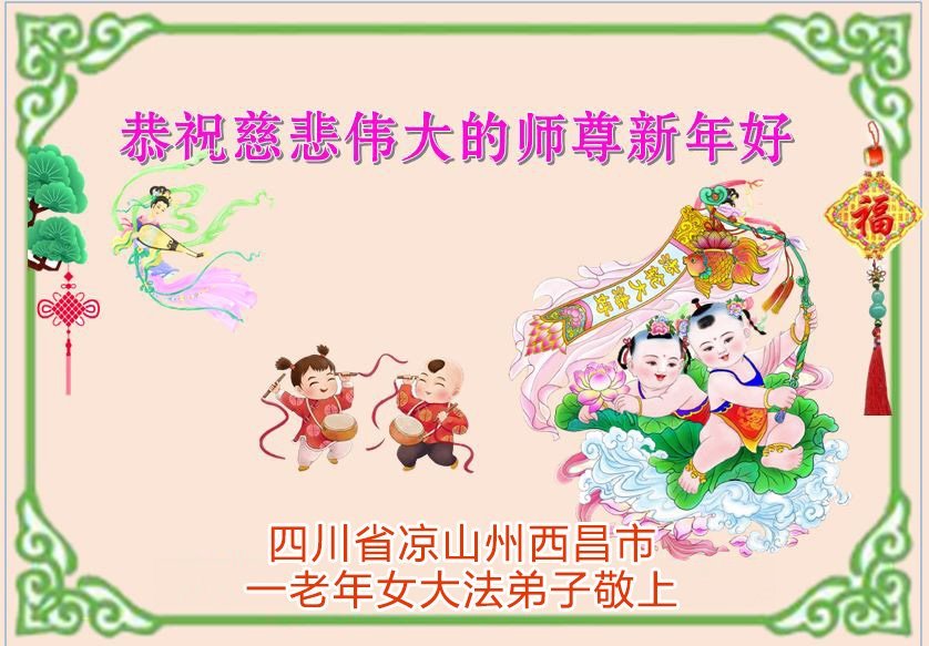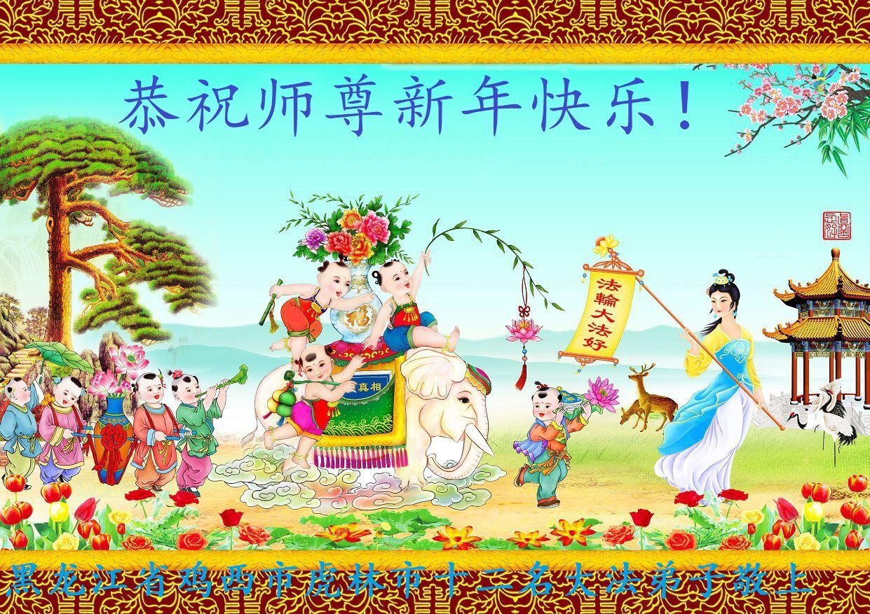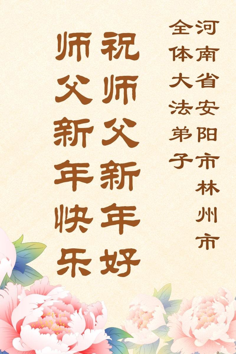师尊您几十年传法至今,始终肩负着宇宙正法的艰难,承载着各界众生的困苦、压力和巨大的业力,在这末后救人的重大时刻,您为人类操尽了心!我们想念着您!我们就做好自己应该做的三件事,请师尊放心!在此恭祝师尊新年快乐!