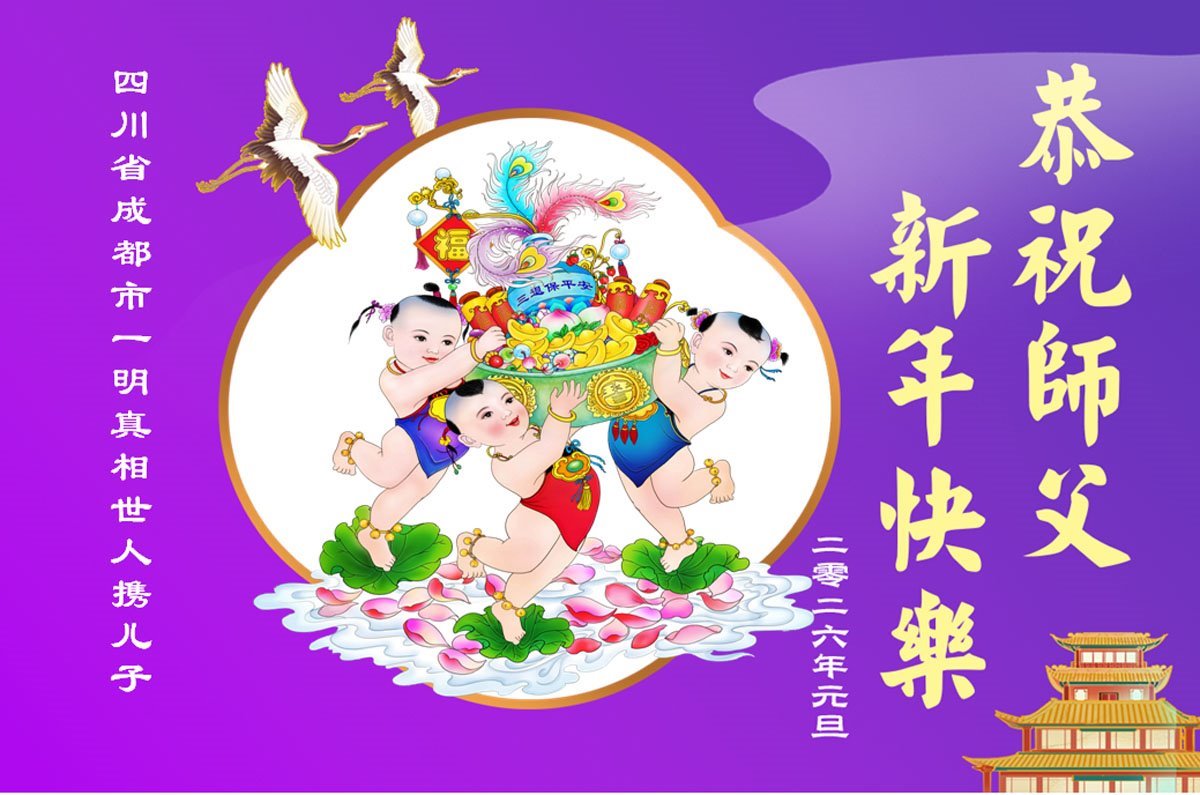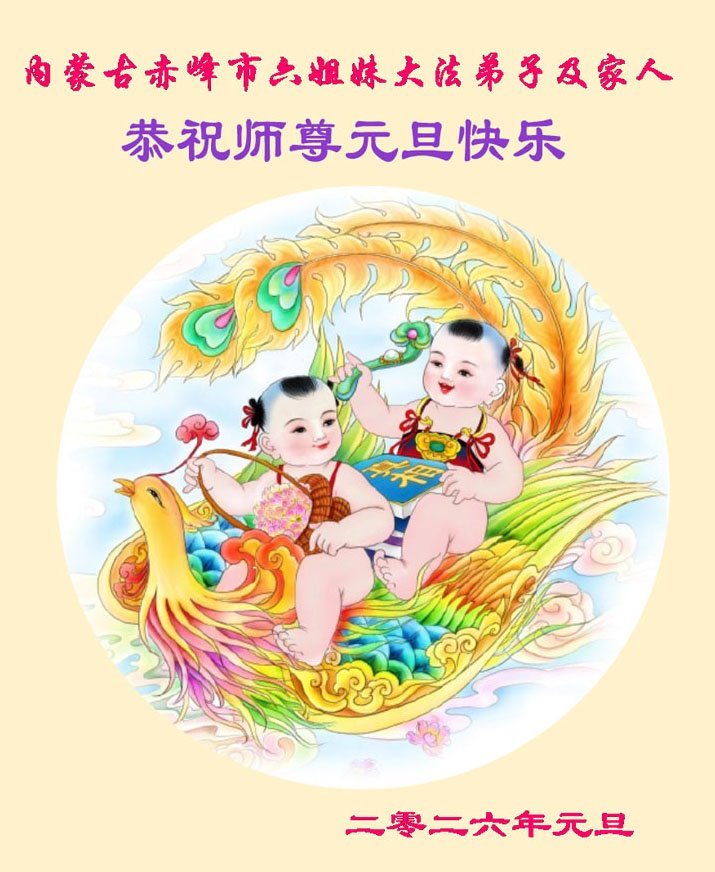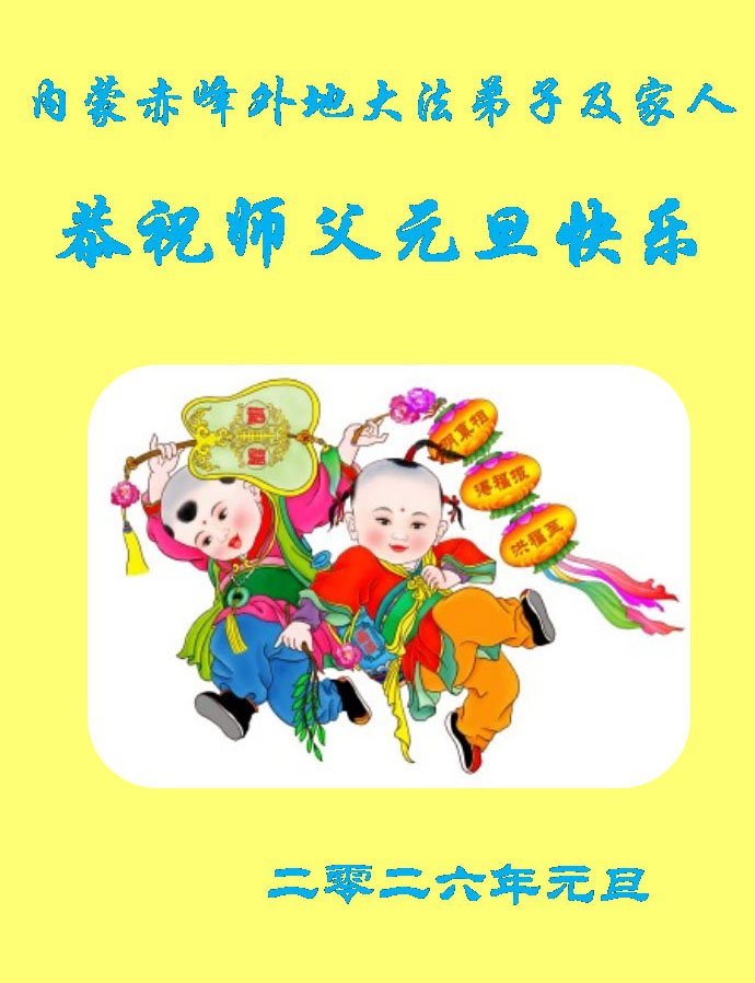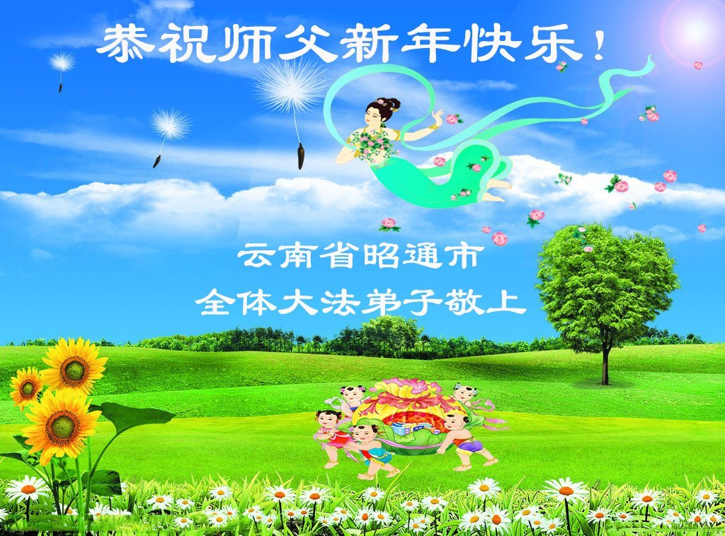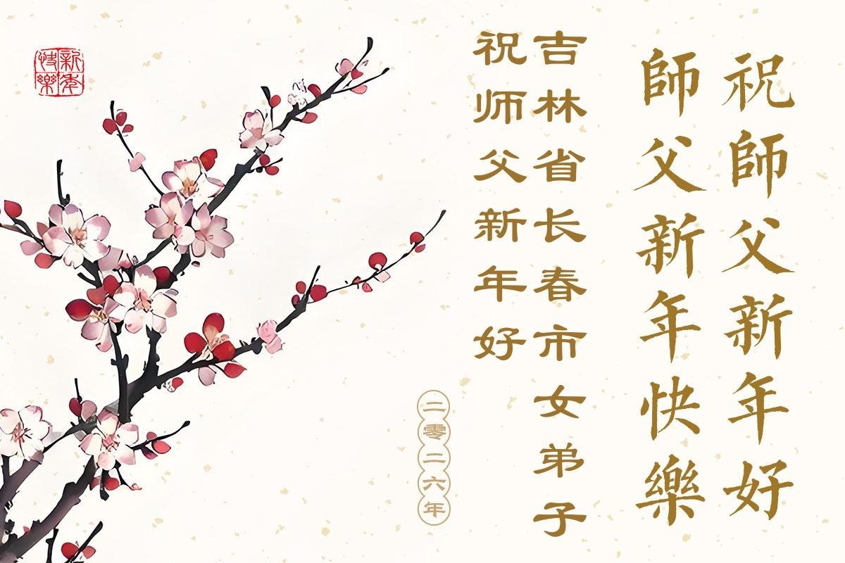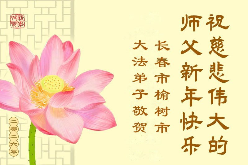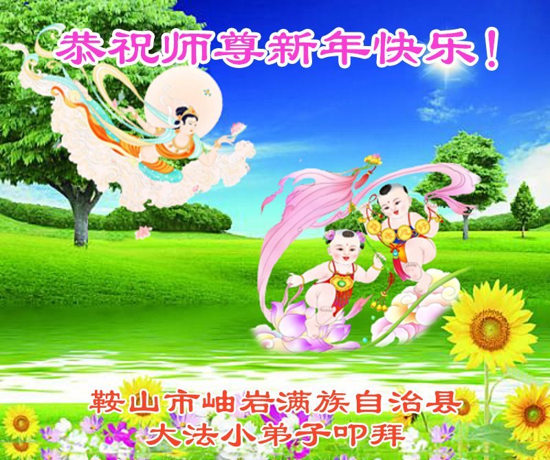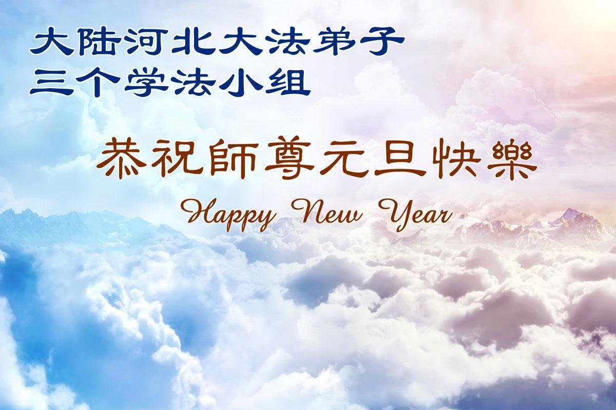 以下是部份来自中国各省、市、地区的学法炼功小组、讲真相小组、资料点大法弟子们敬致师尊的新年贺词贺卡: