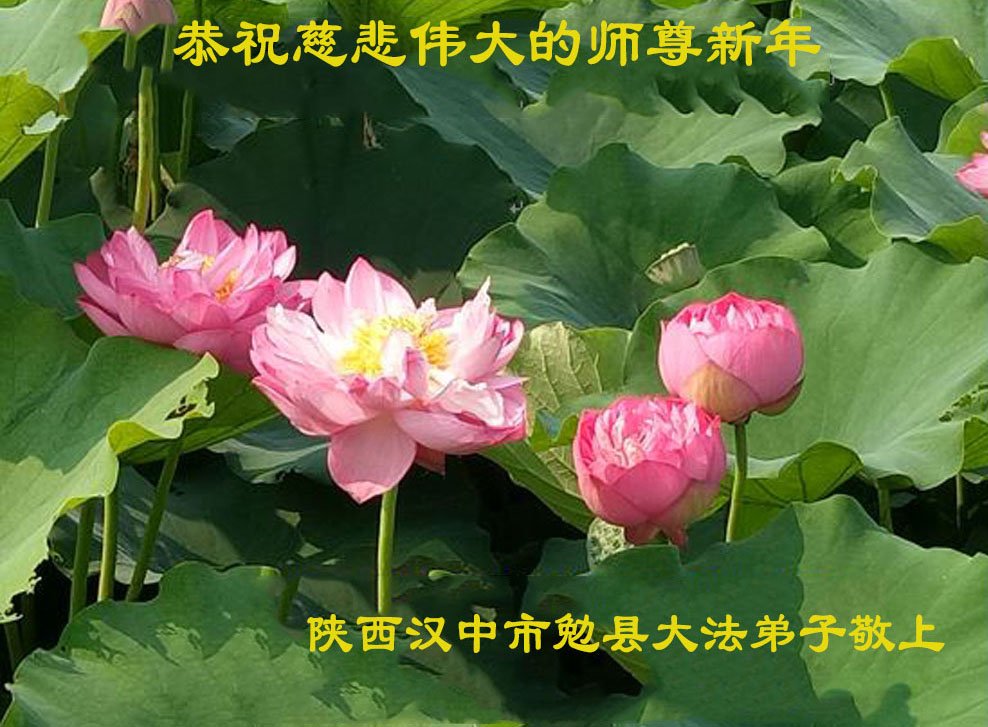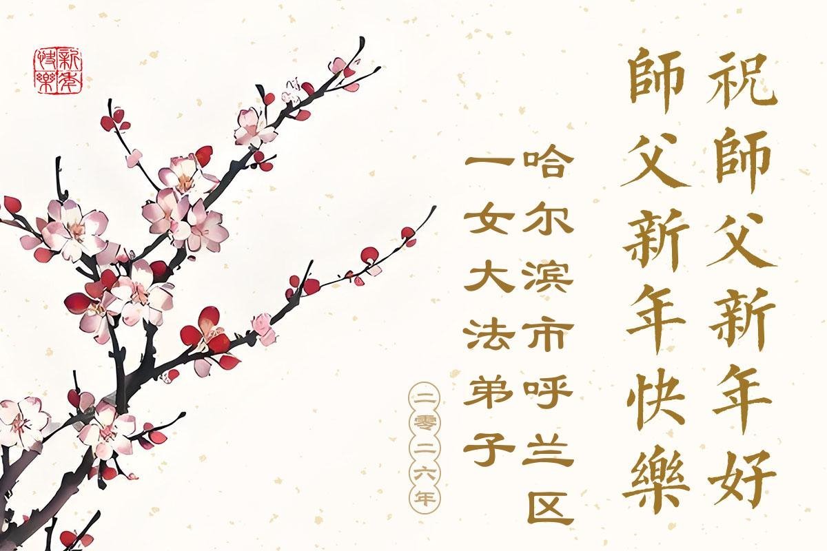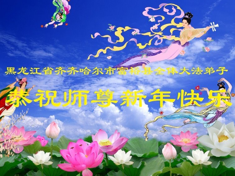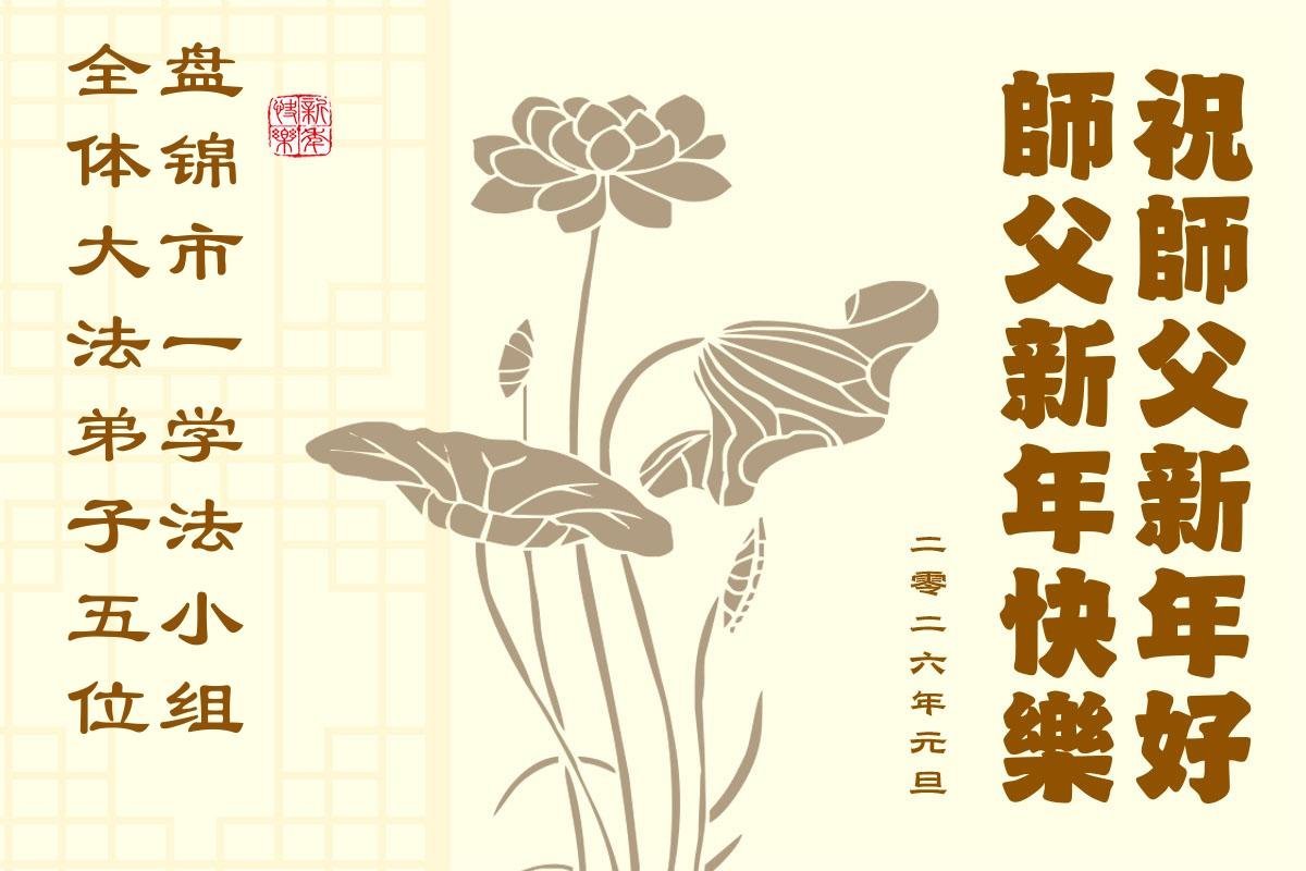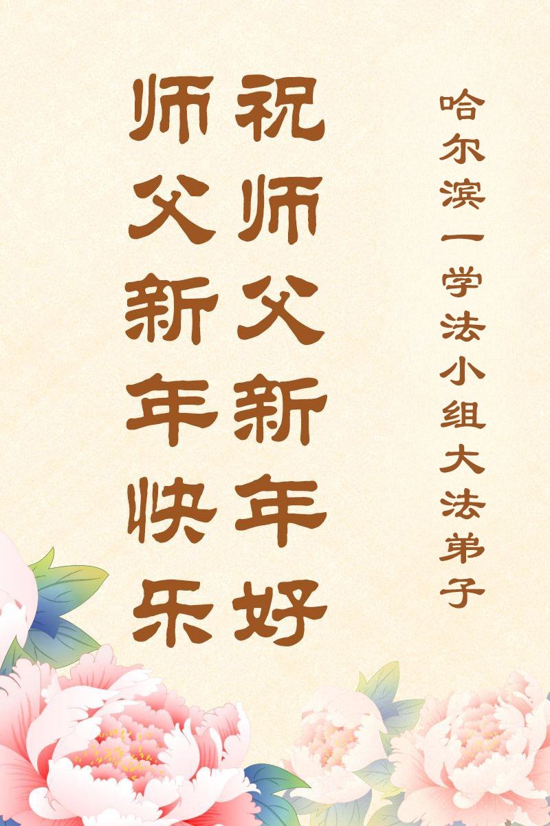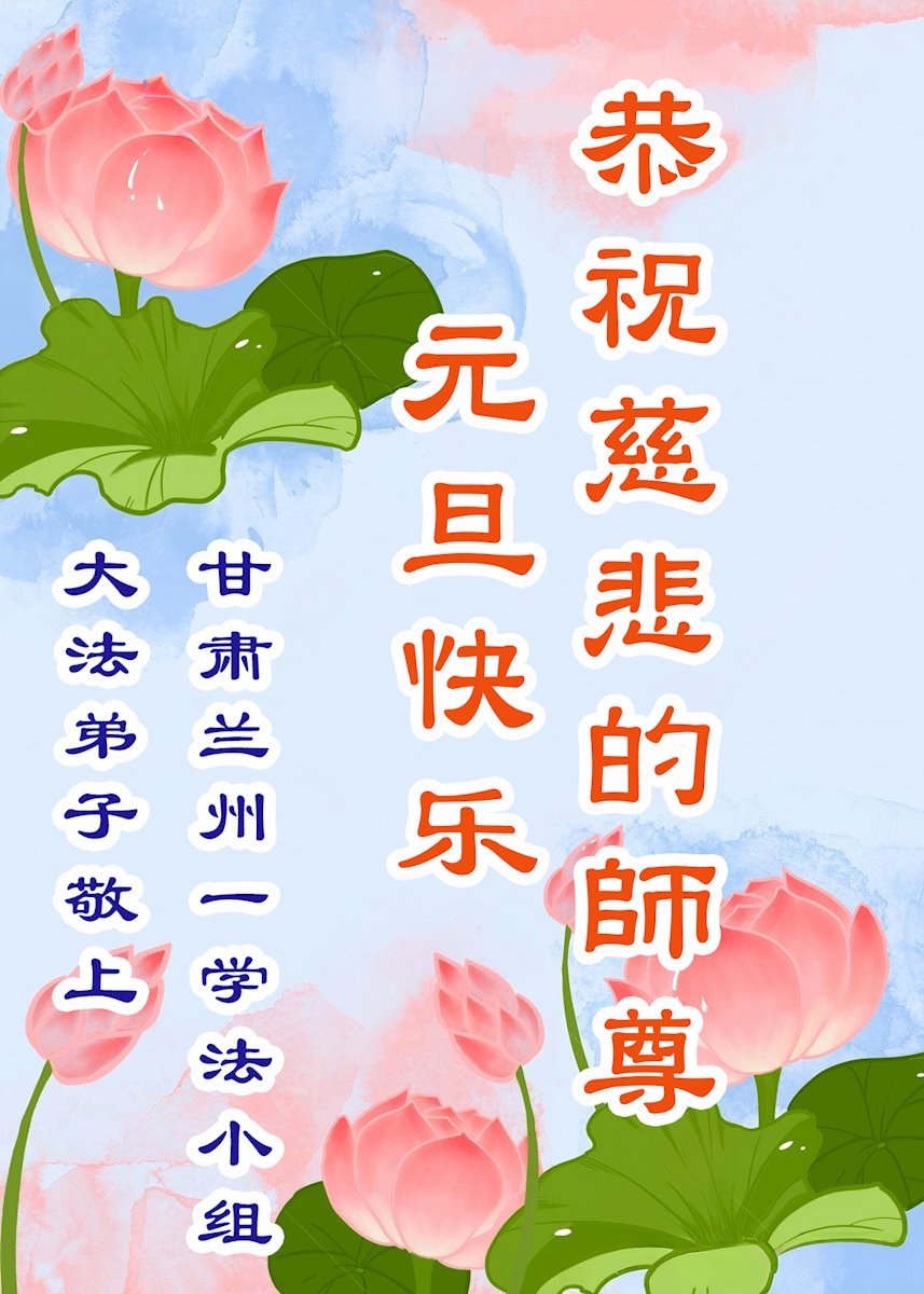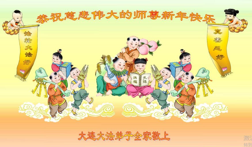 以下是部份来自中国各省、市、地区的学法炼功小组、讲真相小组、资料点大法弟子们敬致师尊的新年贺词贺卡: