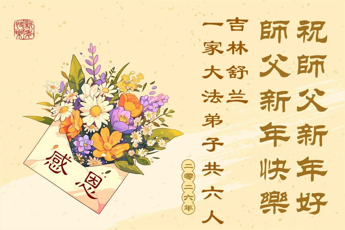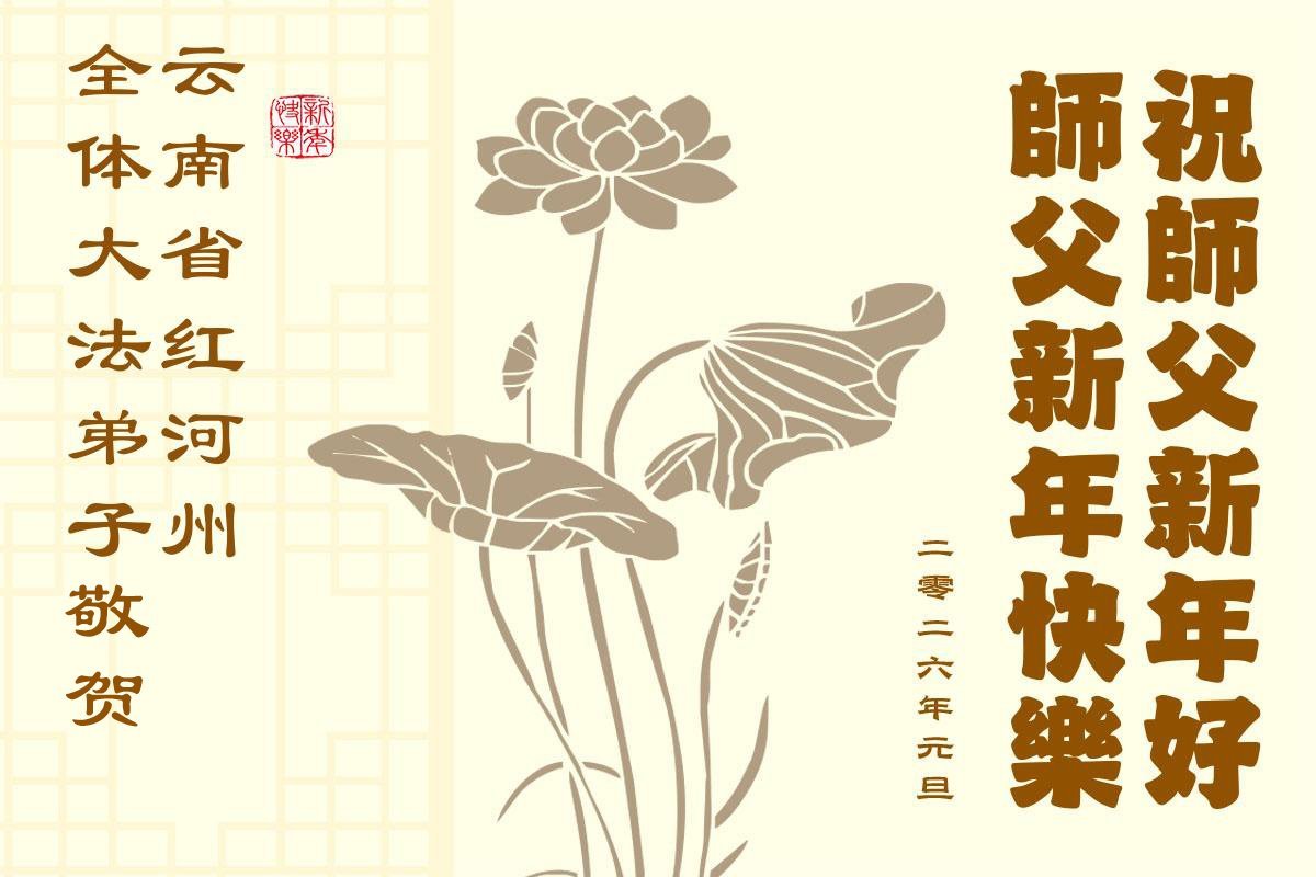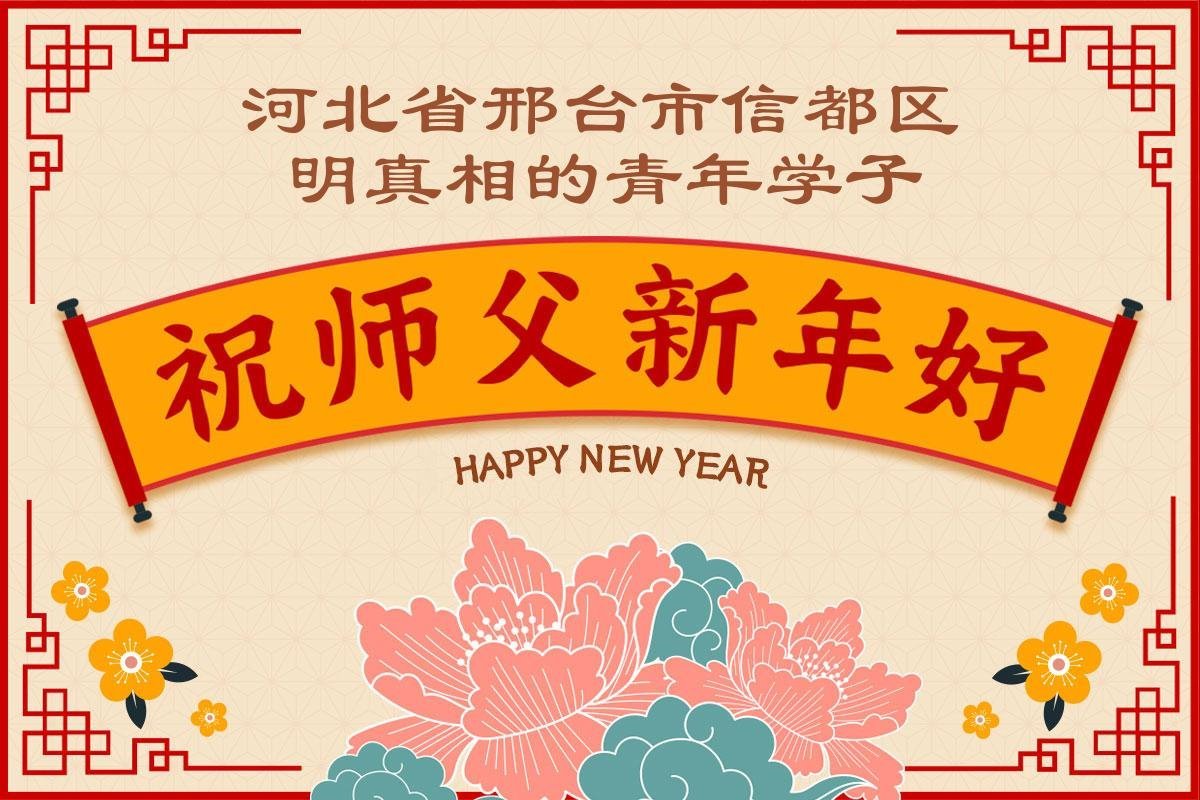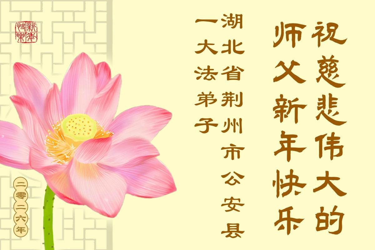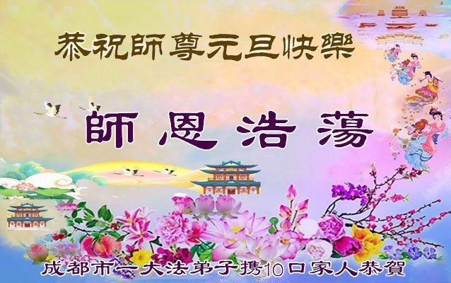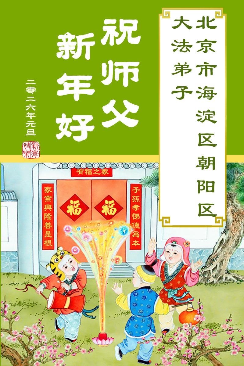 以下是部份来自中国各省、市、地区的学法炼功小组、讲真相小组、资料点大法弟子们敬致师尊的新年贺词贺卡: