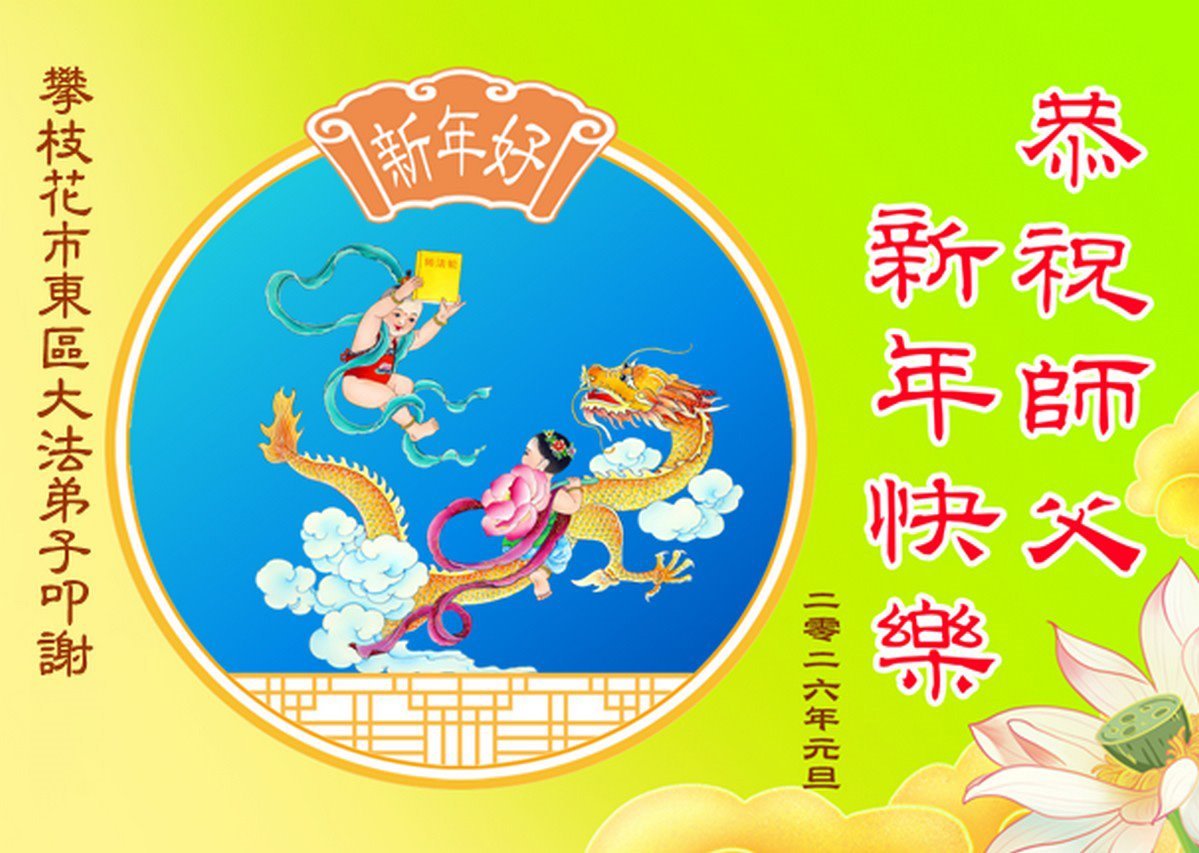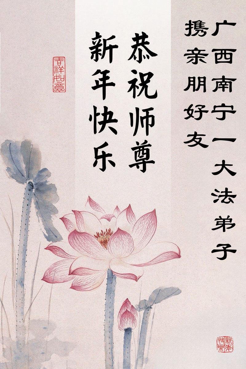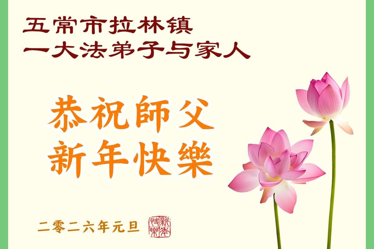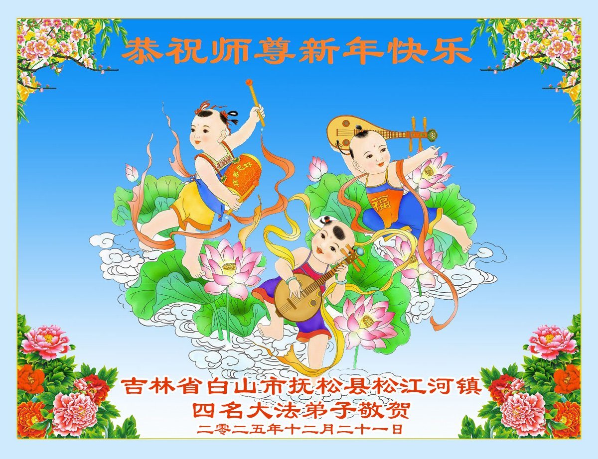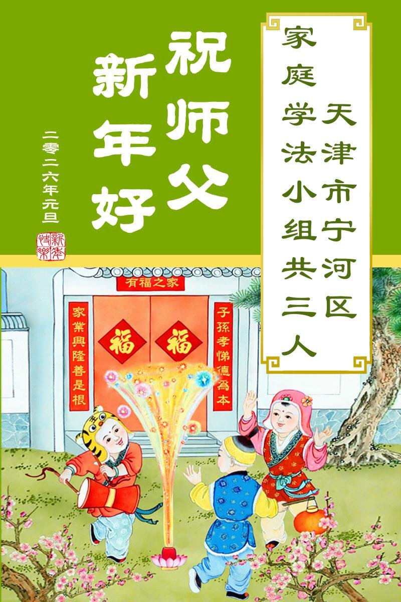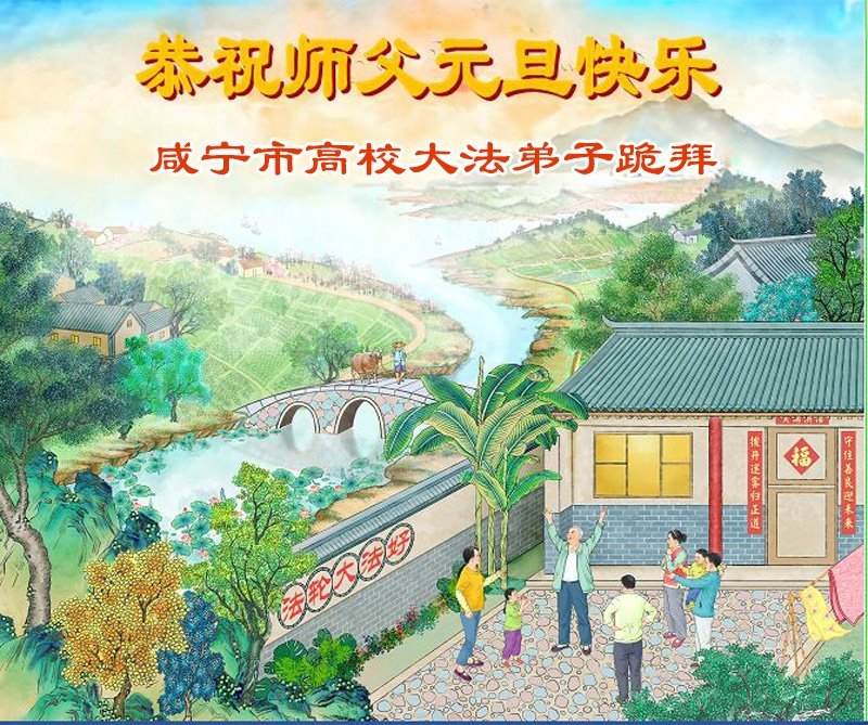 以下是部份来自中国各省、市、地区的学法炼功小组、讲真相小组、资料点大法弟子们敬致师尊的新年贺词贺卡: