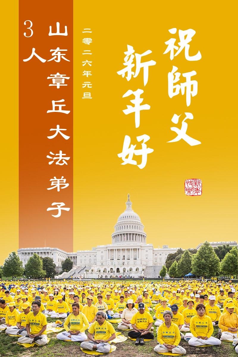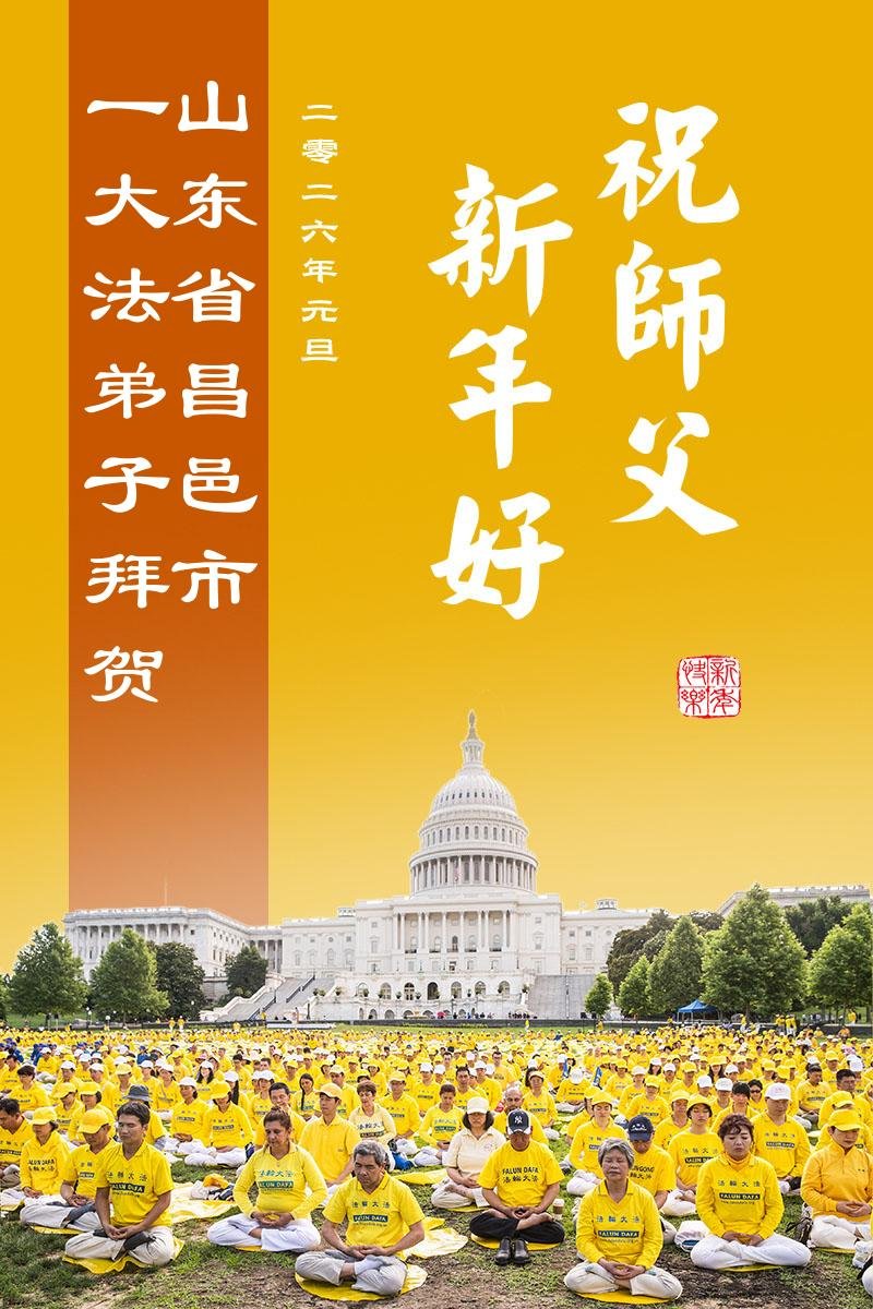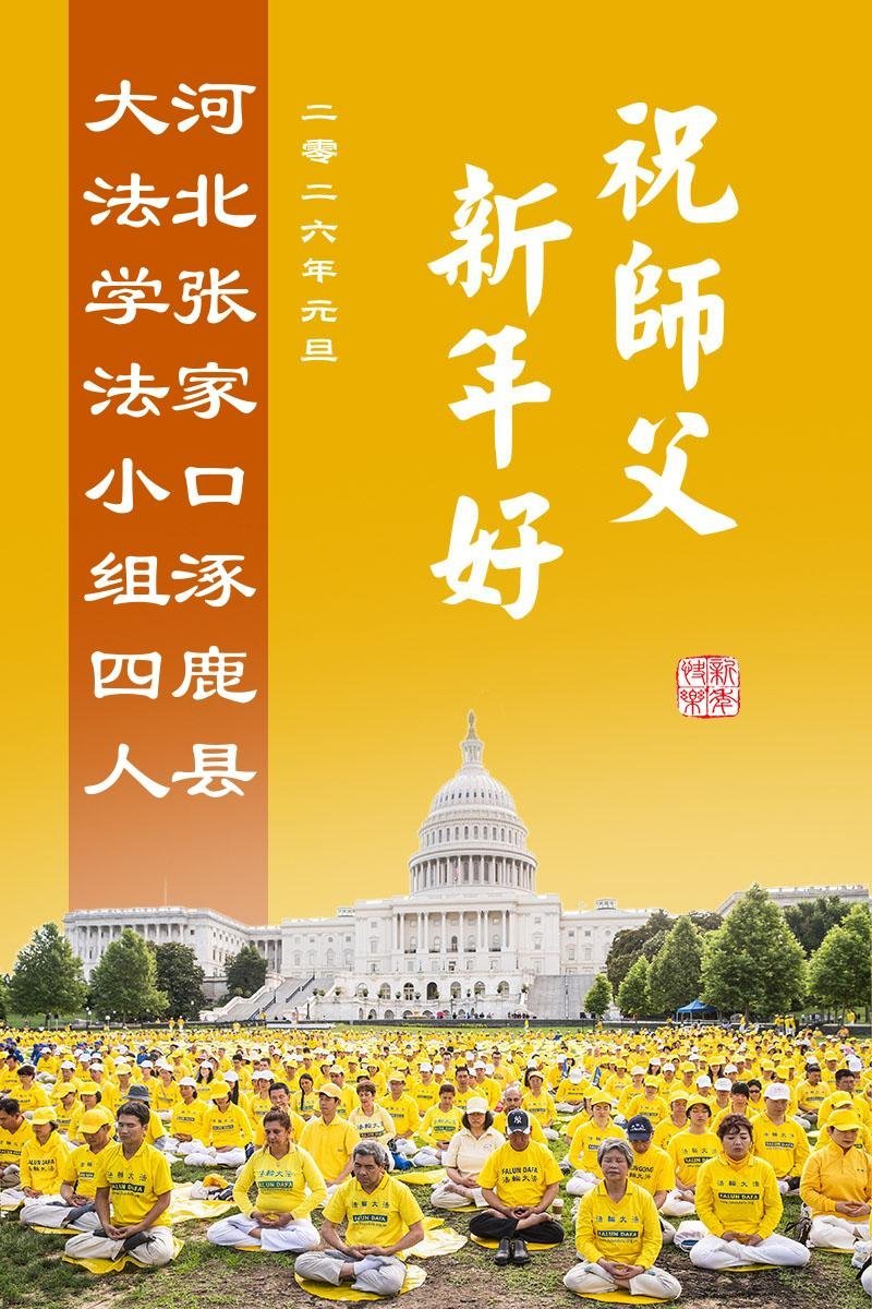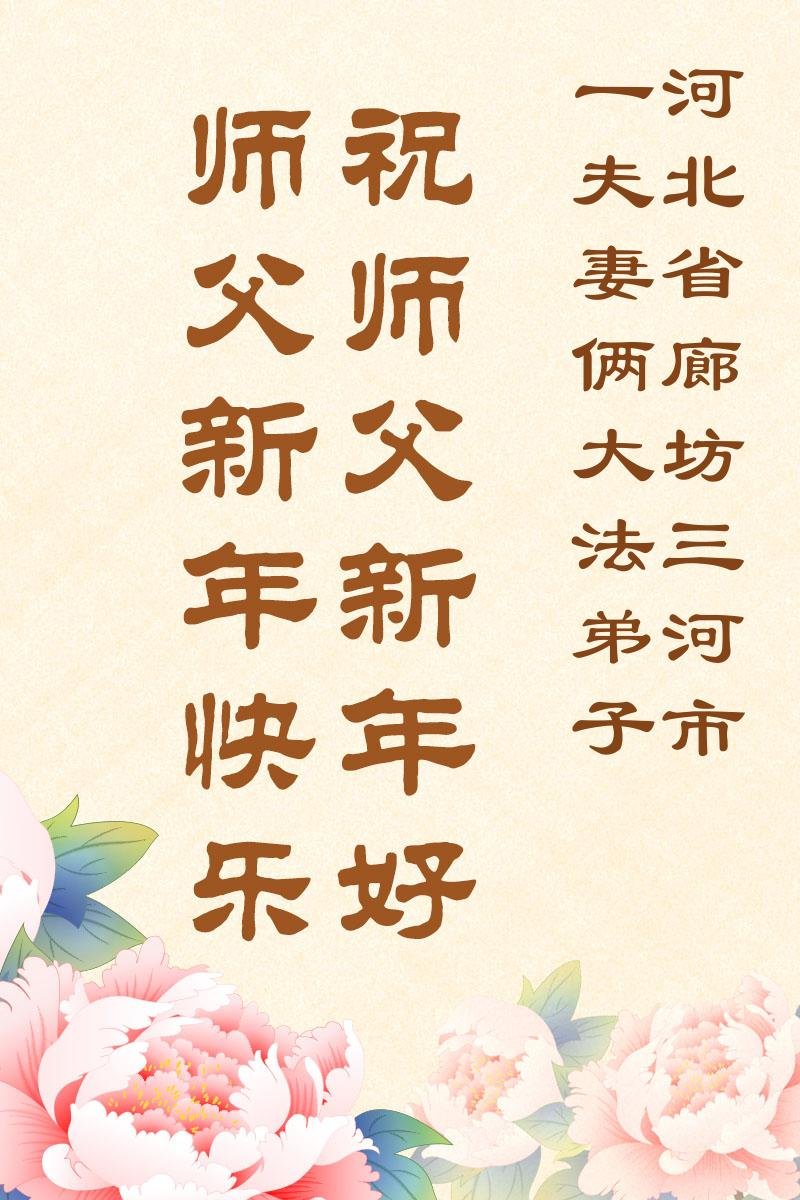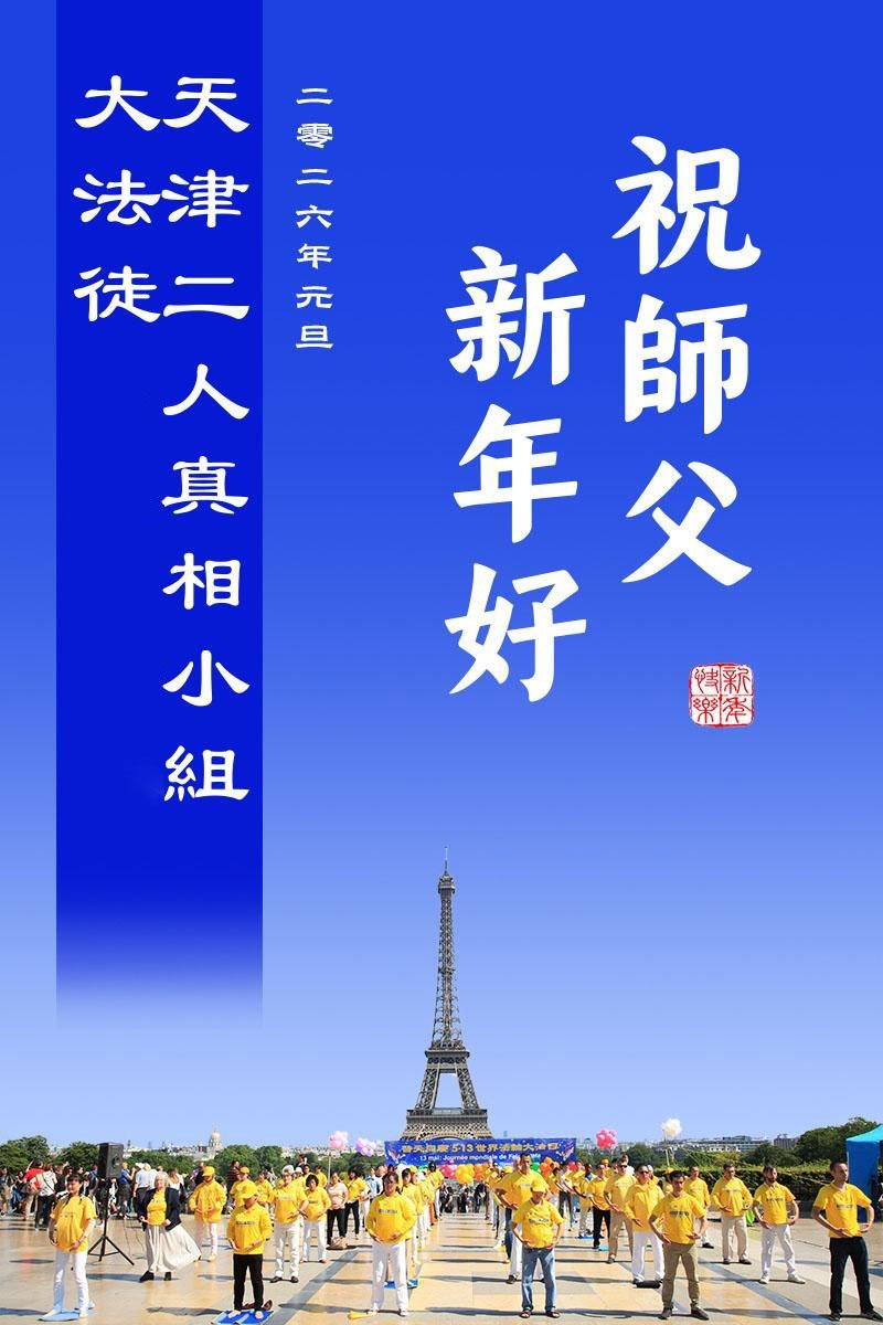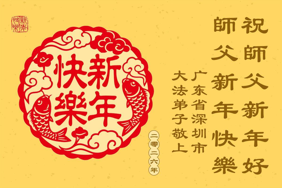 以下是部份来自中国各省、市、地区的学法炼功小组、讲真相小组、资料点大法弟子们敬致师尊的新年贺词贺卡: