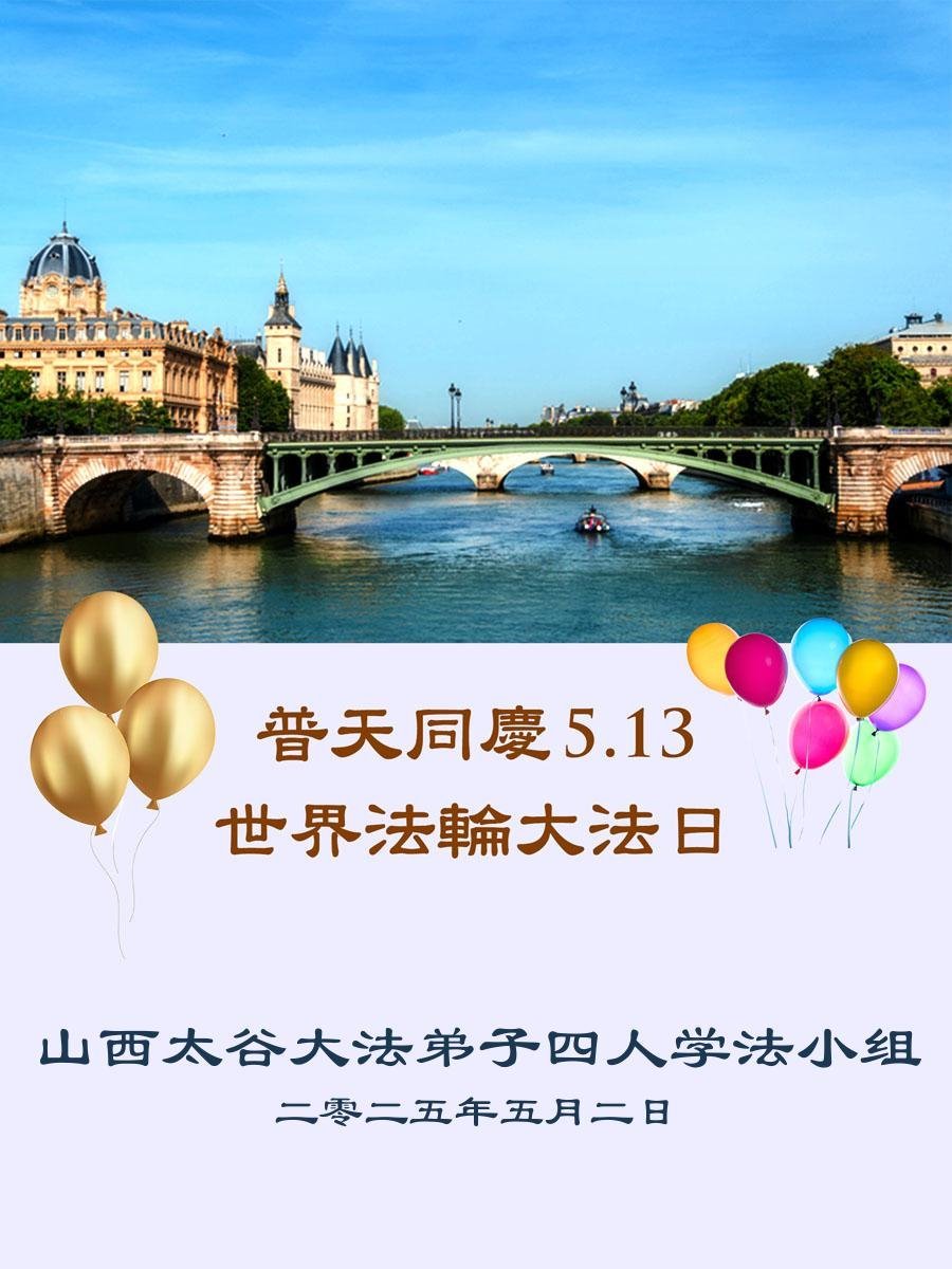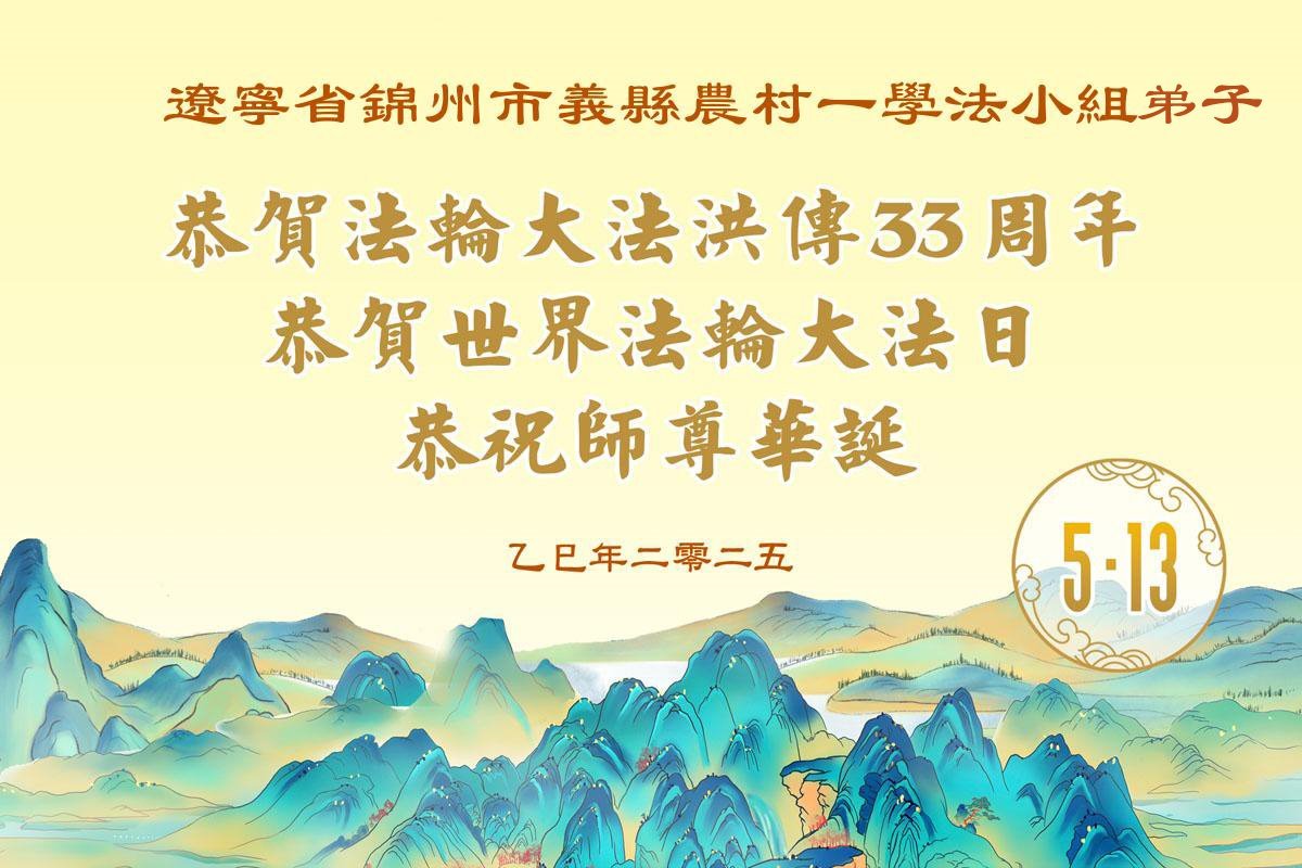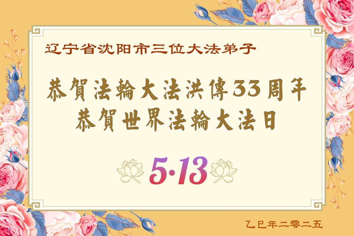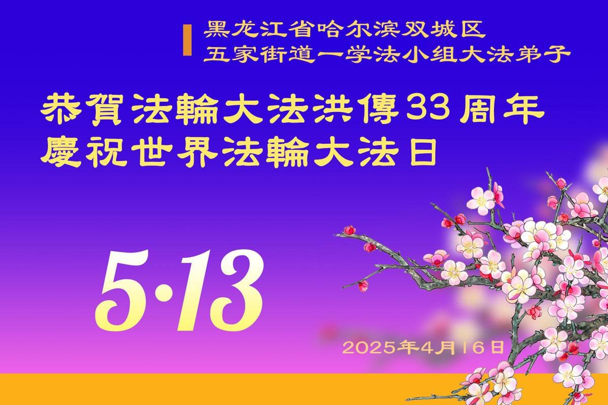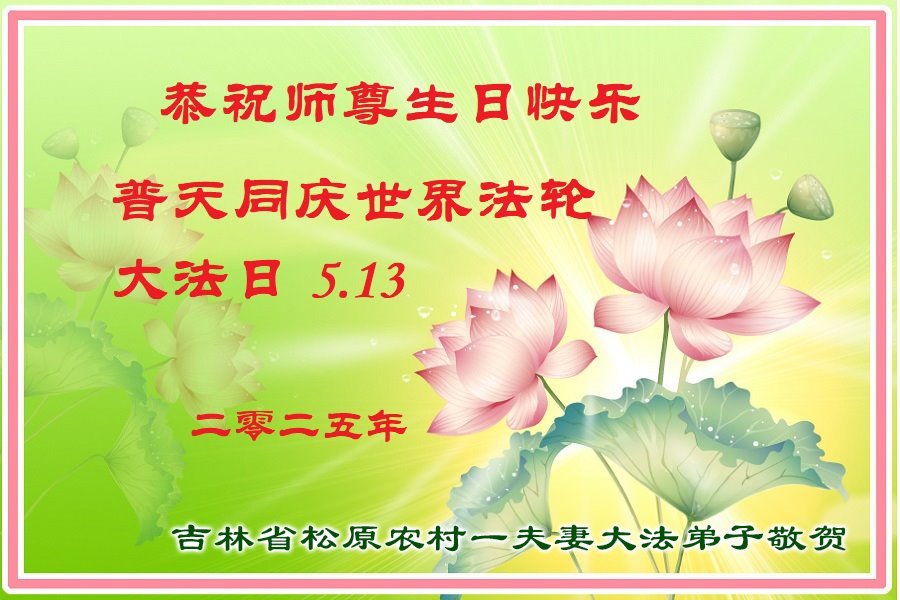 【明慧网二零二五年五月十一日】(明慧网记者综合报道)历经中共残酷迫害法轮功的二十六年,大法弟子们凭着对师尊的正信一路走过来了。中国各省各地都有学法小组,大法弟子开创环境每天静心学法炼功,按照真善忍实修自己,历经种种风雨魔难,依靠大法的指引不迷航。五月十三日,世界法轮大法日到来之际,中国各地学法小组的大法弟子们同庆同祝这神圣的日子,深深感念师尊的慈悲救度,恭贺师尊华诞。
