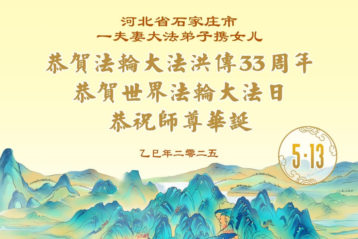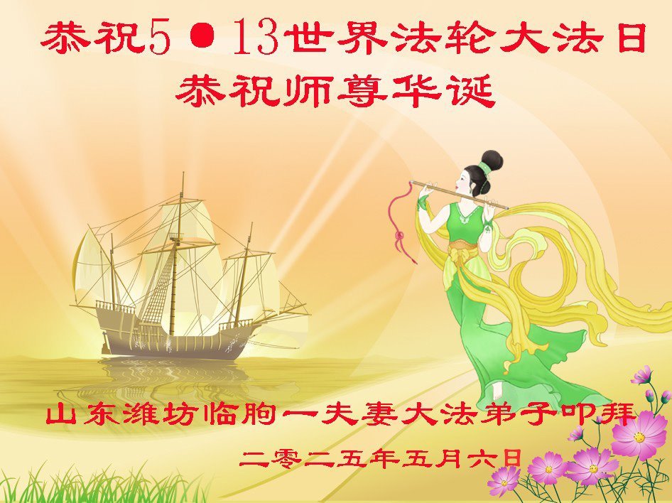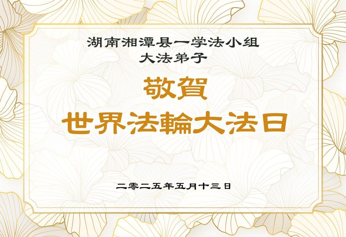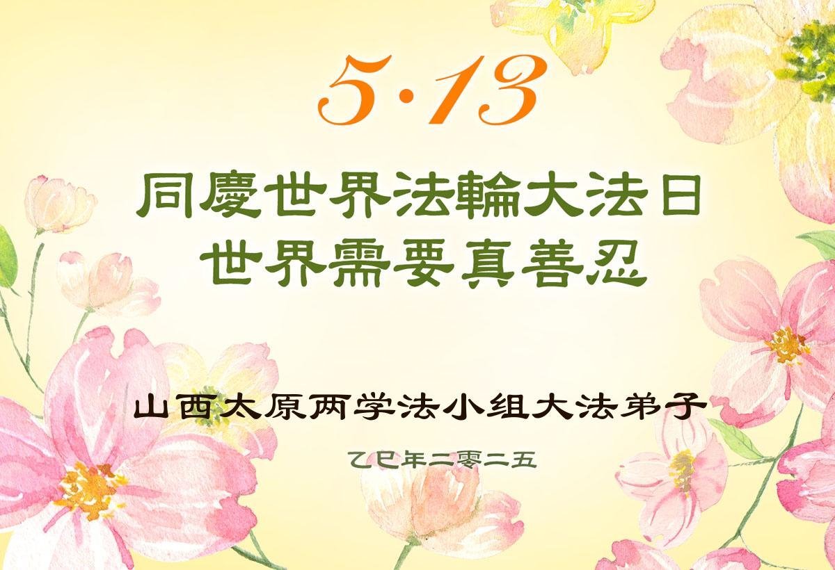 【明慧网二零二五年五月十一日】(明慧网记者综合报道)历经中共残酷迫害法轮功的二十六年,大法弟子们凭着对师尊的正信一路走过来了。中国各省各地都有学法小组,大法弟子开创环境每天静心学法炼功,按照真善忍实修自己,历经种种风雨魔难,依靠大法的指引不迷航。五月十三日,世界法轮大法日到来之际,中国各地学法小组的大法弟子们同庆同祝这神圣的日子,深深感念师尊的慈悲救度,恭贺师尊华诞。
