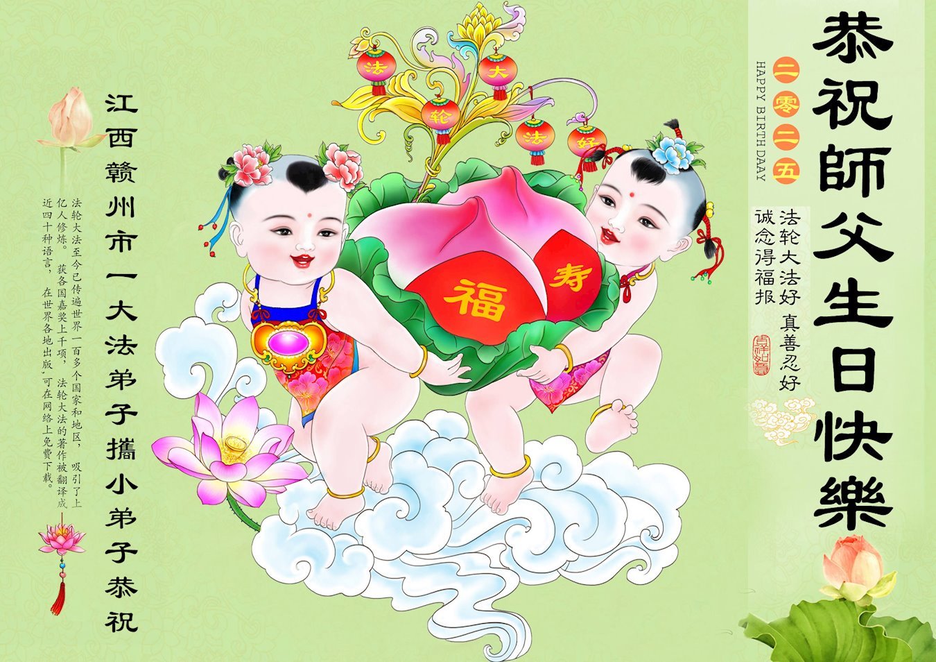 我们是九九年七二零之前得法的老弟子,历经种种风雨魔难,更加坚信大法,精進实修,以报师恩。在五一三世界法轮大法日来临之际,恭祝师尊生日快乐!我们想念师尊,盼望师尊早日回国,荣归故里。弟子敬拜师尊!谨以以下小诗敬献师尊。
