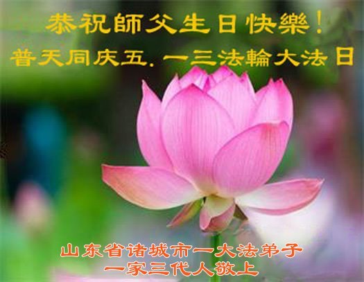 我修炼大法,我的家人都支持,因此我的家人都明白真相,受益多多。家人也让我替他们向师父问候。恭祝师父生日快乐!在新的一年里,我们学法小组会更加努力做好三件事,完成我们的历史使命,跟随师父正法到最后一刻。