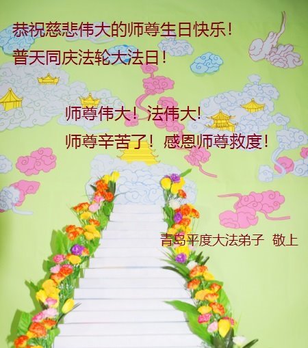 第二十六届世界法轮大法日暨师父华诞之际,同庆世界法轮大法日!恭贺师父生日快乐!师父您辛苦了!我们一定会紧紧拉着您的手,紧跟正法進程,不断提高心性,做好自己该做的事,跟师父回家!