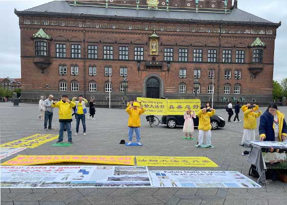 五月十日,丹麦法轮功学员和部分瑞典法轮功学员于丹麦哥本哈根市政厅广场举行活动,庆祝五月十三日法轮大法弘传世界三十三周年。