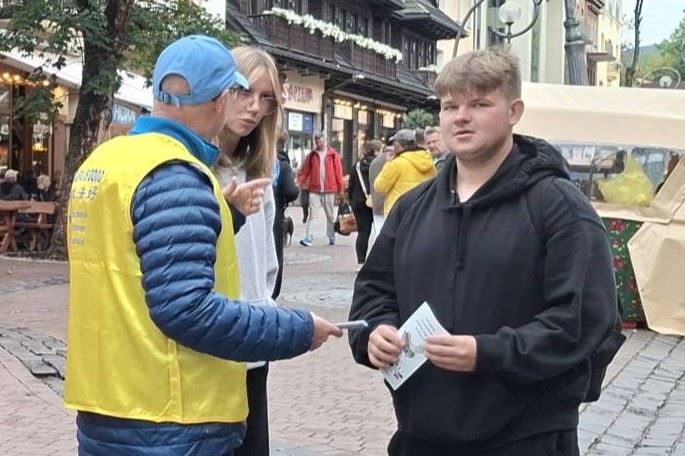 【明慧网二零二五年九月二十二日】扎科帕内(Zakopane)是波兰塔特拉(Tatra)山脉最大的旅游胜地,一年四季风景如画,每年都吸引着数百万游客到访。二零二五年九月十四日波兰部分法轮功学员学员在扎科帕内市中心的克鲁波夫基(Krupówki)街上举行了弘法活动,对过往游客介绍法轮大法、演示五套功法,并揭露在中国遭受残酷迫害的真相。