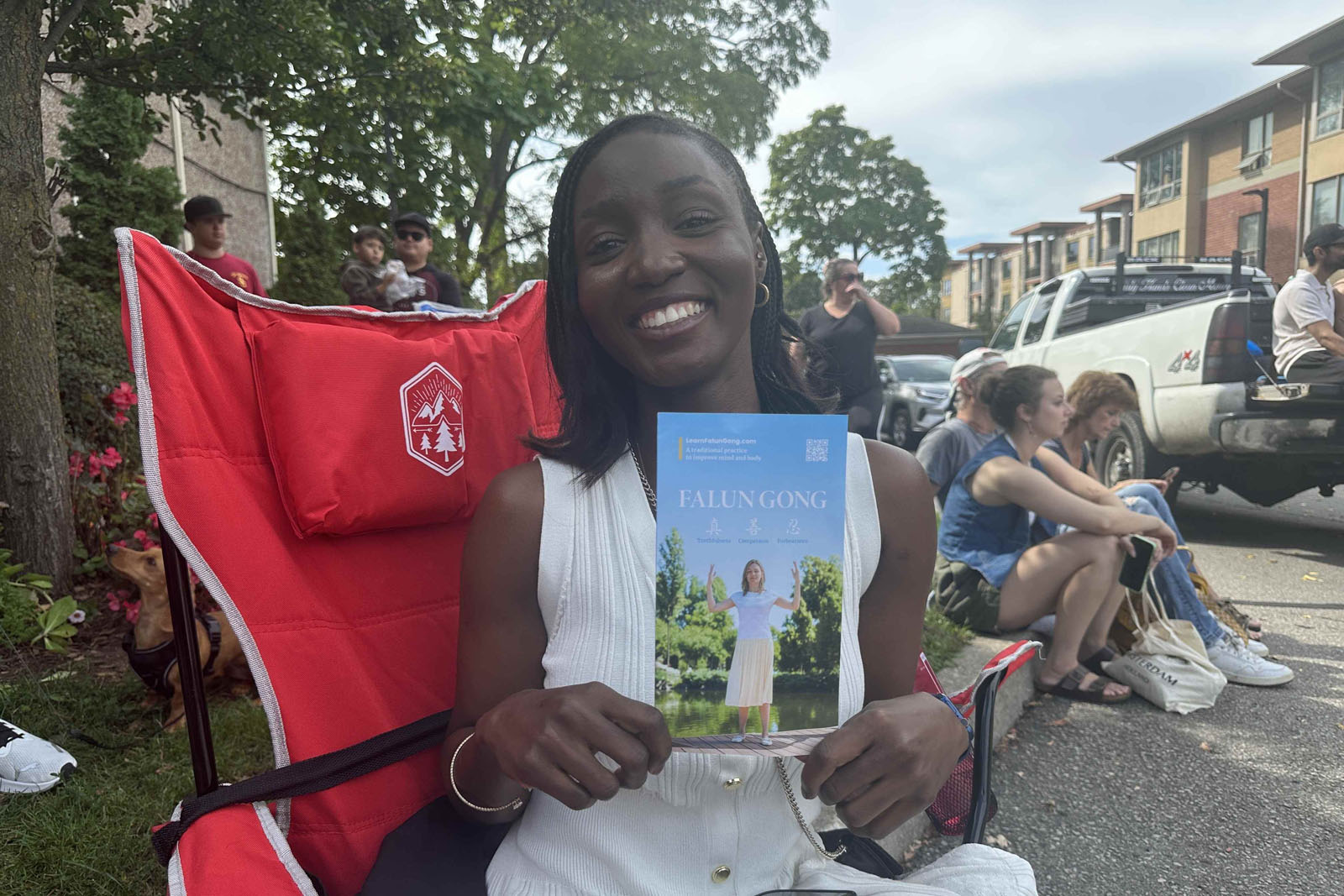 特里什(Trish)表示自己是第一次看到法轮功团队,她说:“我非常喜欢他们的演奏,也跟着他们的音乐在鼓掌,太棒了!”她还表示:“我觉得(法轮大法)不仅能有利于身体健康更能改善心理健康,他们遵循的真、善、忍更能对世界的展现有益处。”