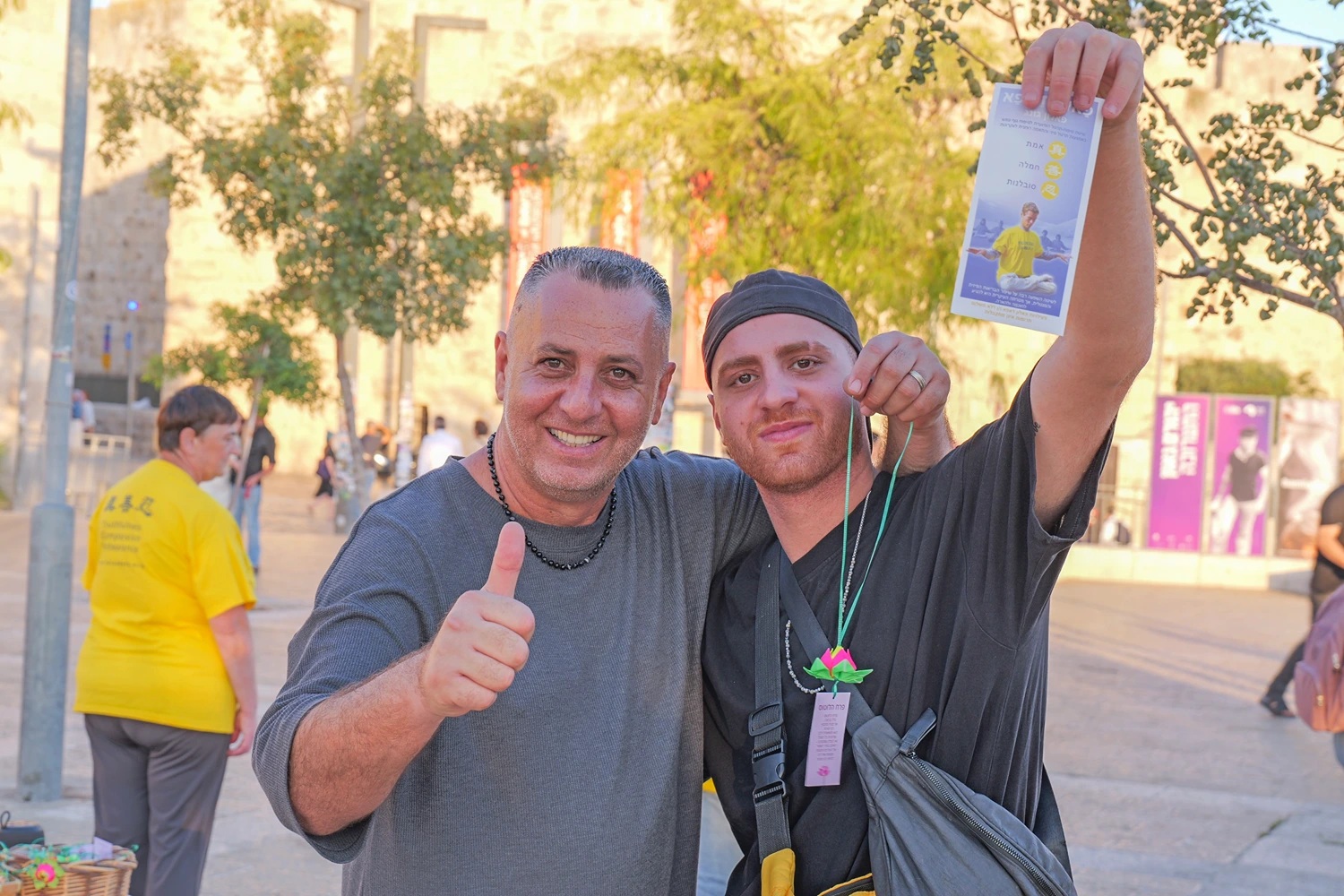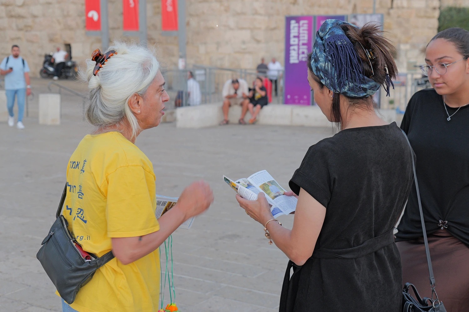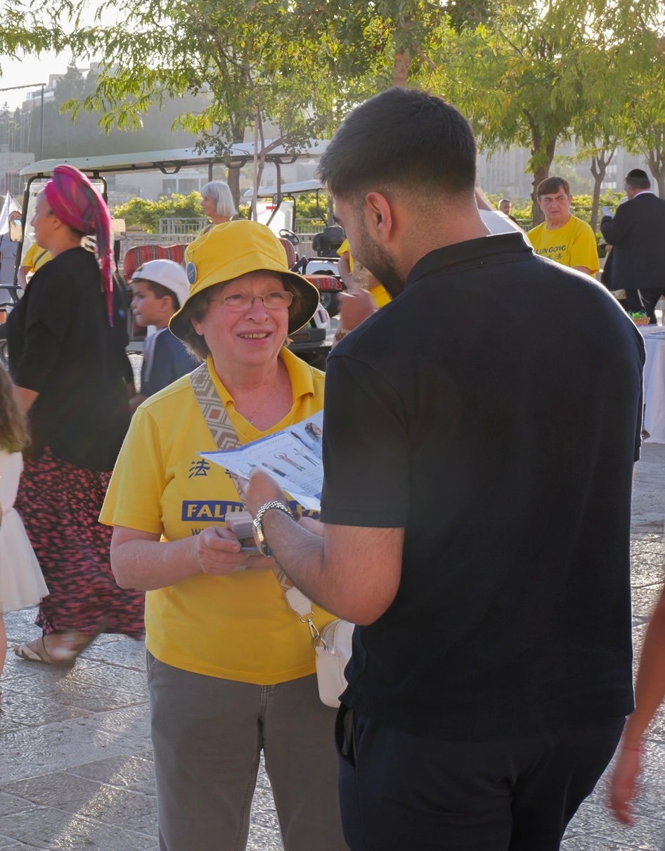 【明慧网二零二五年九月九日】二零二五年八月二十一日(星期四),以色列法轮大法学员在耶路撒冷(Jerusalem)、特拉维夫-雅法(Tel Aviv-Jaffa,)和贝尔谢巴市(Beersheba)举办了信息日活动,向民众介绍大法,并讲述法轮功学员在中国大陆因坚持信仰而遭受中共迫害的事实真相。