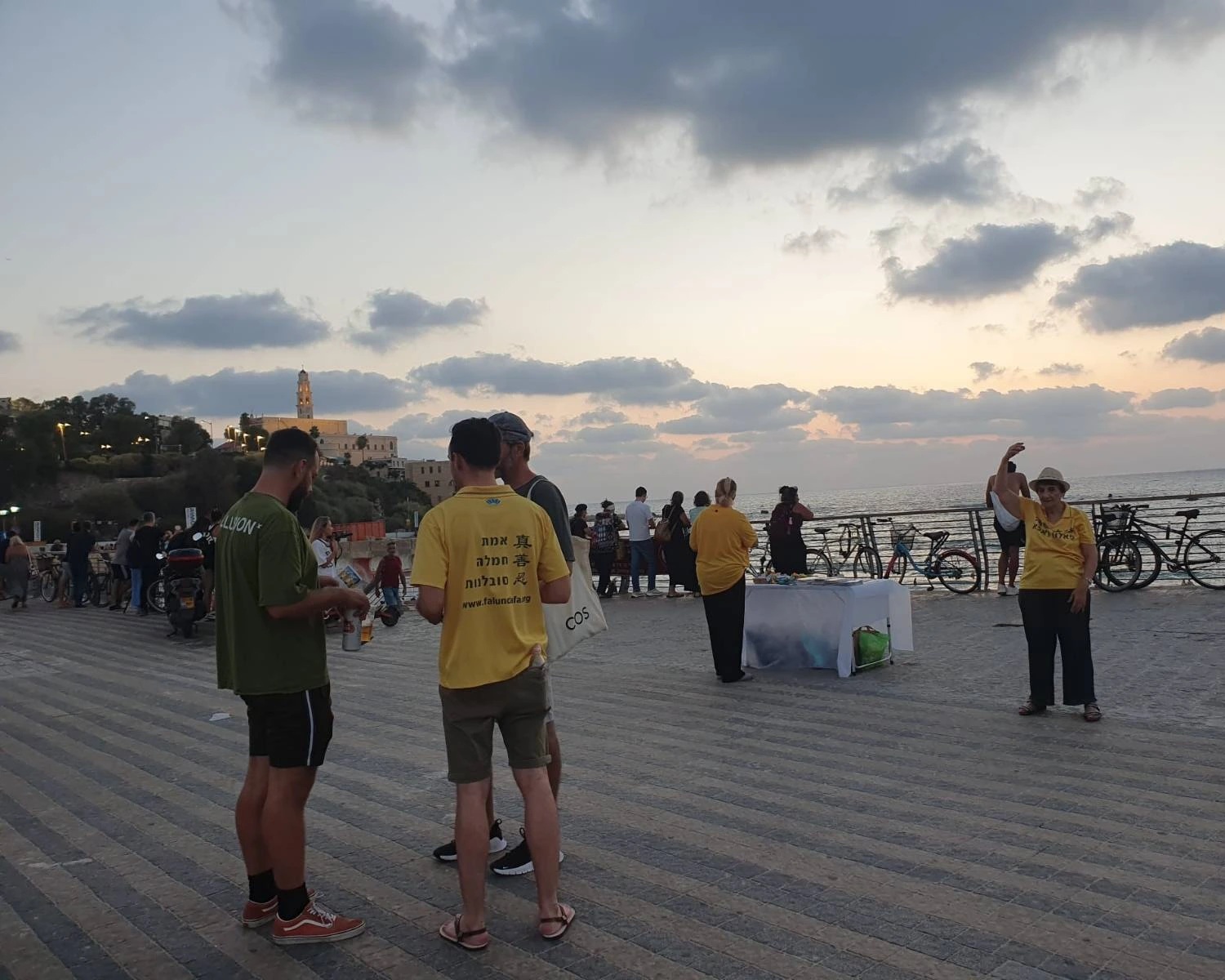 学员们在雅法的两个地点同时举办活动,一个是在特拉维夫海滩的滨海大道,另一个是在雅法的滨海大道。