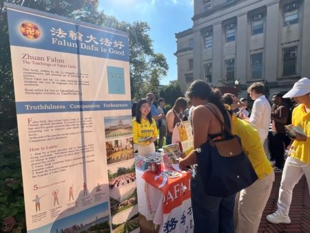 <英文版: https://en.minghui.org/html/articles/2025/9/10/229764.html>哥伦比亚大学秋季开学日校内外弘法讲真相
