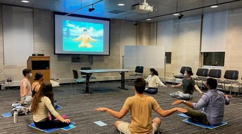 ![]() 图7:哥伦比亚大学法轮大法社团组织学习法轮功功法(哥大法轮大法社团提供)。 |