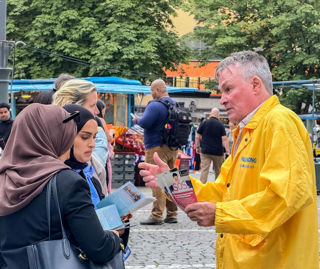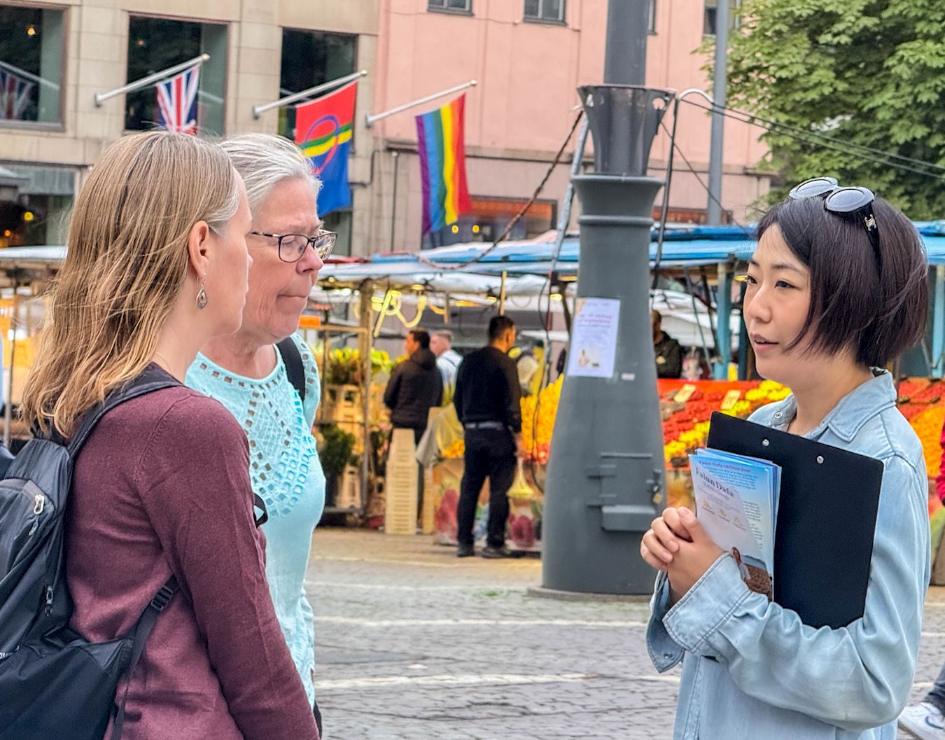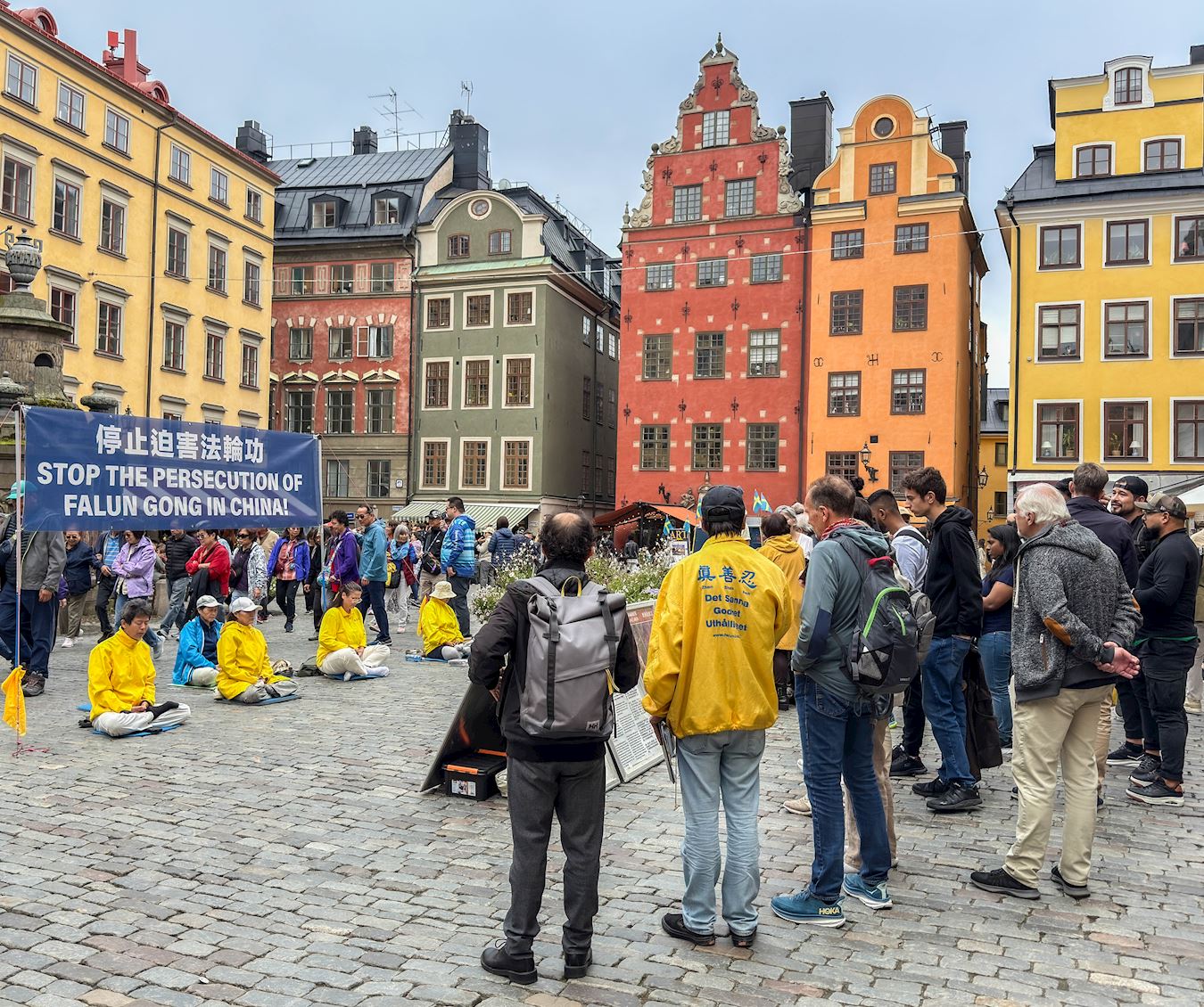 斯德哥尔摩音乐厅位于繁华闹市区,很多过往市民和游客在经过活动现场时,被法轮功优美的炼功音乐、祥和的炼功场面所吸引,纷纷驻足观看。有的观看真相展板,有的与学员交谈了解更多详情。很多人明白真相后都纷纷签名,表示希望大家共同来制止中共的反人类罪行。