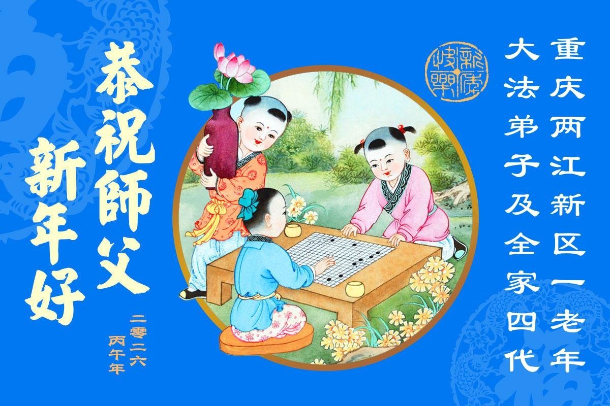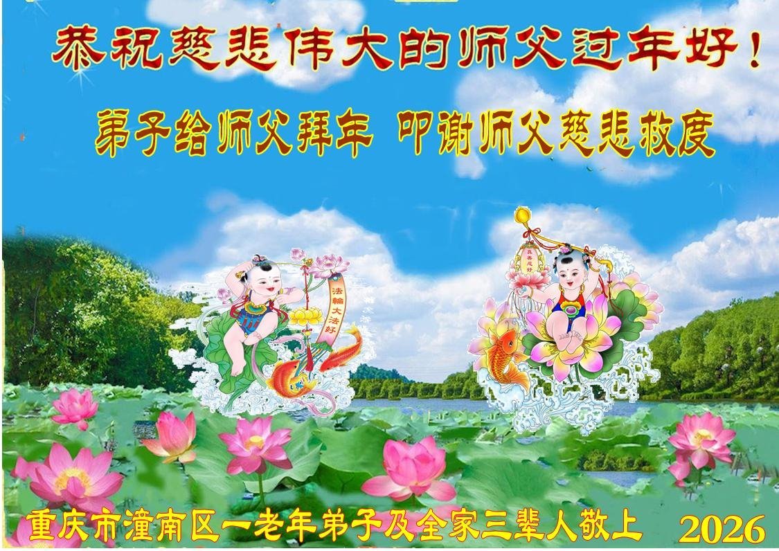 重庆市长寿区一大法弟子全家祖孙三代人恭祝慈悲伟大的大法师父新年好!