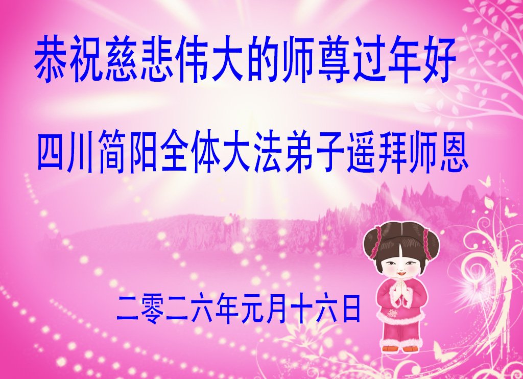 在丙午年中国传统新年即将来临之际,沐浴在大法洪恩中的善良百姓,怀着最真挚的心意,向李洪志大师表达他们深深的感恩与祝福。