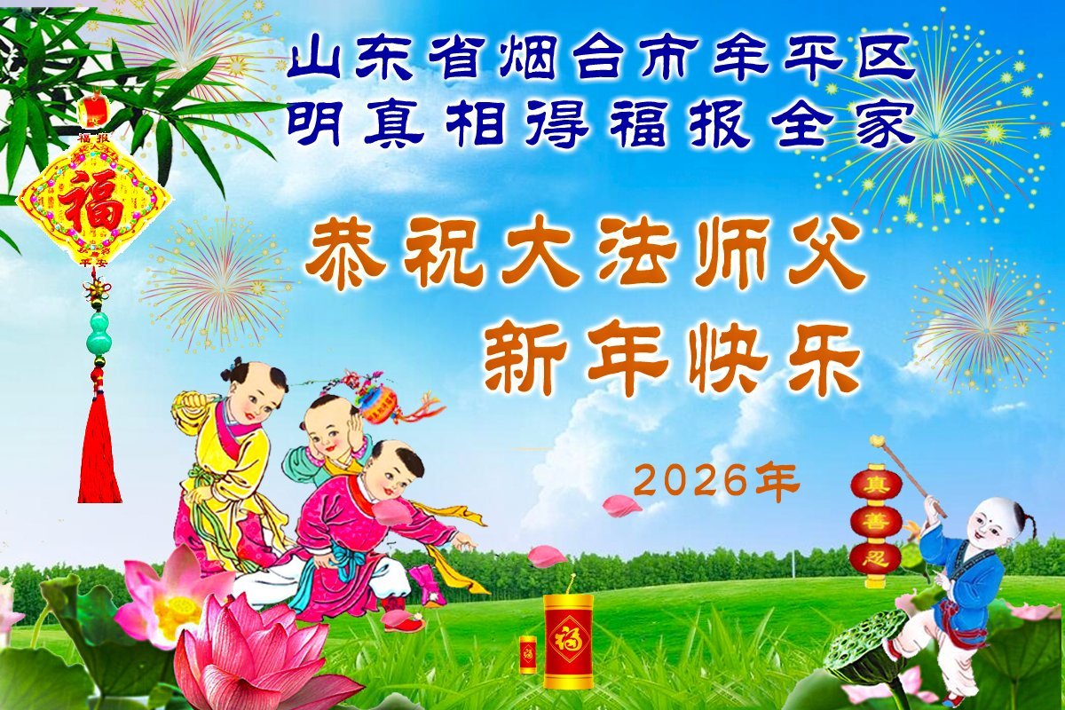 山东省烟台市牟平区明真相得福报全家恭祝大法师父新年快乐!