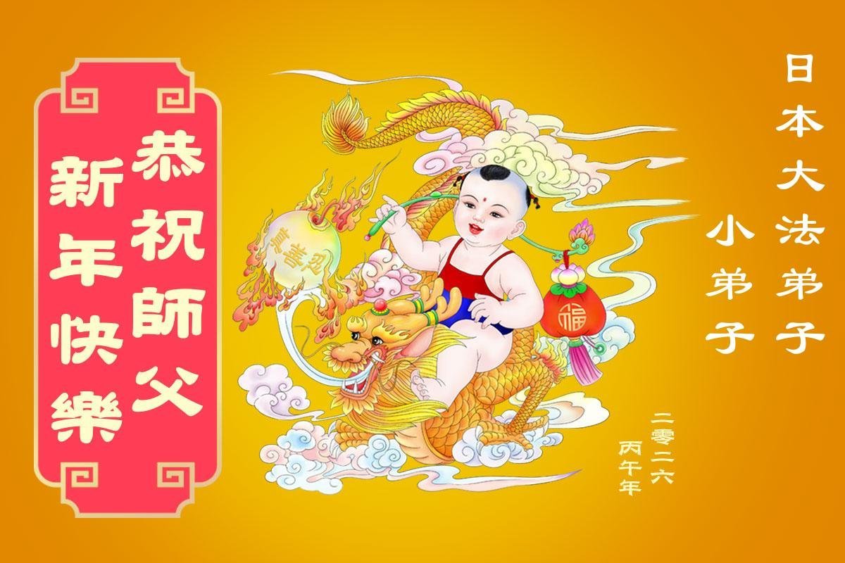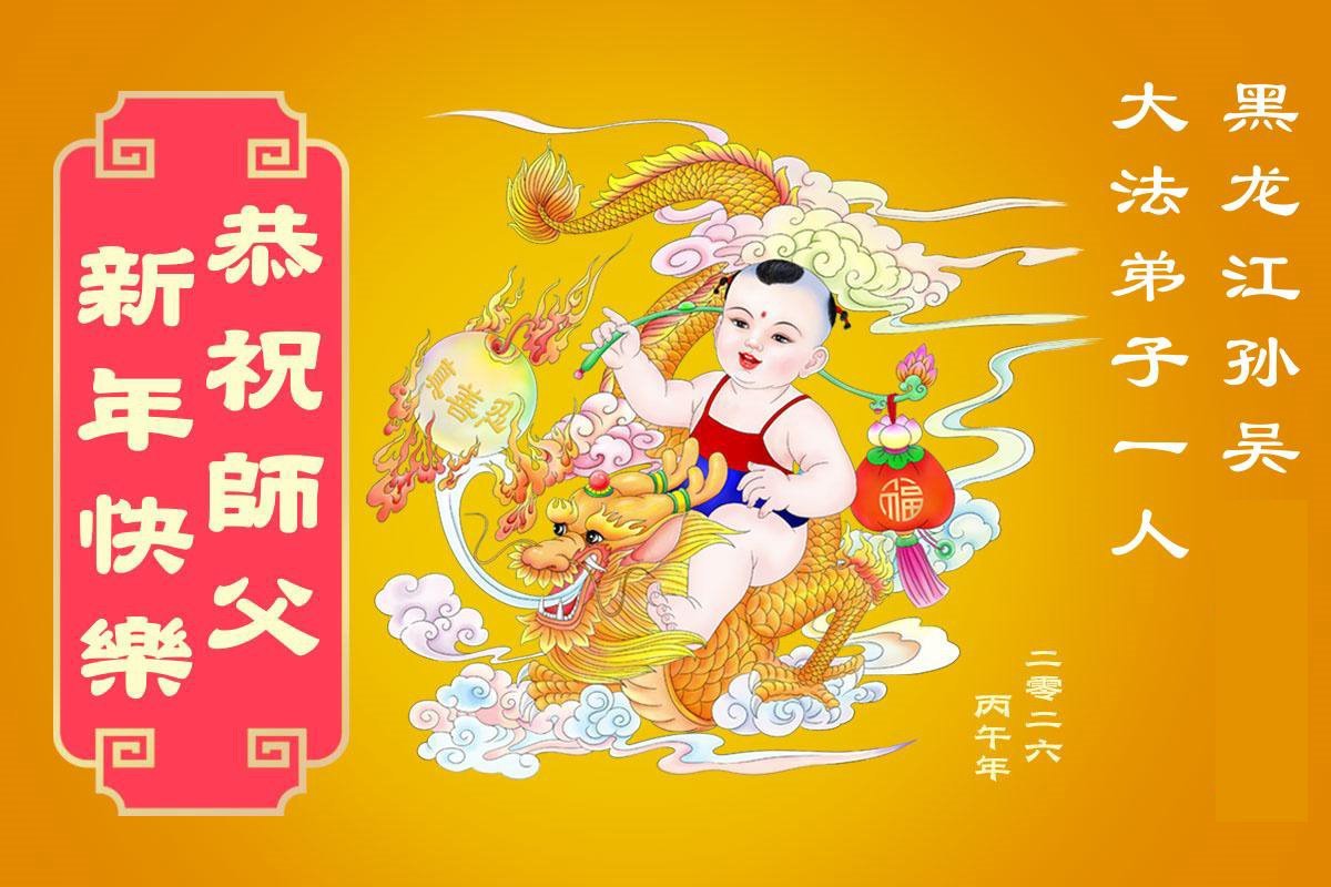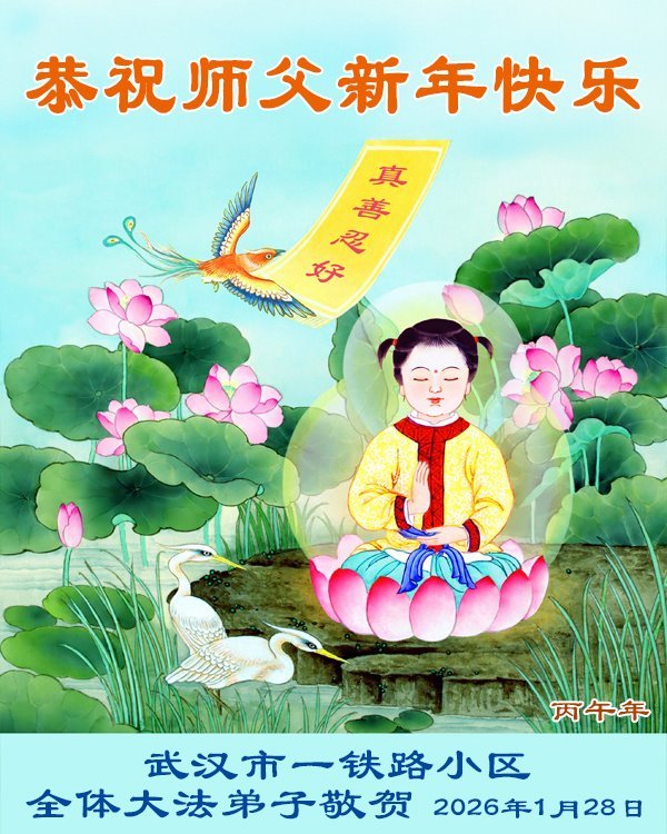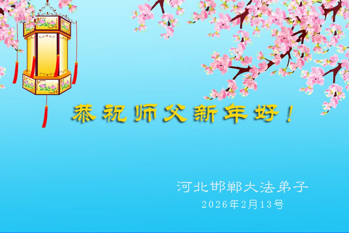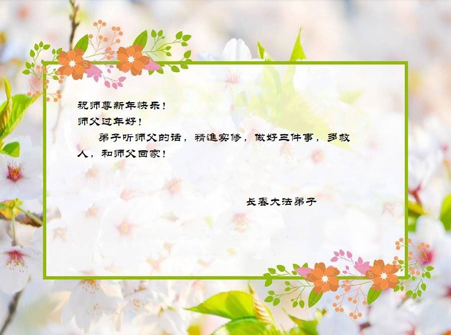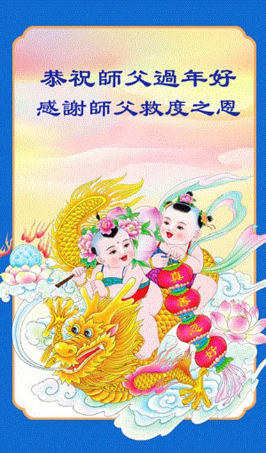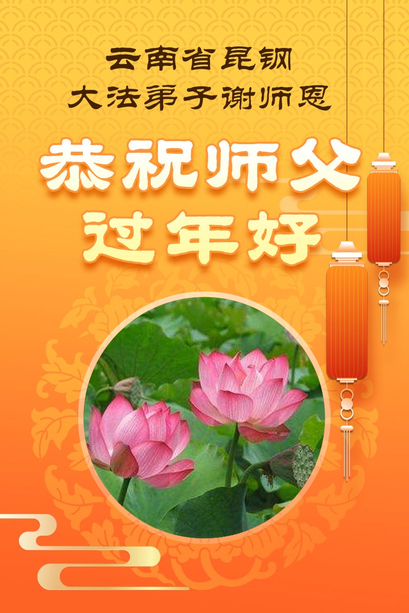 师父,祝您新年快乐!我非常幸运能得大法,我会努力改進我的言行举止。我很幸运,师父救了我一命:当时我开车时被一辆飞驰的摩托车撞倒,我闭上了眼睛,没有意识到发生了什么。师父,我的母亲也得到您的保护。