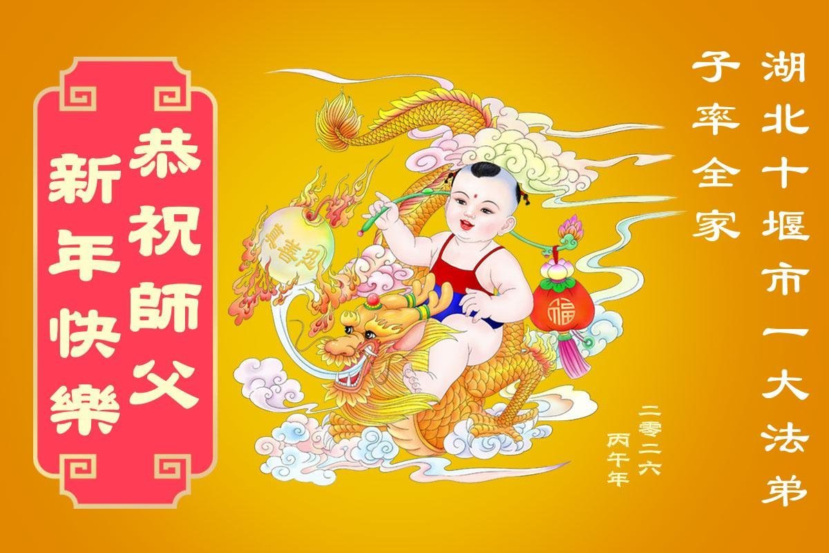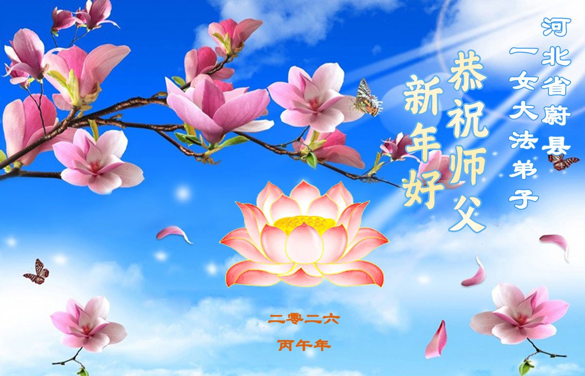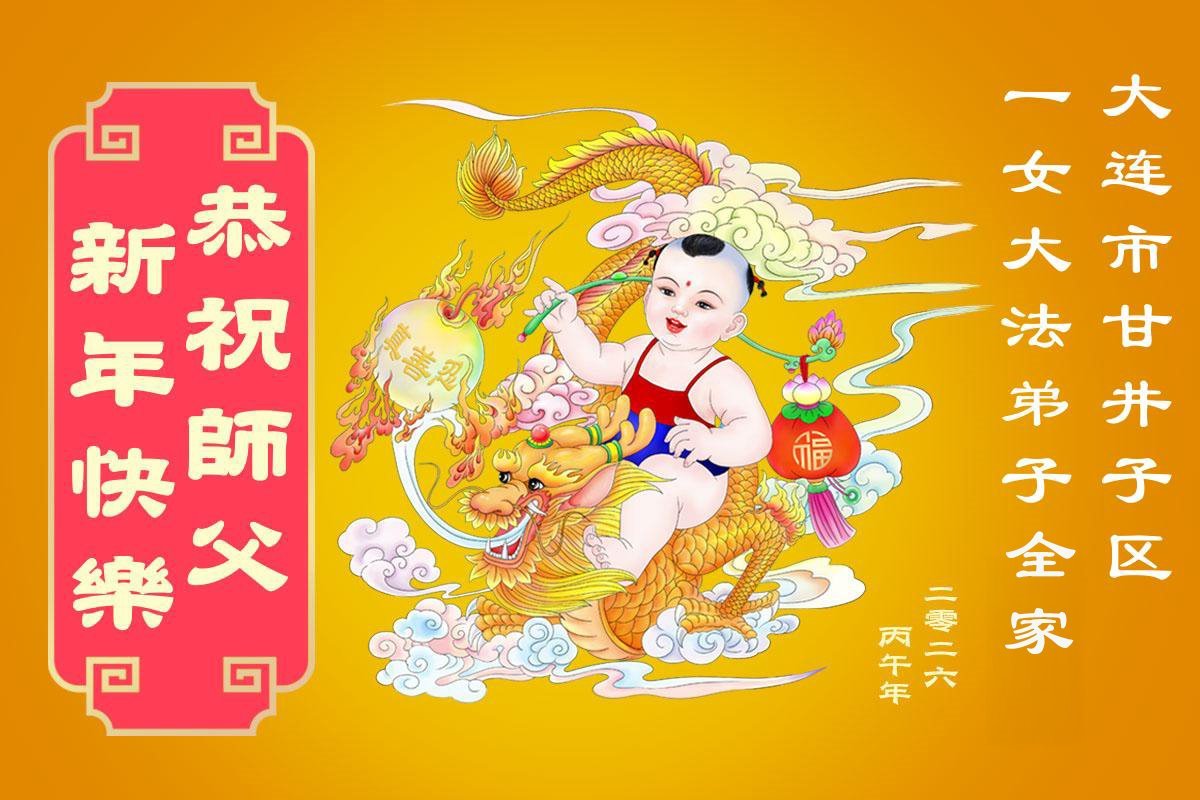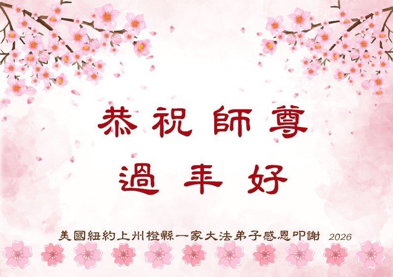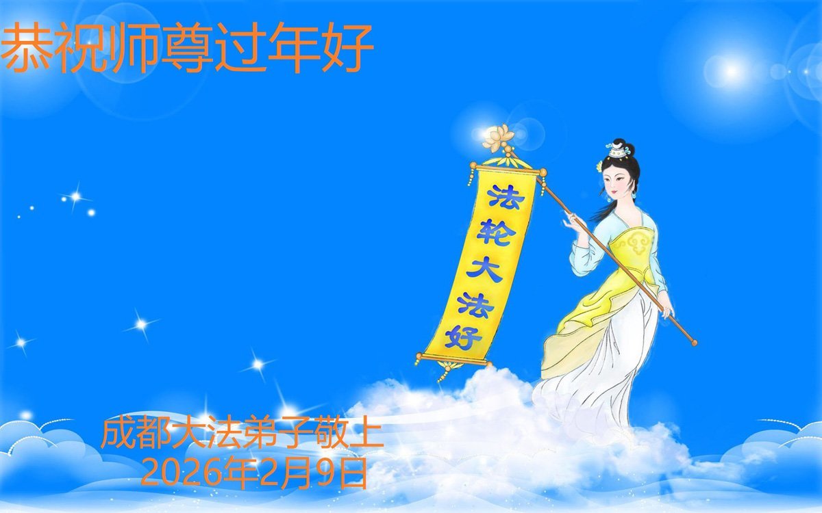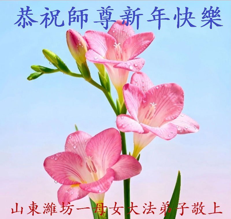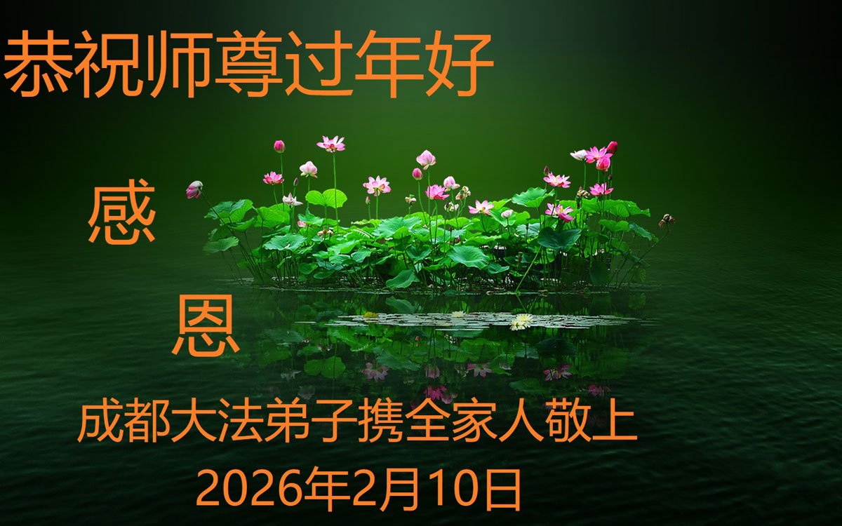 师父,祝您新年快乐!我非常幸运能得大法,我会努力改進我的言行举止。我很幸运,师父救了我一命:当时我开车时被一辆飞驰的摩托车撞倒,我闭上了眼睛,没有意识到发生了什么。师父,我的母亲也得到您的保护。