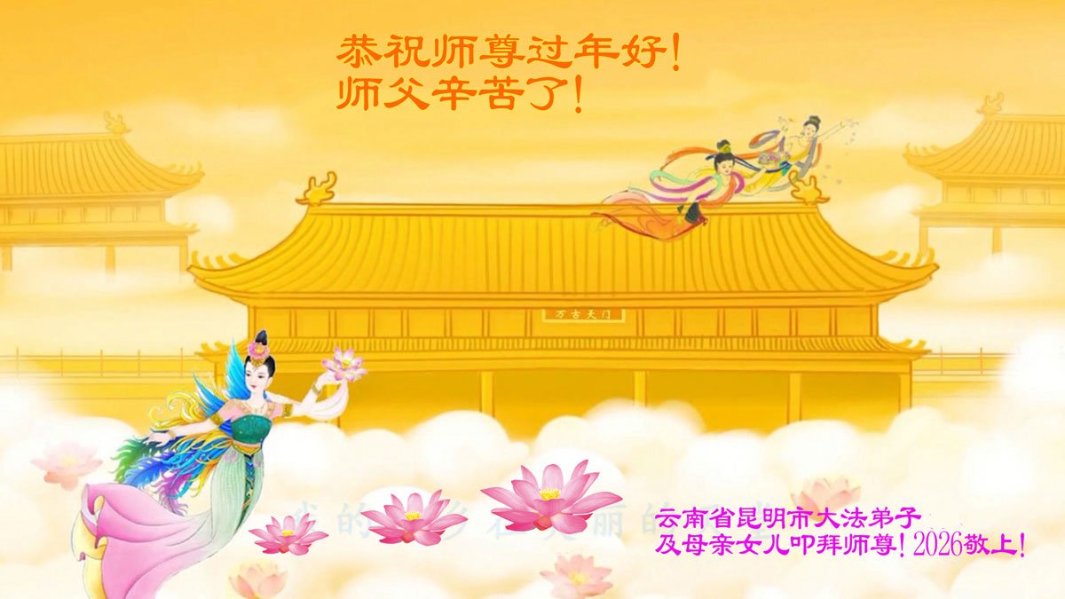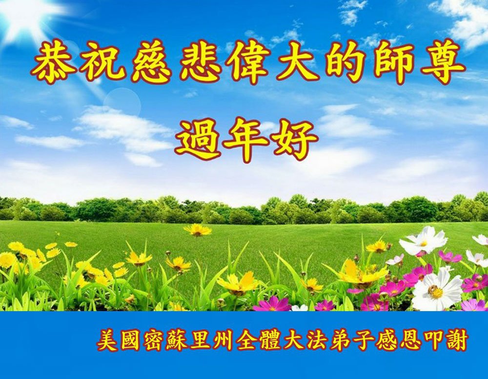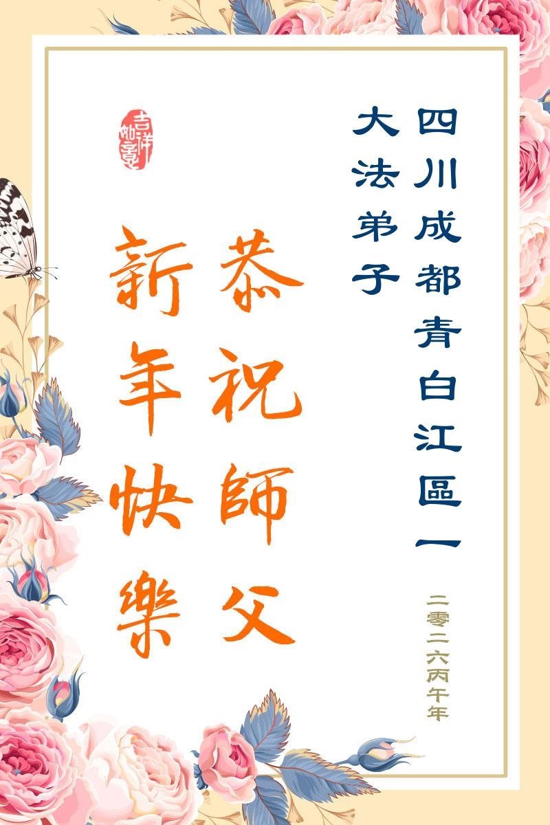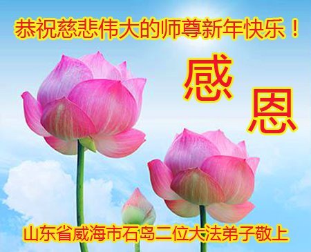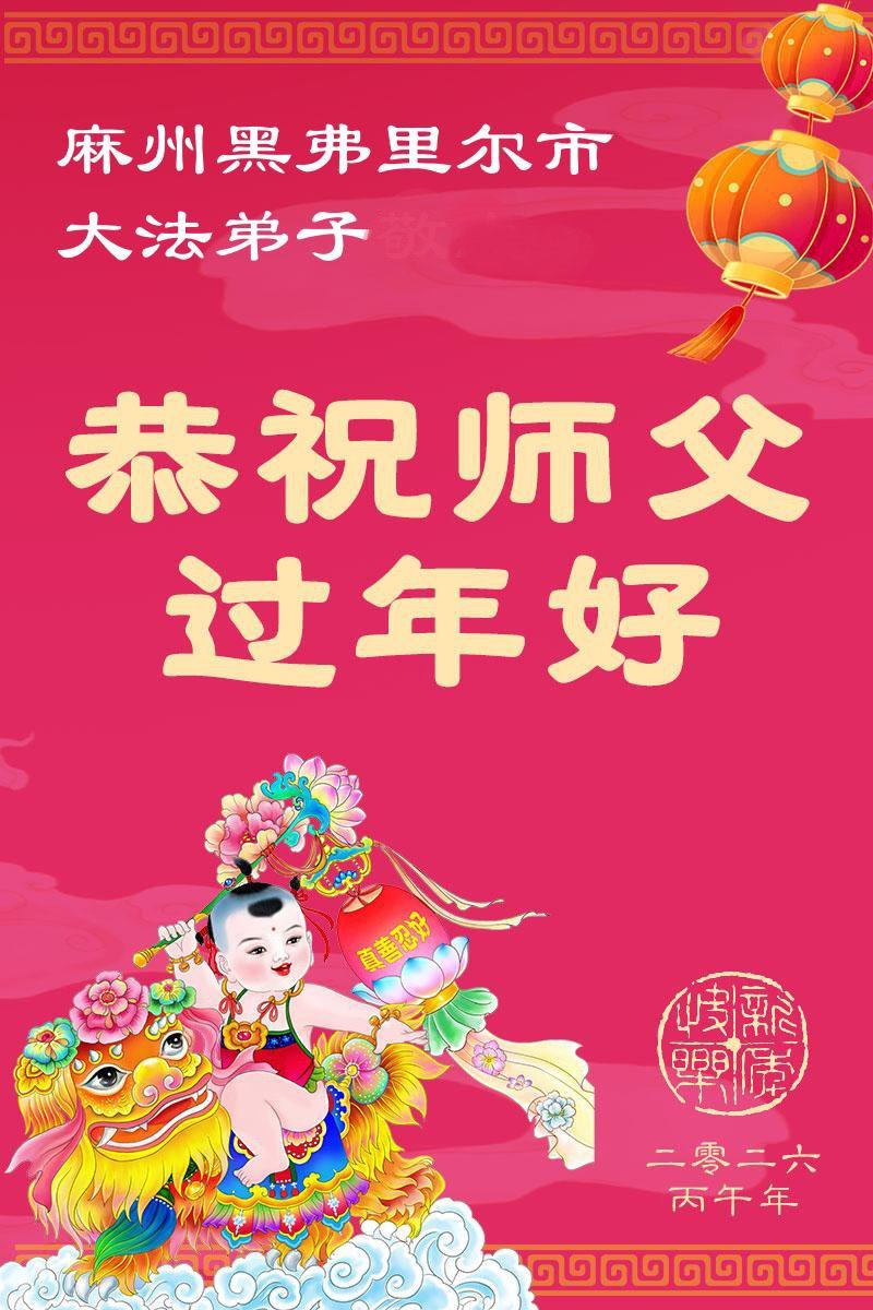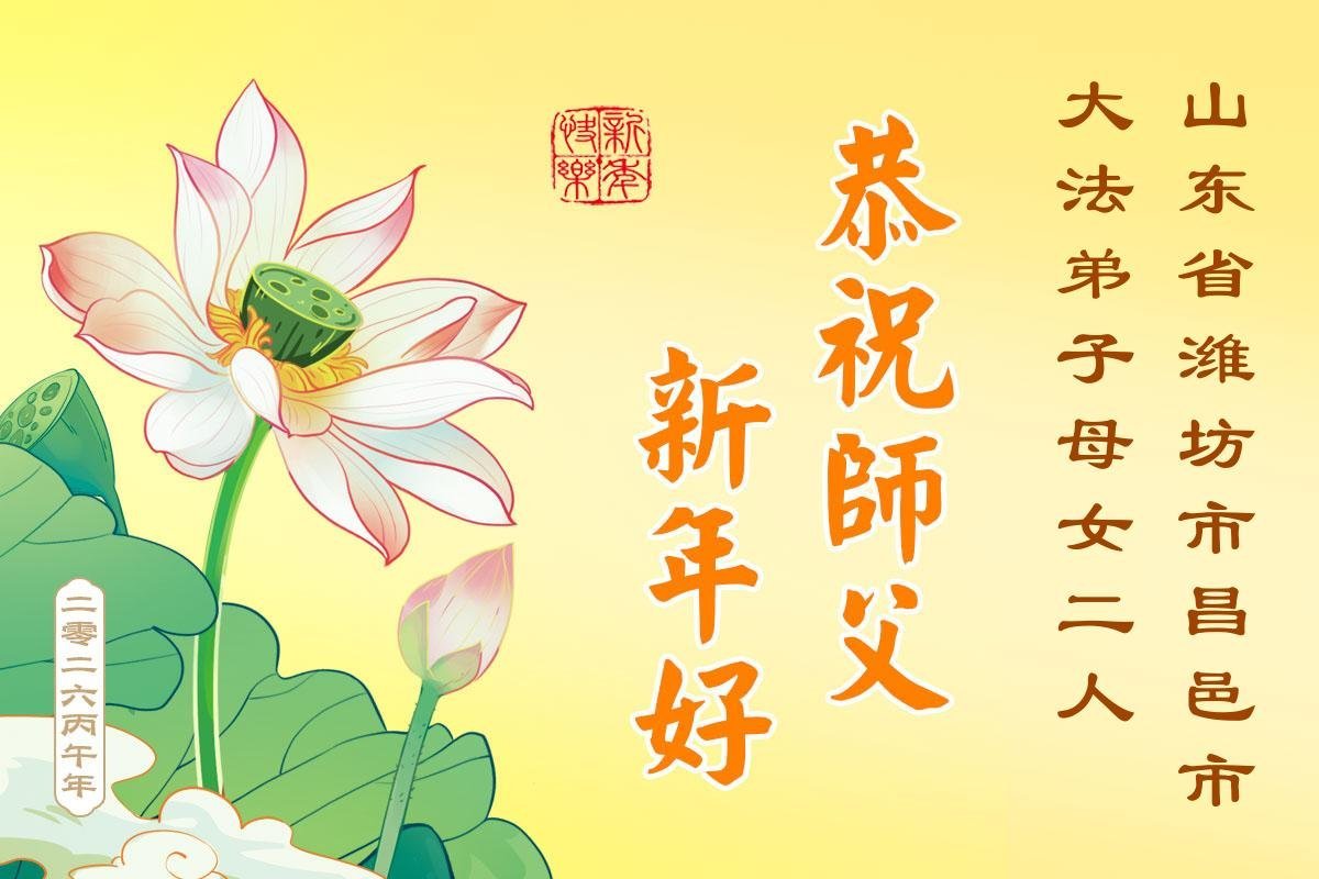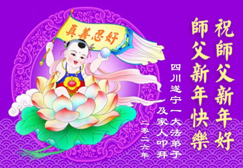 师父,祝您新年快乐!我非常幸运能得大法,我会努力改進我的言行举止。我很幸运,师父救了我一命:当时我开车时被一辆飞驰的摩托车撞倒,我闭上了眼睛,没有意识到发生了什么。师父,我的母亲也得到您的保护。