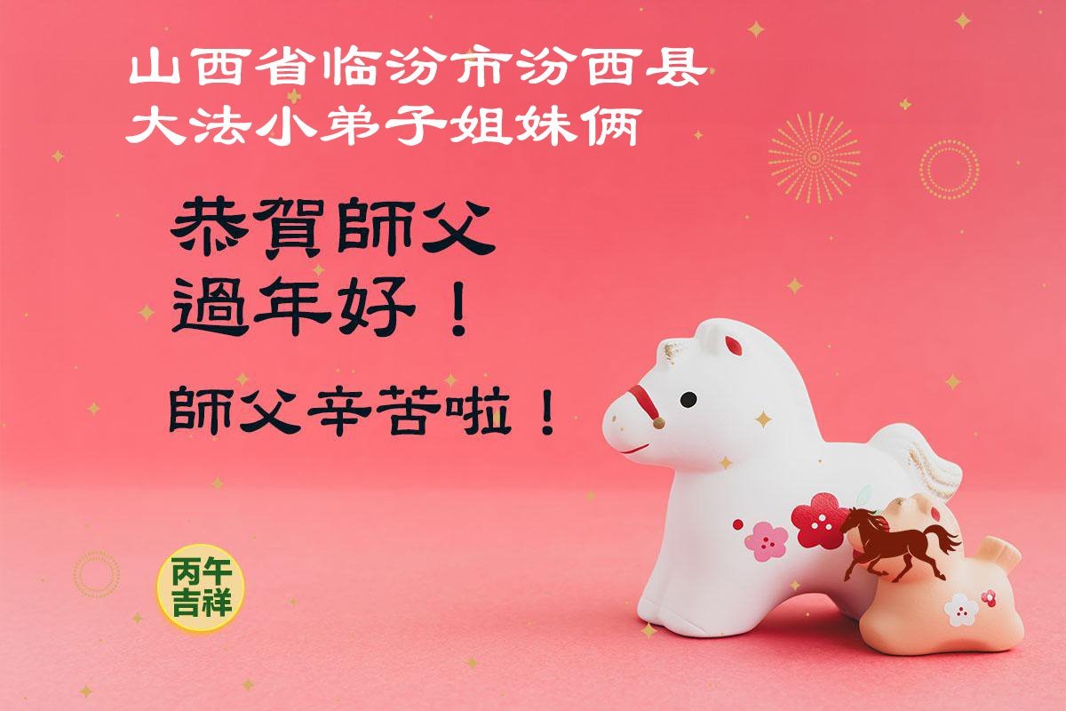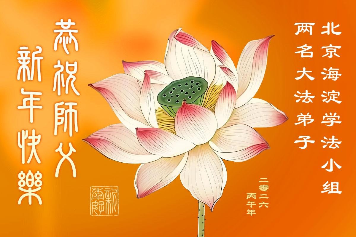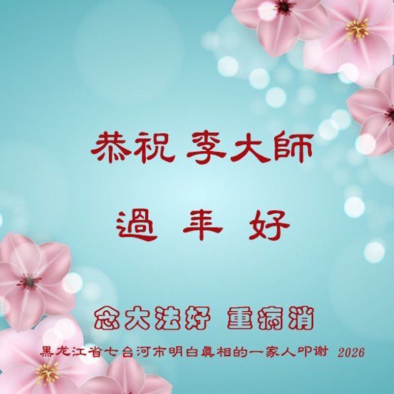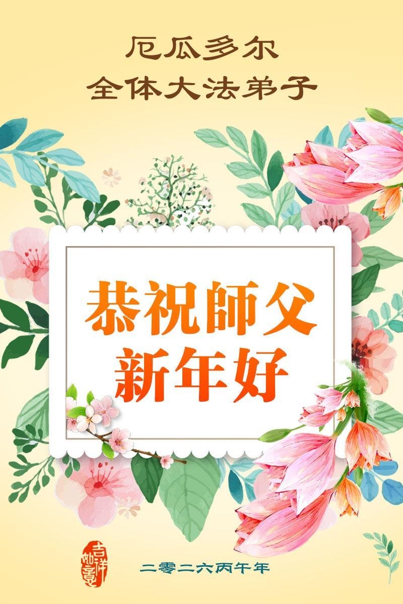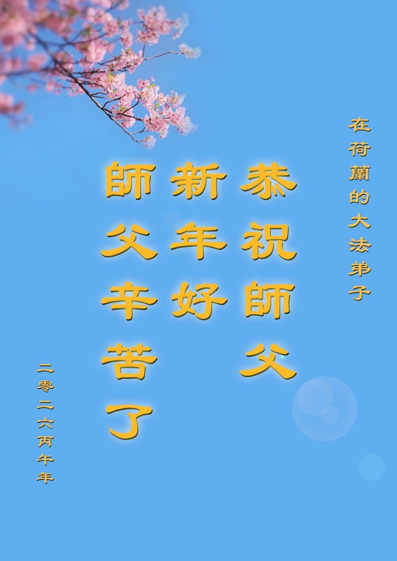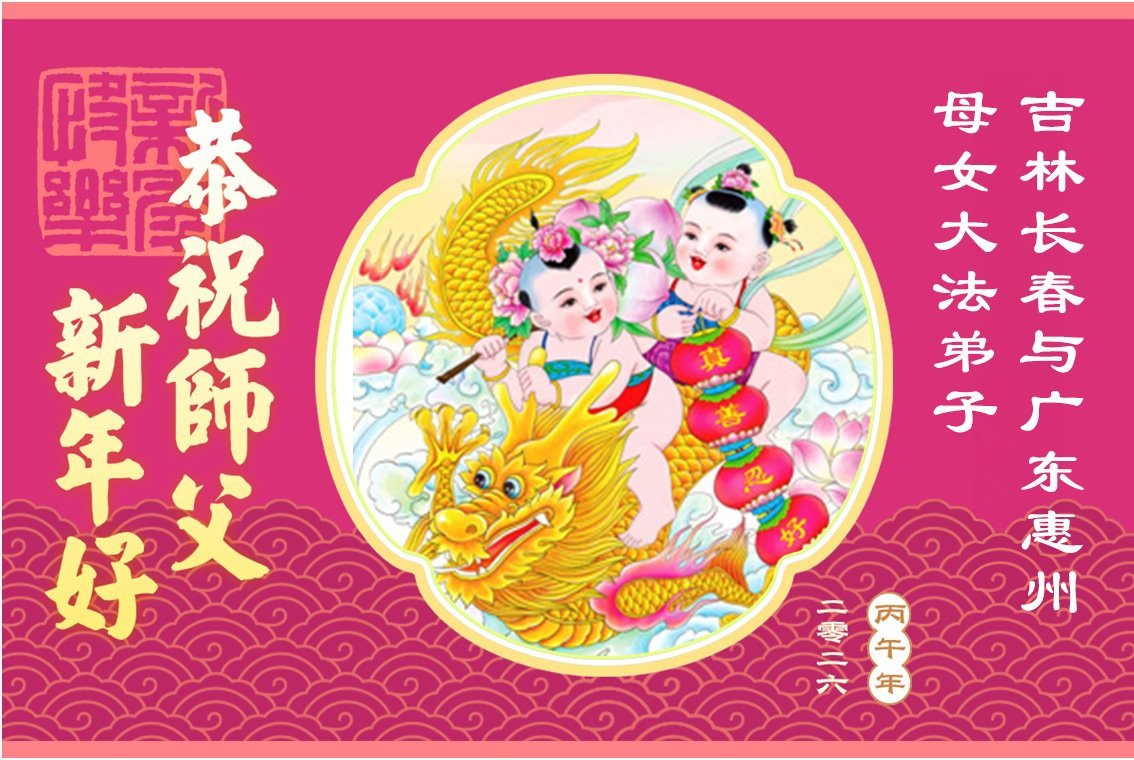 师父,祝您新年快乐!我非常幸运能得大法,我会努力改進我的言行举止。我很幸运,师父救了我一命:当时我开车时被一辆飞驰的摩托车撞倒,我闭上了眼睛,没有意识到发生了什么。师父,我的母亲也得到您的保护。