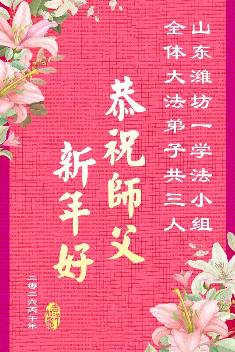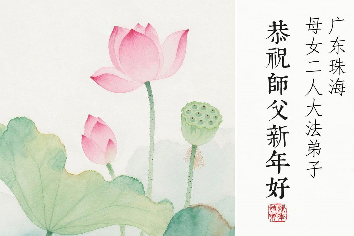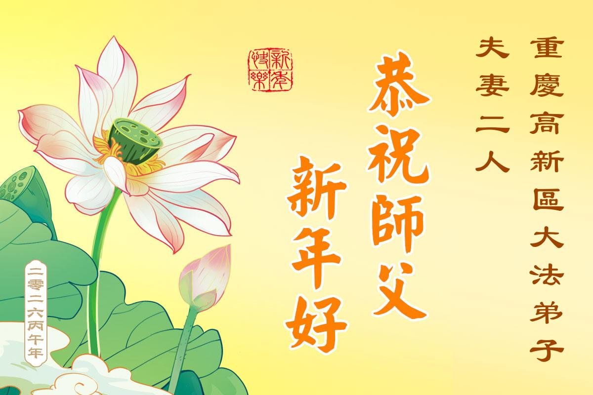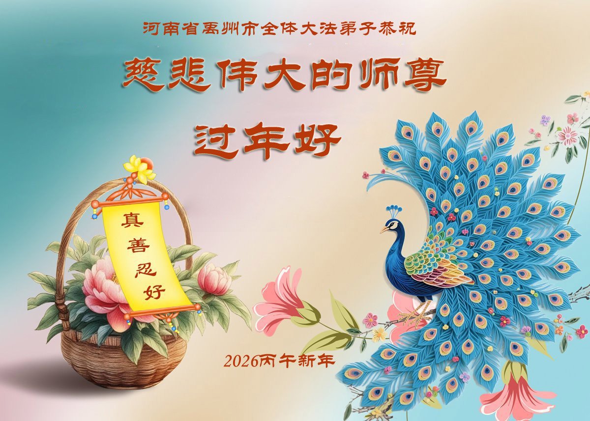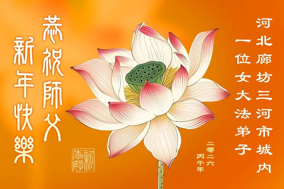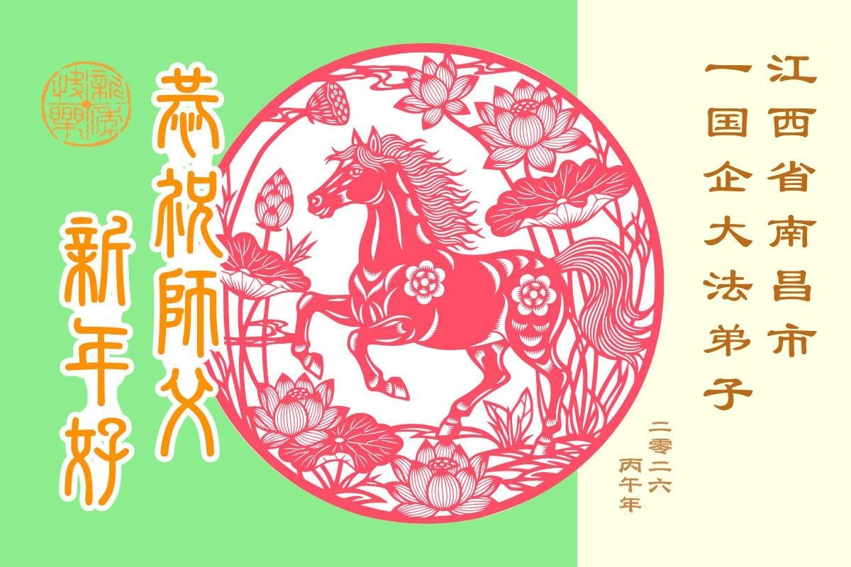 师父,祝您新年快乐!我非常幸运能得大法,我会努力改進我的言行举止。我很幸运,师父救了我一命:当时我开车时被一辆飞驰的摩托车撞倒,我闭上了眼睛,没有意识到发生了什么。师父,我的母亲也得到您的保护。