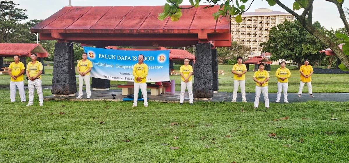 驻新西兰奥克兰中领馆前炼功的大法弟子叩谢师父