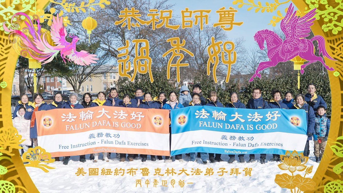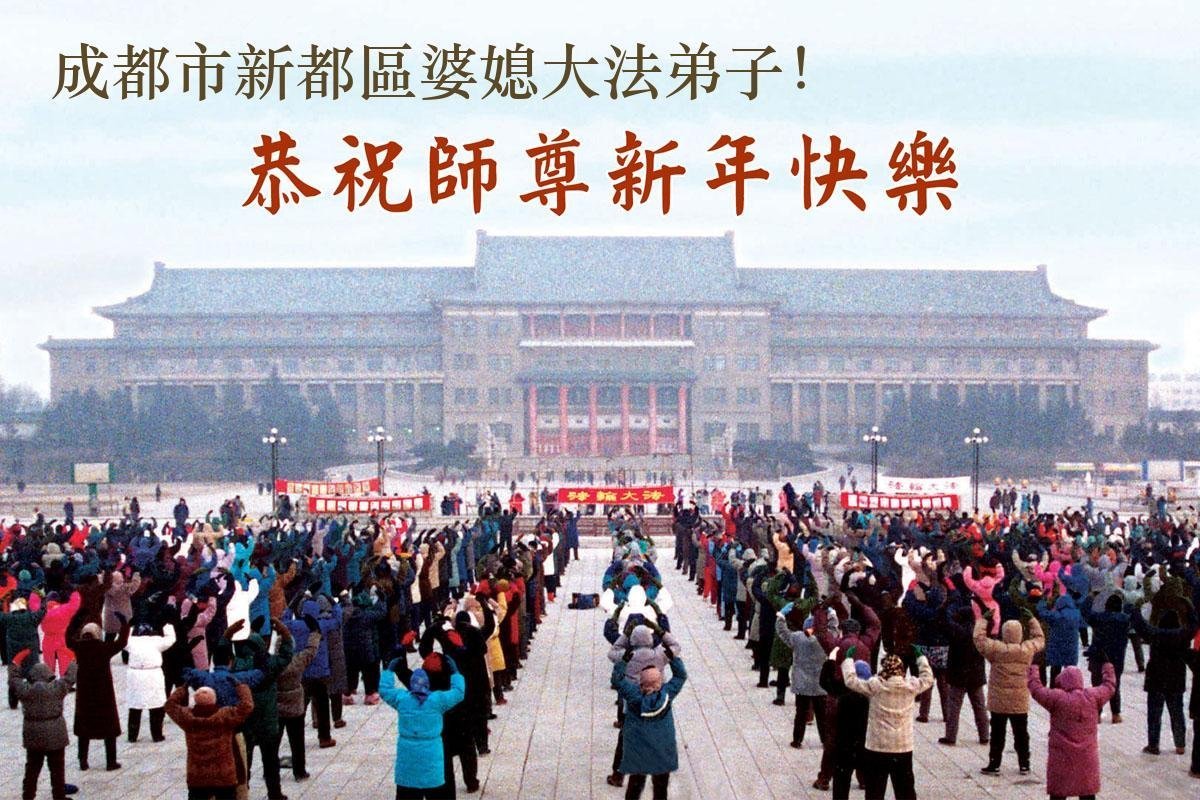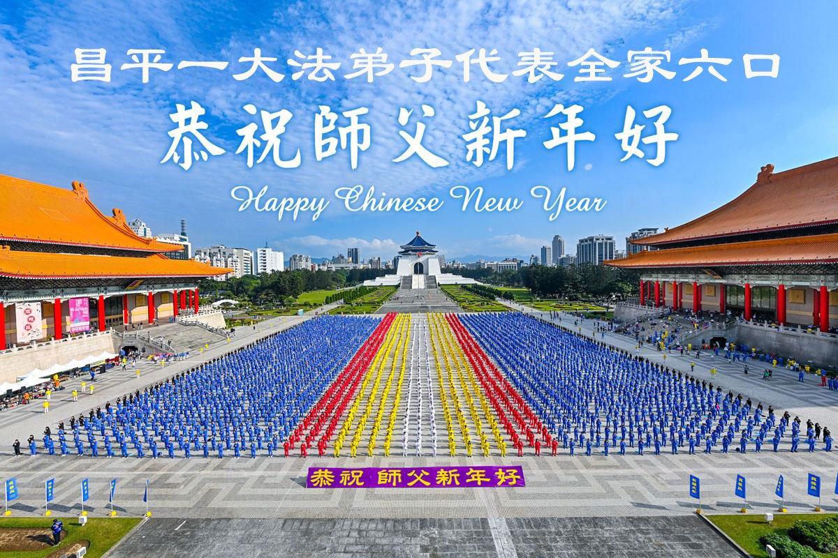 弟子们在板桥区府中广场恭祝李洪志师父丙午年新年好!弟子们以最诚摰的心情齐声祝贺:“恭祝师父新年好!法轮大法好,真善忍好!”并一起颂唱《法轮大法好》、《师父啊,谢谢您!》两首歌曲,表达弟子们对师父的无限感恩。